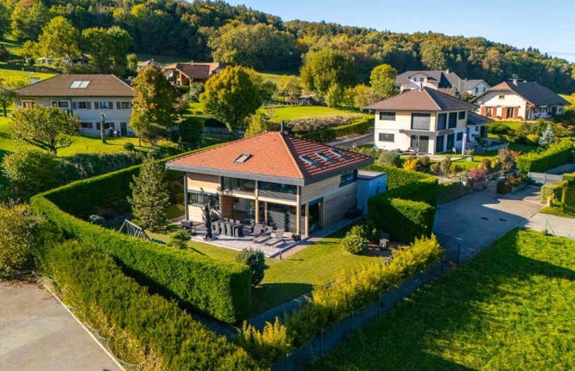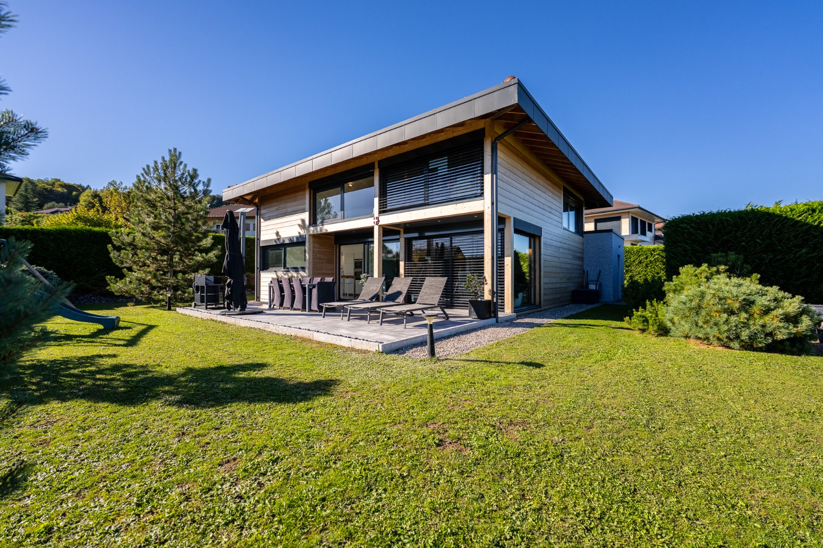 Nestled in the heart of nature, this architect-designed timber-frame house is a true invitation to serenity. Between lake and mountains, it offers a peaceful and privileged lifestyle where each day is filled with light and tranquility.
