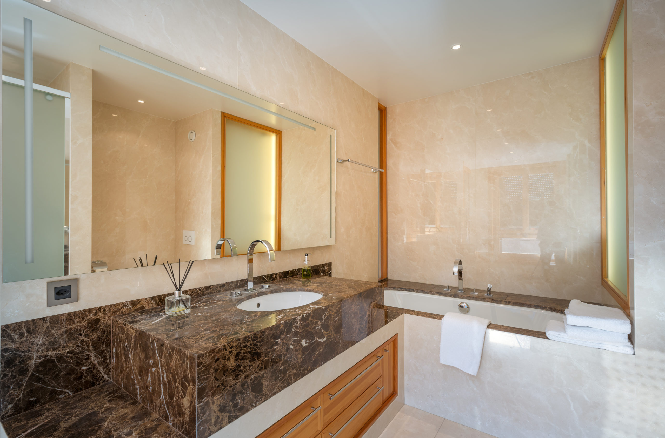 This apartment provides guests with excellent dining space, a spacious living room, a large fully equipped kitchen, 2 double bedrooms in suite with 2 bathrooms. There is also 1 indoor parking space available.