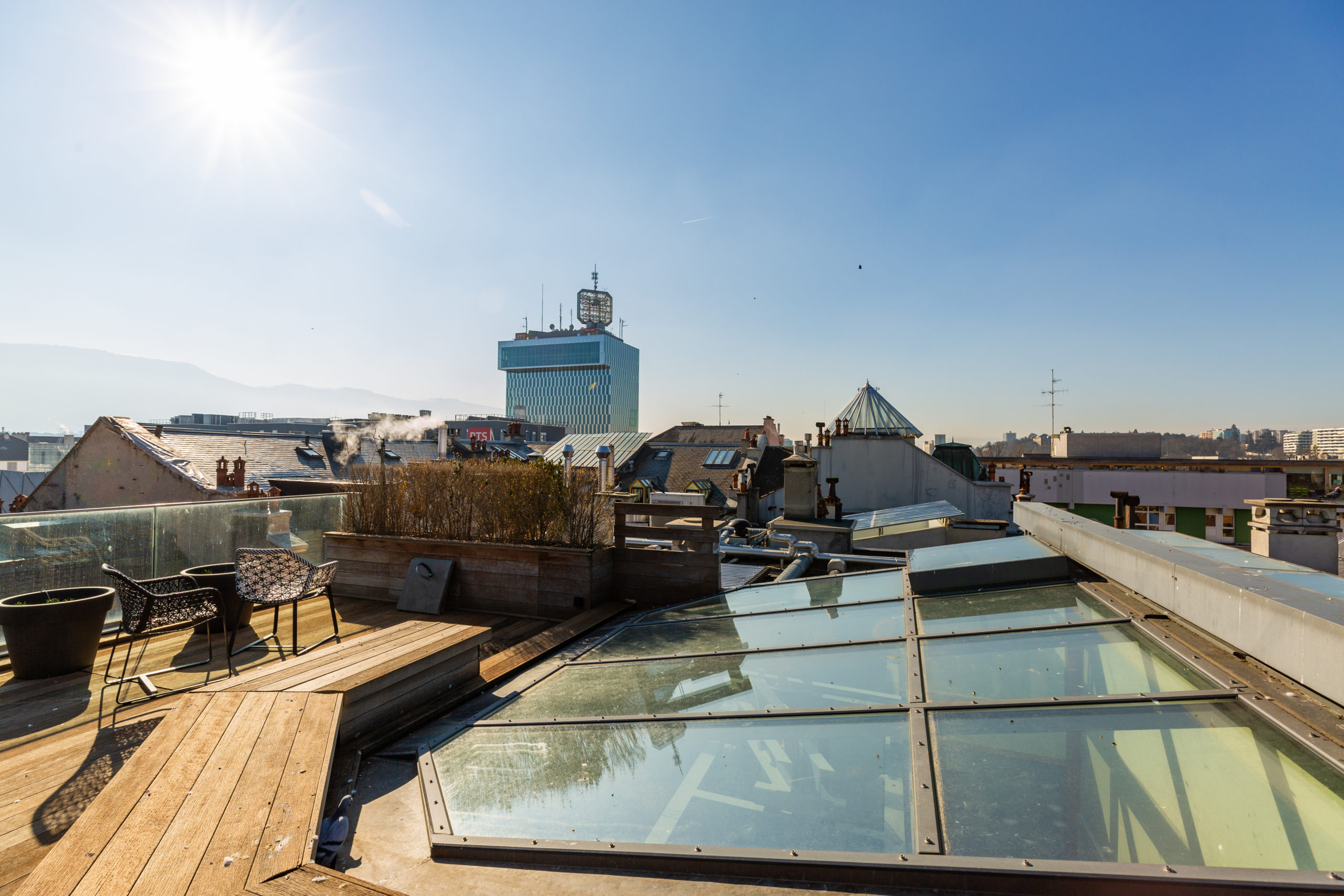 A Stunning and Modern proportioned 2 Bedroom Apartment located in the city center of Geneva, meticulously refurbished and with an exceptional Roof Top with a panoramic view to the “Jet d’eau” from Geneva.