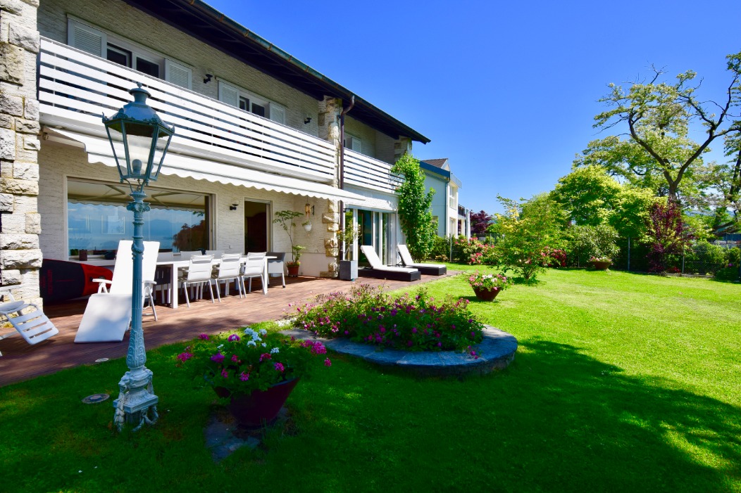 The extraordinary 3 Bedroom Villa offers the highest comfort in a fully renovated property. The residence is located in the shore of the Lake Rivera. The location offers a breath-taking view over the lake of Geneva and the Alps with a large 300m2 garden on the lake. The villa is located next to the EPFL and by the lake of Geneva. The Villa is currently rented out and will be available on 2021.