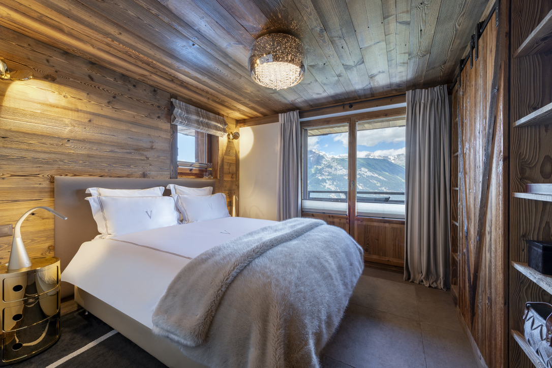 Chalet V spans multiple levels, all connected by a private lift, offering a generous layout designed for groups of up to 12 guests. The expansive living areas, thoughtfully designed bedrooms, and luxurious spa facilities create a five-star experience in the heart of the Alps.
