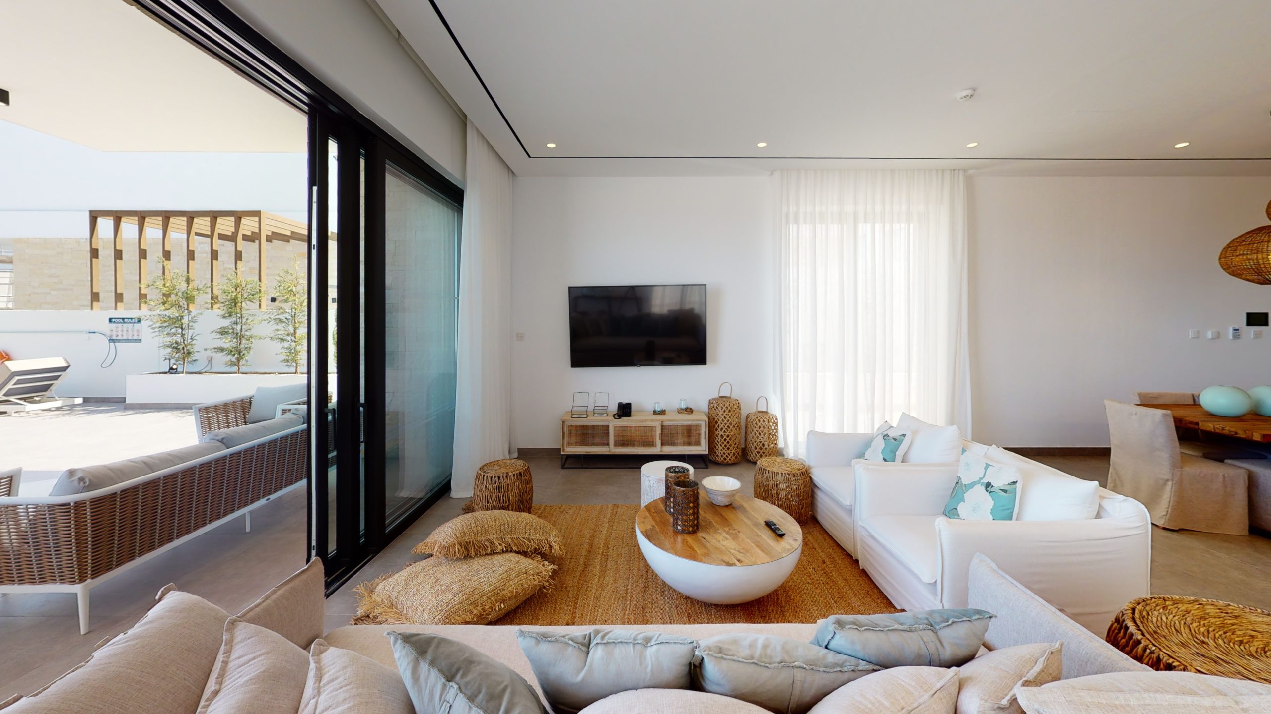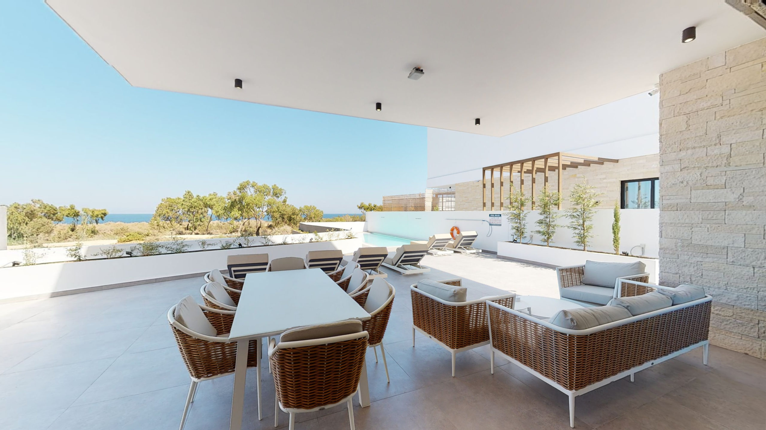 Overlooking Konnos Bay, Villa Melpomeni offers an unforgettable Mediterranean holiday stay. The villa offers luxury lifestyle features and modern technology. It is fully airconditioned and comes with an elevator. The bedrooms are on the first floor, with some offering sea views. Bedrooms have their own ensuite bathrooms, TVs, safes, and individual door locks.