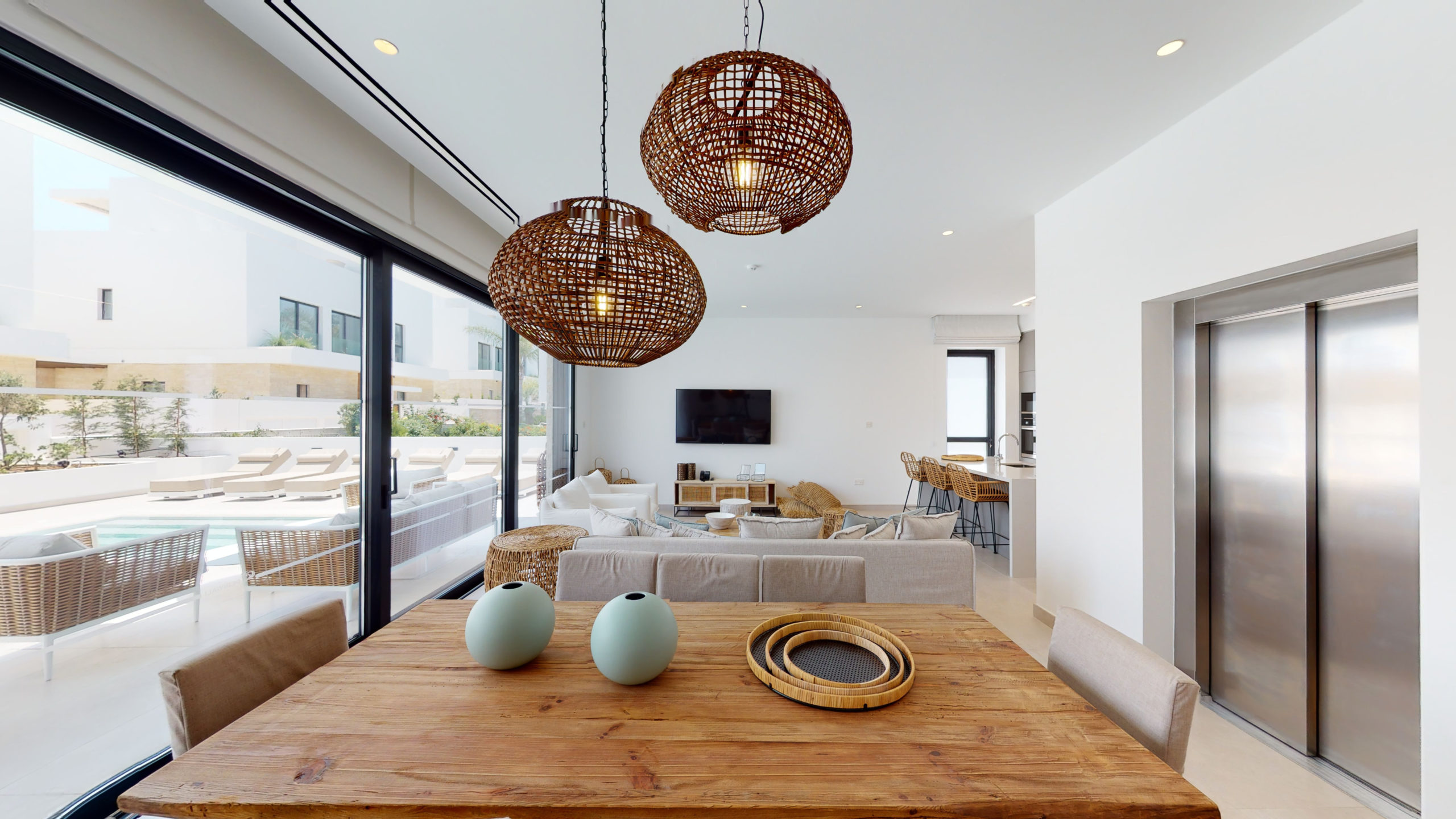 Villa Kalliopi is a contemporary villa, with a unique architectural design, modern amenities, and side sea views, ensuring a memorable holiday experience. Bedrooms are located on the first floor and come with ensuite bathrooms, TV’s, safes, and individual door locks. The villa fully airconditioned and equipped with an elevator.
