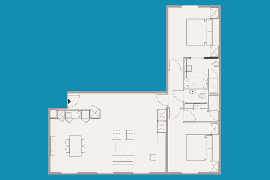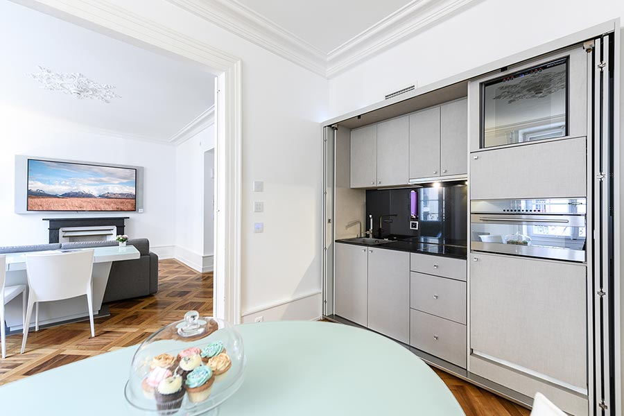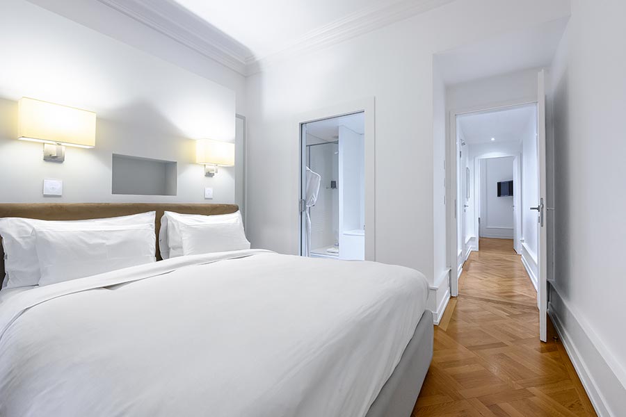 This bright and prestigious 100 squares meters apartment comfortably sleeps up to six persons. You will certainly enjoy the apartment’s cosy and elegant feel. The apartment features a living room, a large sofa bed and a separate dining area. There are two independent bedrooms, both featuring double beds and en suite bathrooms.