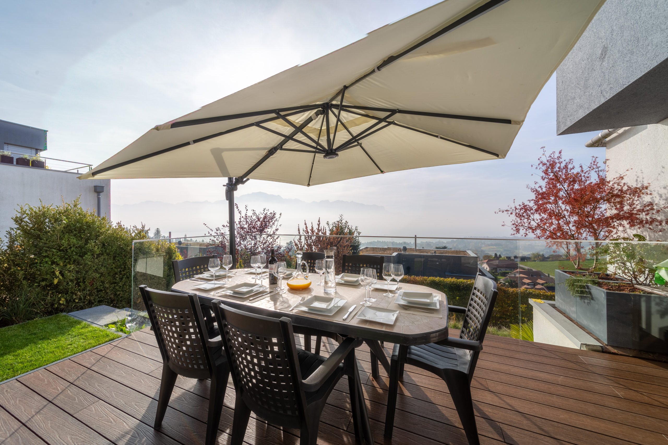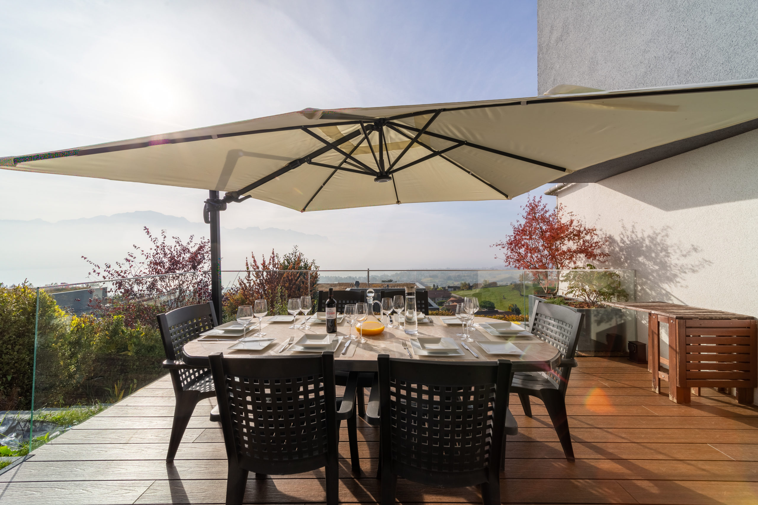Live your dream holiday in this beautiful spacious villa located in calm and safe sourroundings of Montreux, the Swiss Riviera. The villa is 220 m2 in three floors, with 3 separate bed rooms, 2.5 bath rooms, a large open kitchen with all facilities and fully equipped, living room with modern design for families, a large private garden for relaxing in the outdoors, also equipped with a garden table for the perfect summer dinner, and plenty of space for kids to play. All this in a villa with panoramic views of the region.