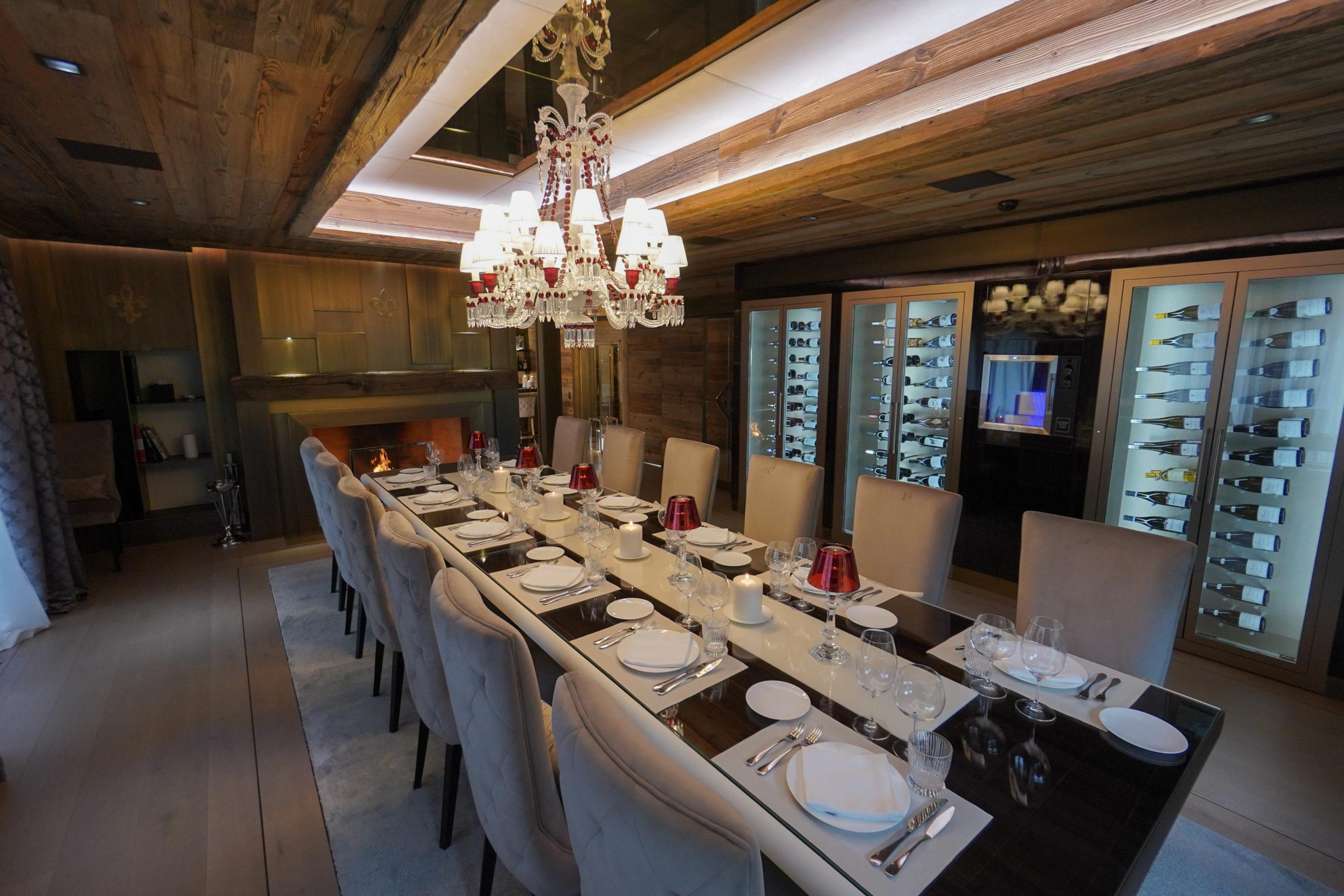 Its 8 master suites all house private dressing rooms, en-suite bathrooms and balconies. The chalet also has two children’s dormitories which can host up to ten children. With a large professional kitchen and dining area, the chalet is designed for hosting group dinners, special occasions and celebrations.