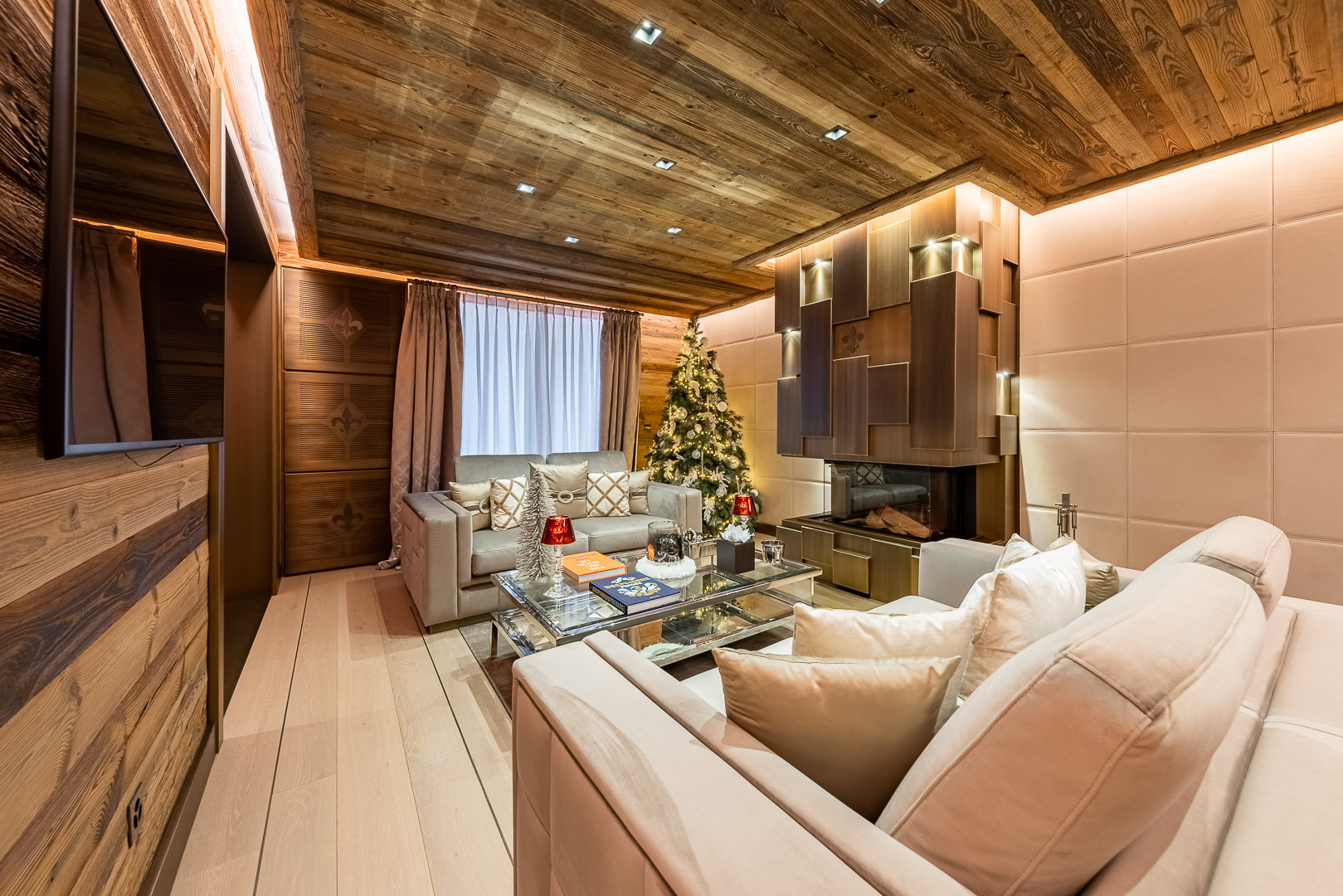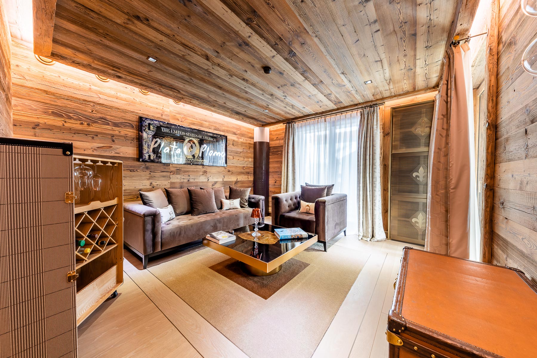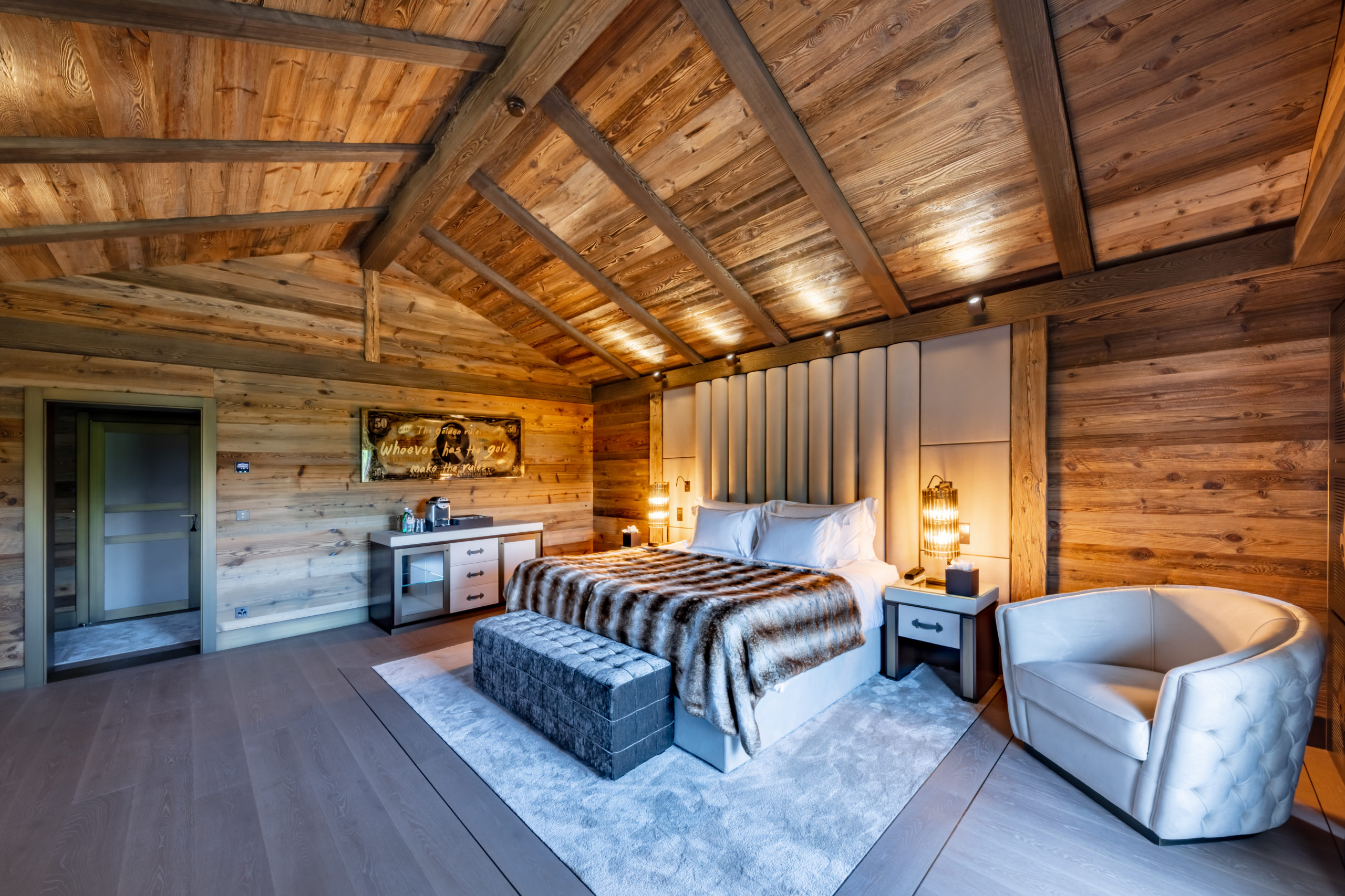 Crans-Montana adopts the signature style and design of the brand, synonymous with creative design and elegant touches that create a unique ambience in each chalet. The most rare and precious materials have been integrated throughout order to create a warm, cosy and ultra-luxurious atmosphere for our guests in these chalets.