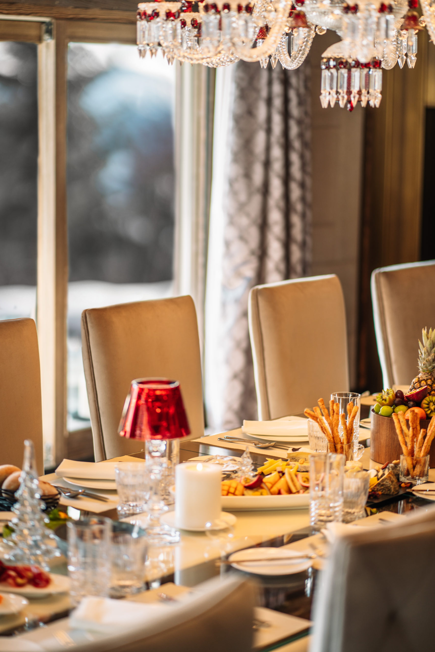 The blends of natural wood, grand chandeliers and rich velvets harmoniously fit in with the nubuck leather and soft velvet touches found across the chalet. Each bedroom is aligned with the key design features of the brand’s style while maintaining its distinct characteristics.