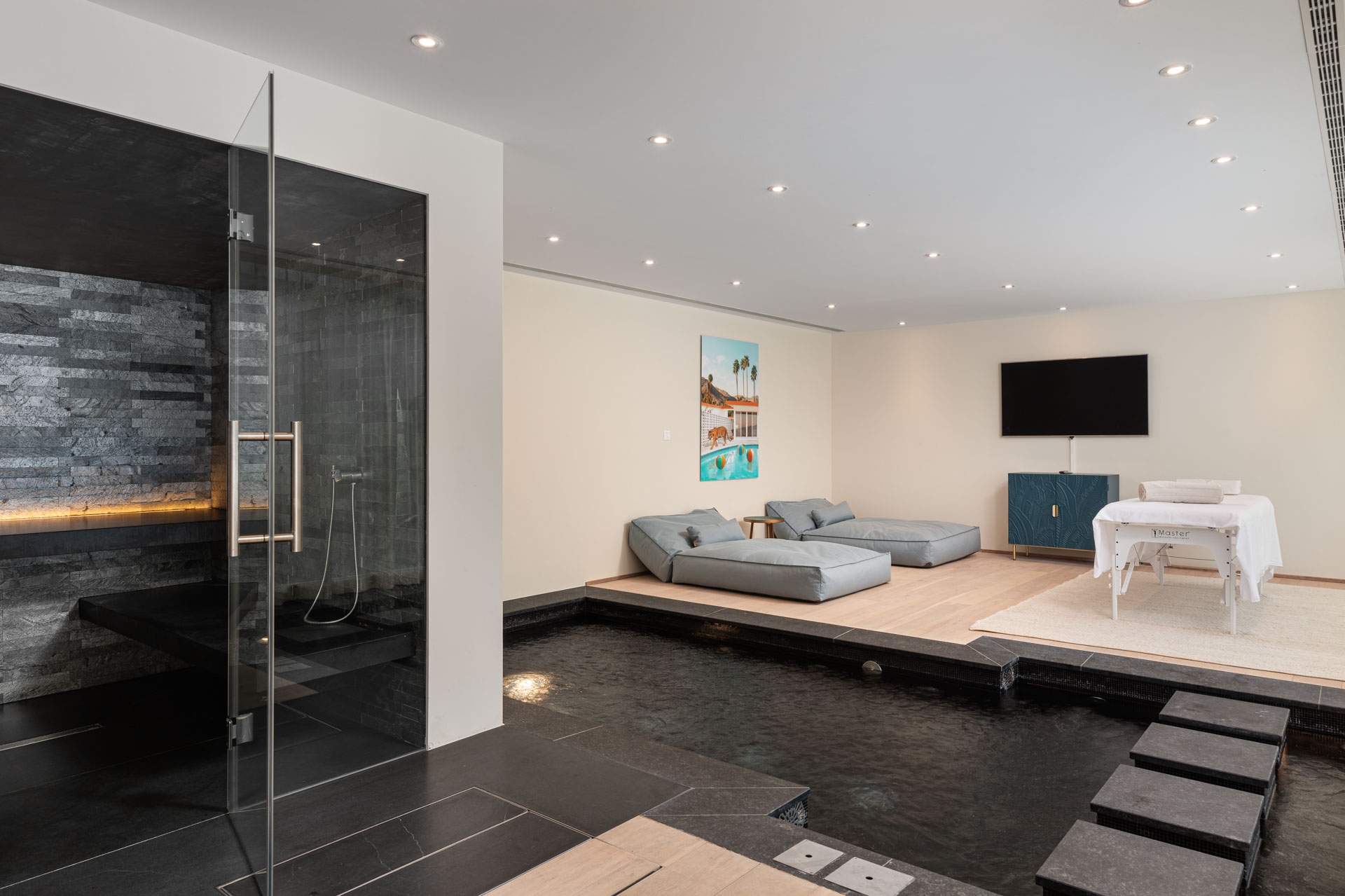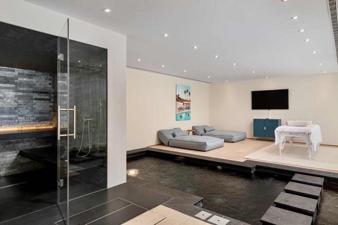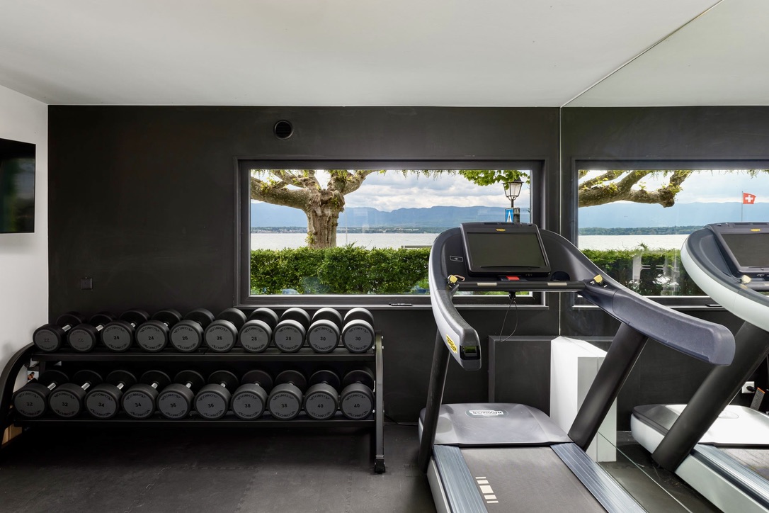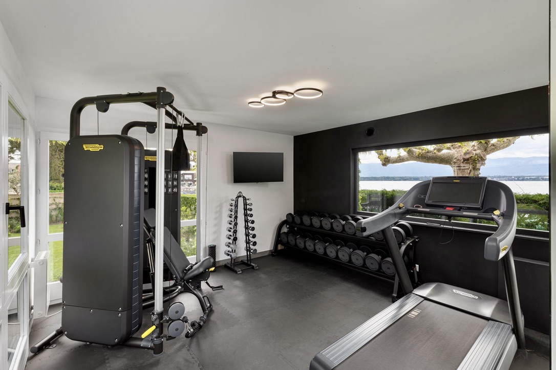 For ultimate relaxation, indulge in the villa’s wellness area. Unwind in the hammam or sauna. Additionally, soak in the jacuzzi or enjoy a rejuvenating massage. Fitness enthusiasts will appreciate the Technogym-equipped fitness room, where you can work out while enjoying stunning lake views.