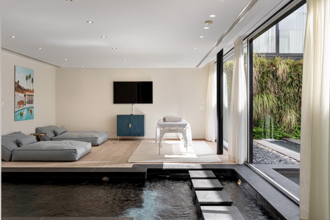 The villa’s independent studio includes a kitchenette, which comfortably accommodates your staff. Furthermore, with a four-car garage, you’ll have ample space for your vehicles, ensuring convenience throughout your stay.