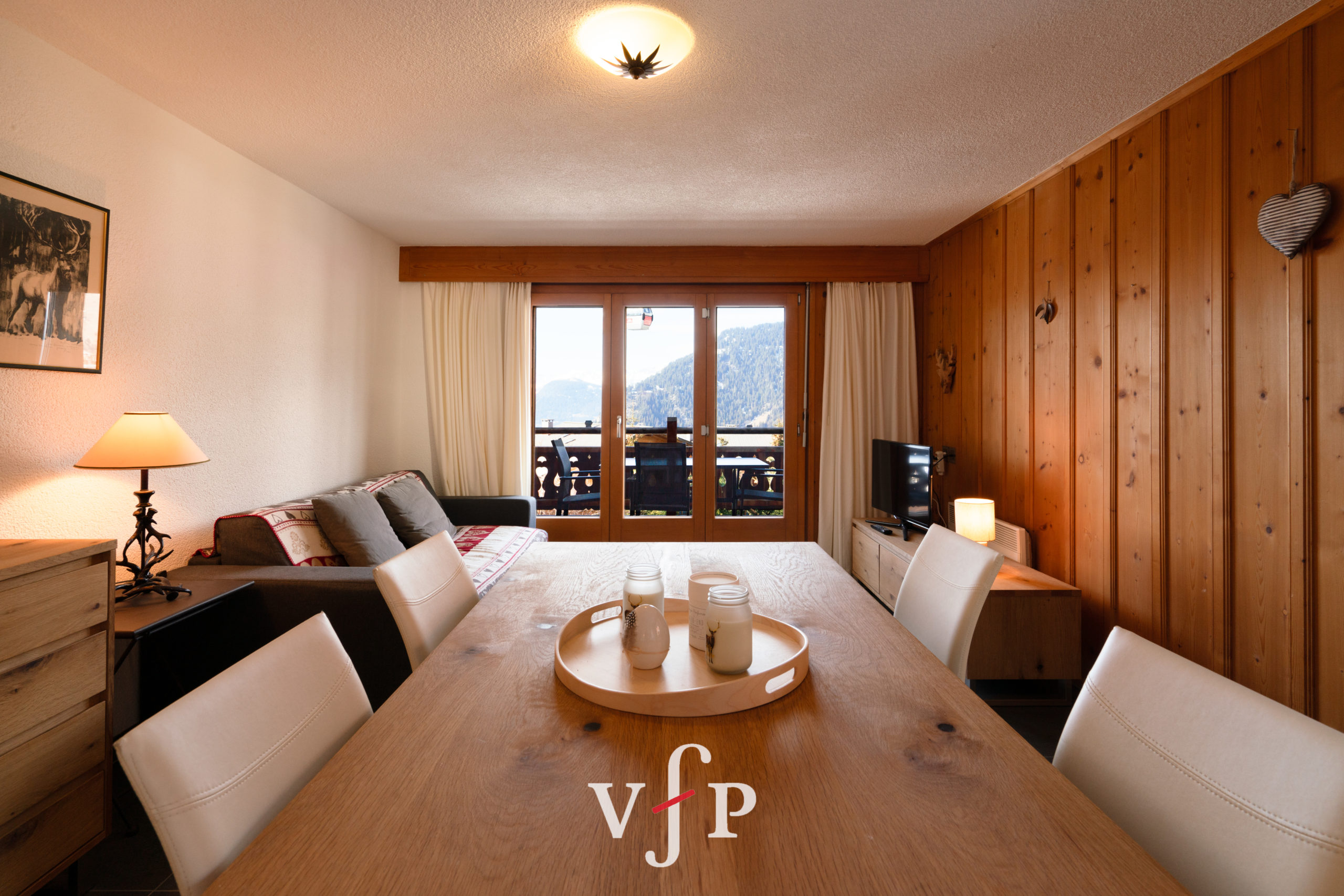 Our apartment in the Verbier Luxury Ski Retreat collection offers comfort and convenience. The spacious living area provides a warm, inviting space to unwind after a day of exploring. The bedroom is cozy and ensures a restful night’s sleep. A well-appointed bathroom adds a touch of luxury to your stay. The fully equipped kitchen allows you to prepare delicious home-cooked meals with modern appliances, including a stove, refrigerator, dishwasher, and microwave. Stay connected and entertained with cable TV, and enjoy the comfort of air conditioning and heating throughout. Free parking is available for those traveling by car.