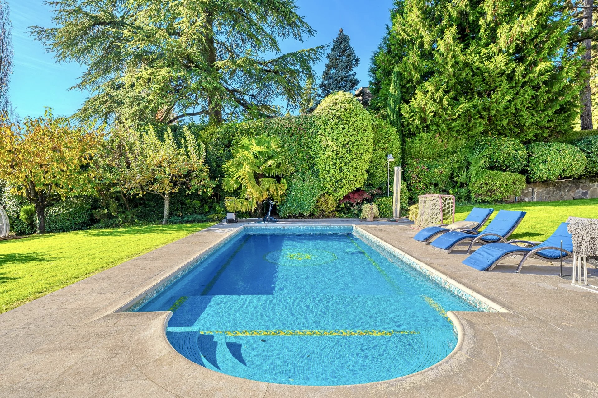 The villa’s south-facing orientation ensures all-day sunlight, perfect for enjoying the outdoor amenities. The landscaped gardens are beautifully planted with mature trees and surrounded by a secure fence, providing privacy and tranquility.