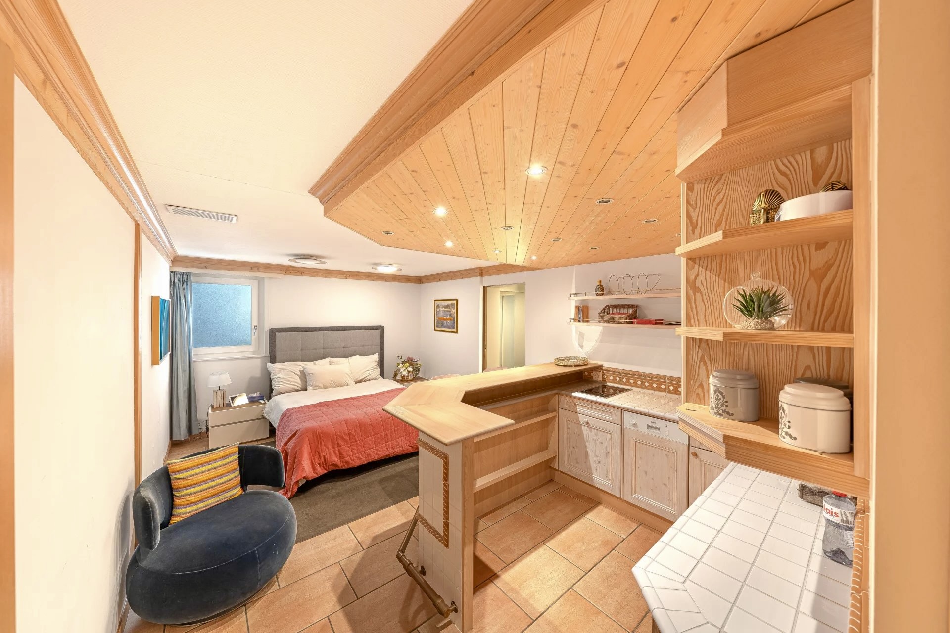 An additional bedroom in the basement includes a shower room and kitchenette, accessible via a separate entrance, offering flexibility for guests or staff accommodation.