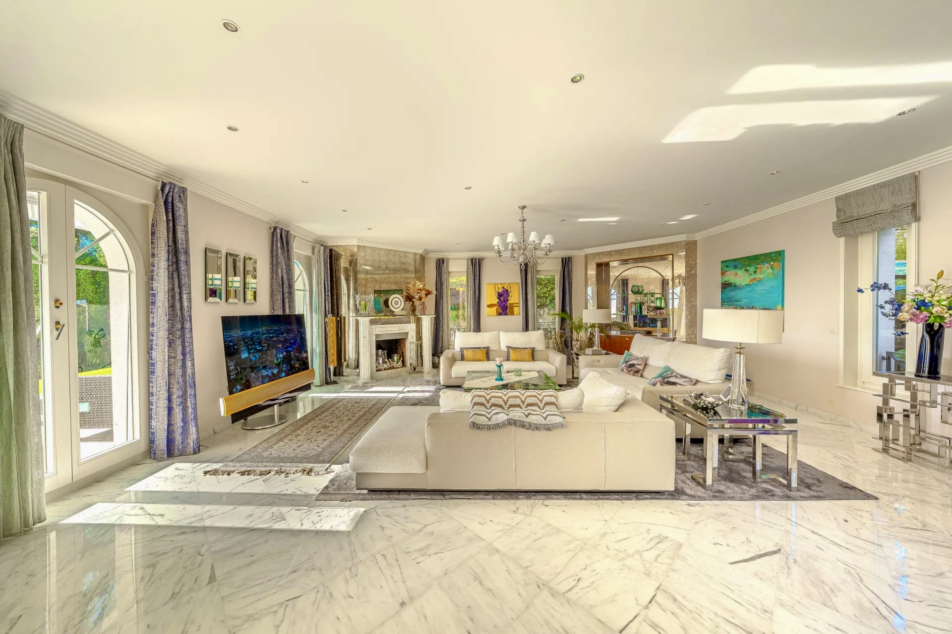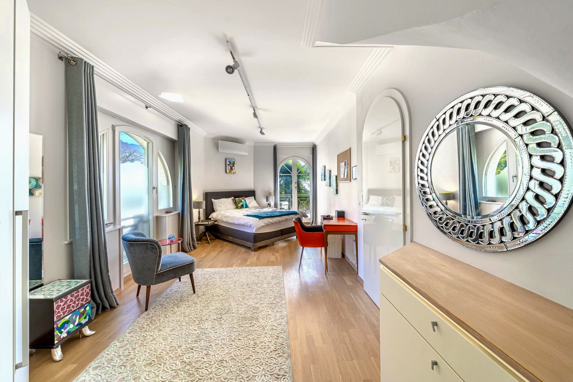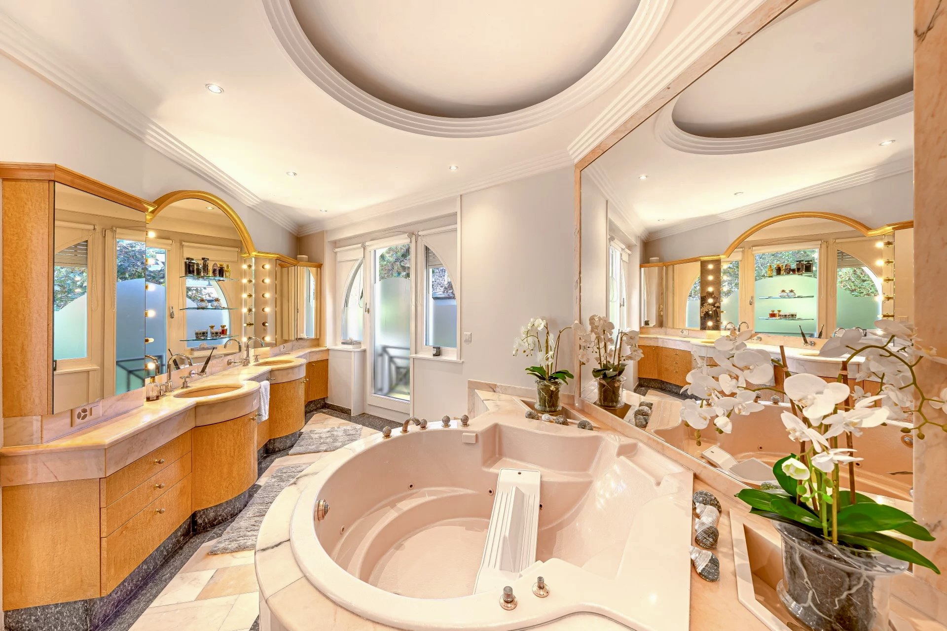 With a total of 8.5 rooms, the villa includes 5 spacious bedrooms, a study, and 3 bathrooms along with a guest WC. The master bedroom exudes luxury, featuring ample space and access to stunning views. The villa also offers a fully finished basement, complete with a large dressing room, a private gym, and a wine cellar.