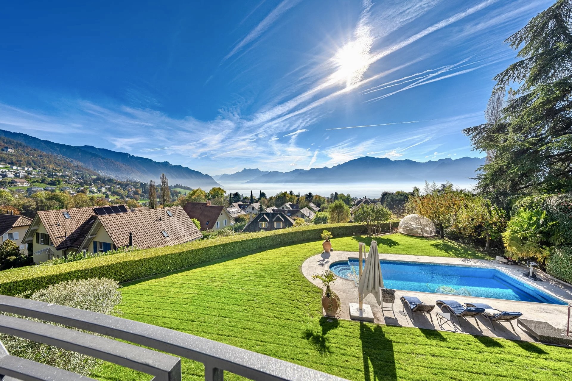 Perched on the stunning Swiss Riviera of the Montreux region, this magnificent luxury villa offers an unparalleled living experience. Boasting panoramic views of Lake Geneva and the Alps, this south-facing property combines elegance, comfort, and serenity. With a living space of 490 m², situated on a beautifully landscaped 1600 m² plot, this villa is the epitome of refined living. Its prime location provides tranquility while being just minutes from essential amenities, making it a perfect choice for families, professionals, or anyone seeking a sophisticated lifestyle.