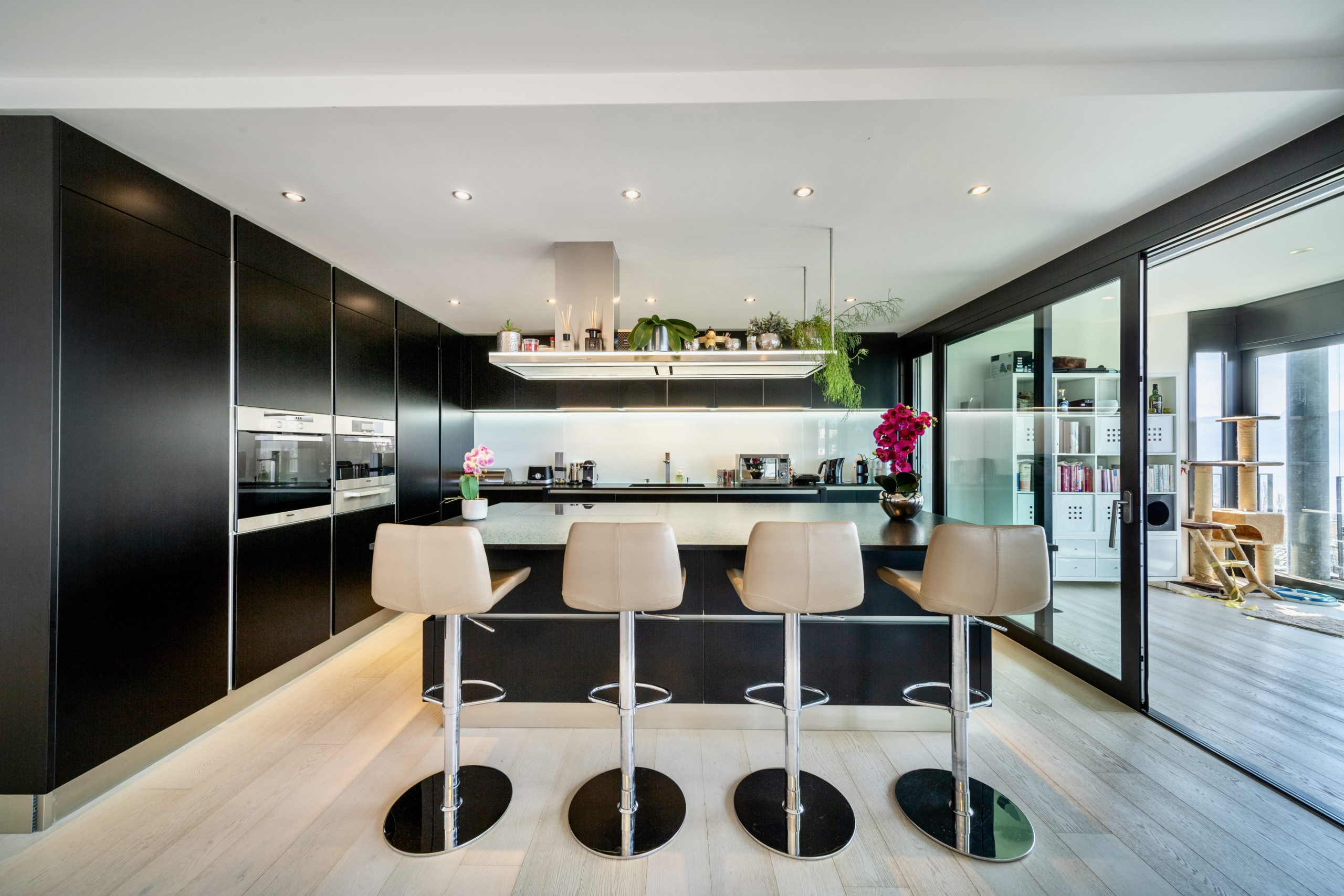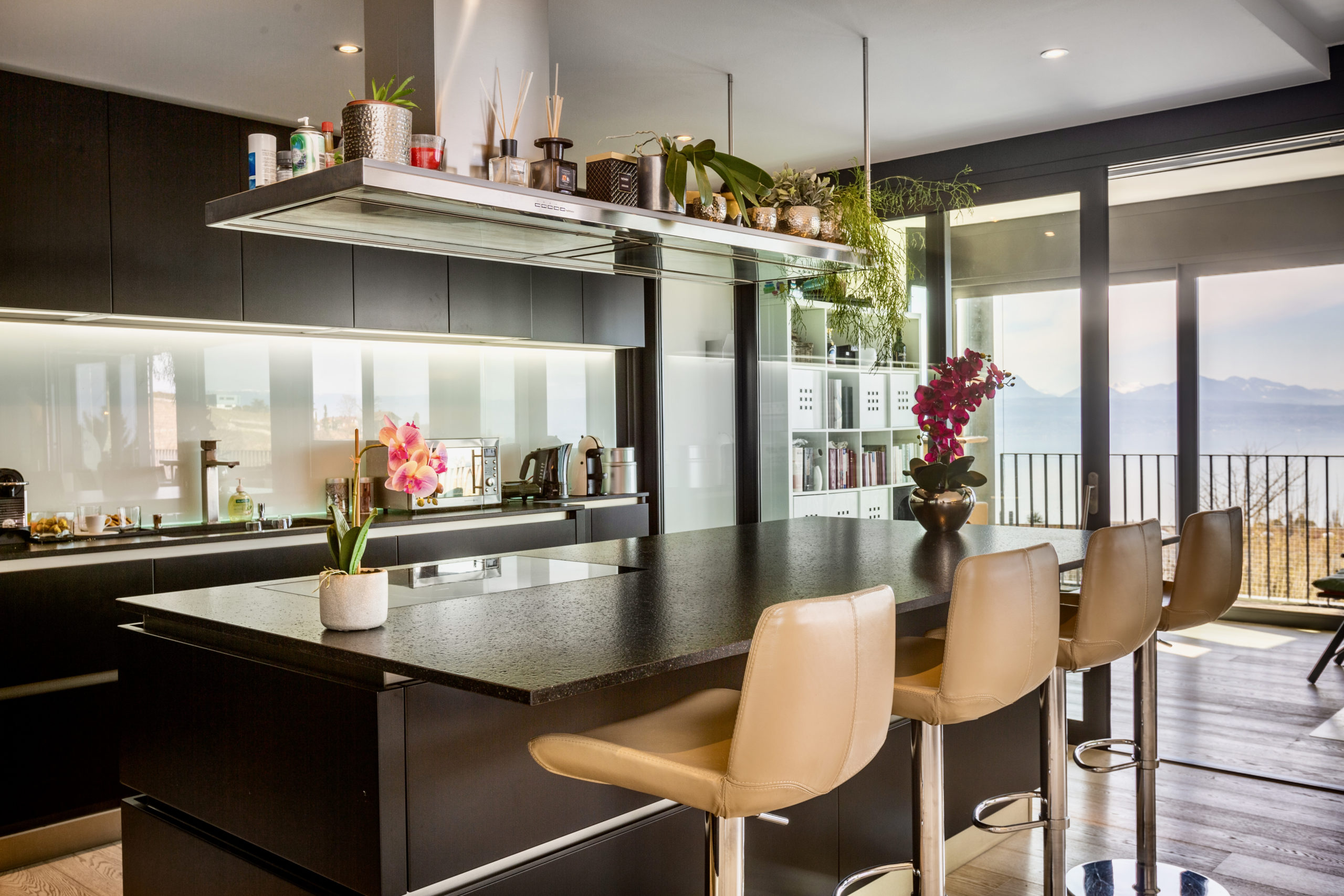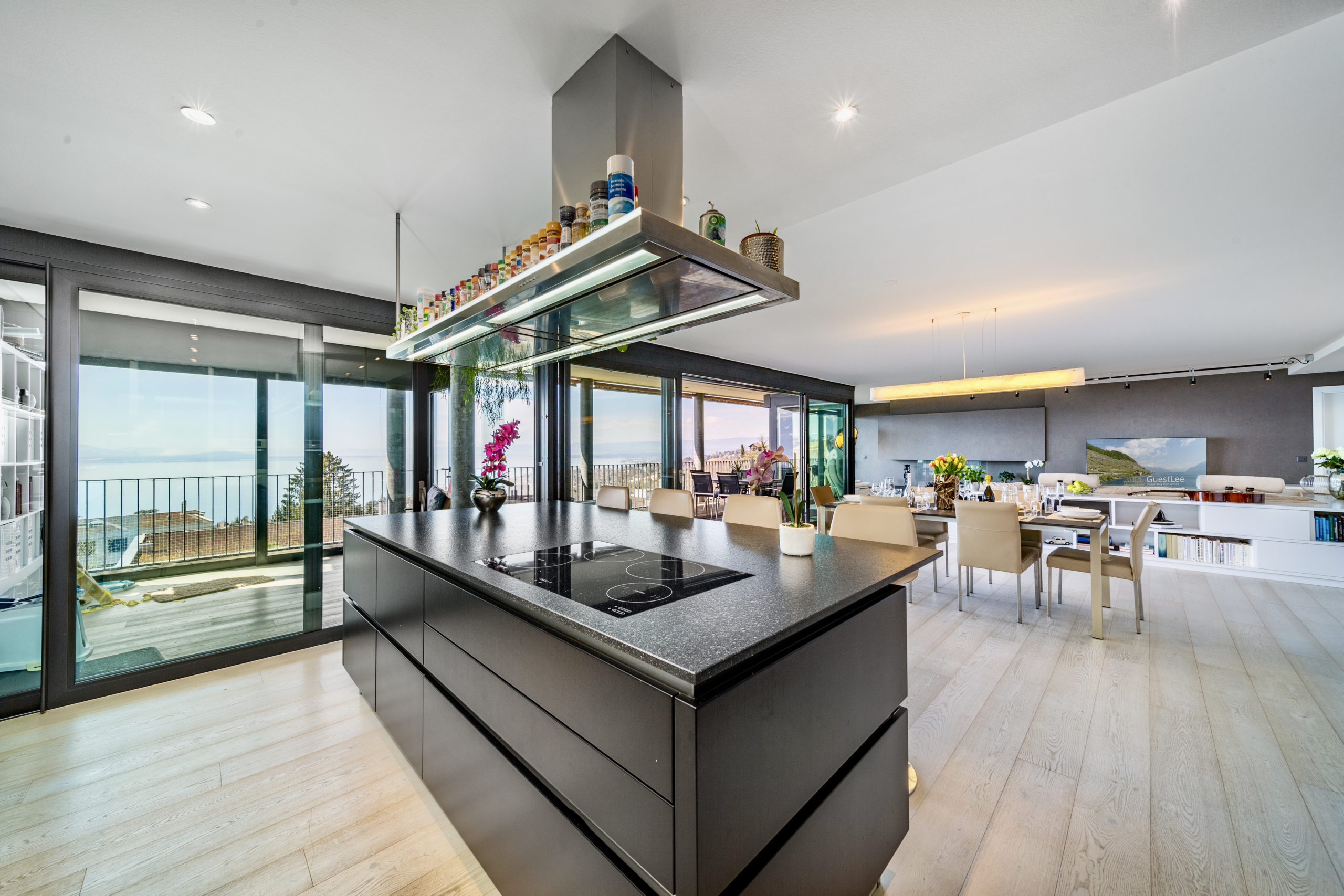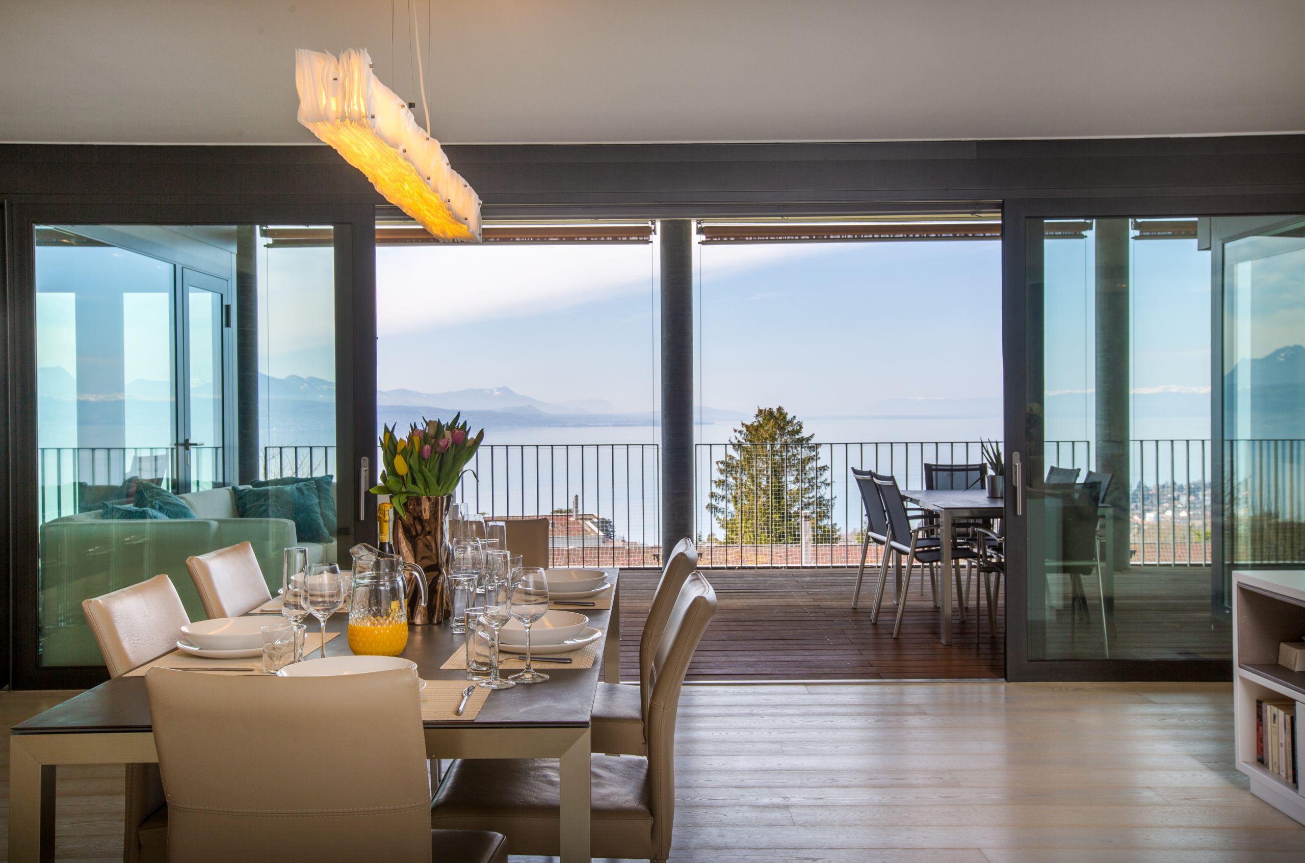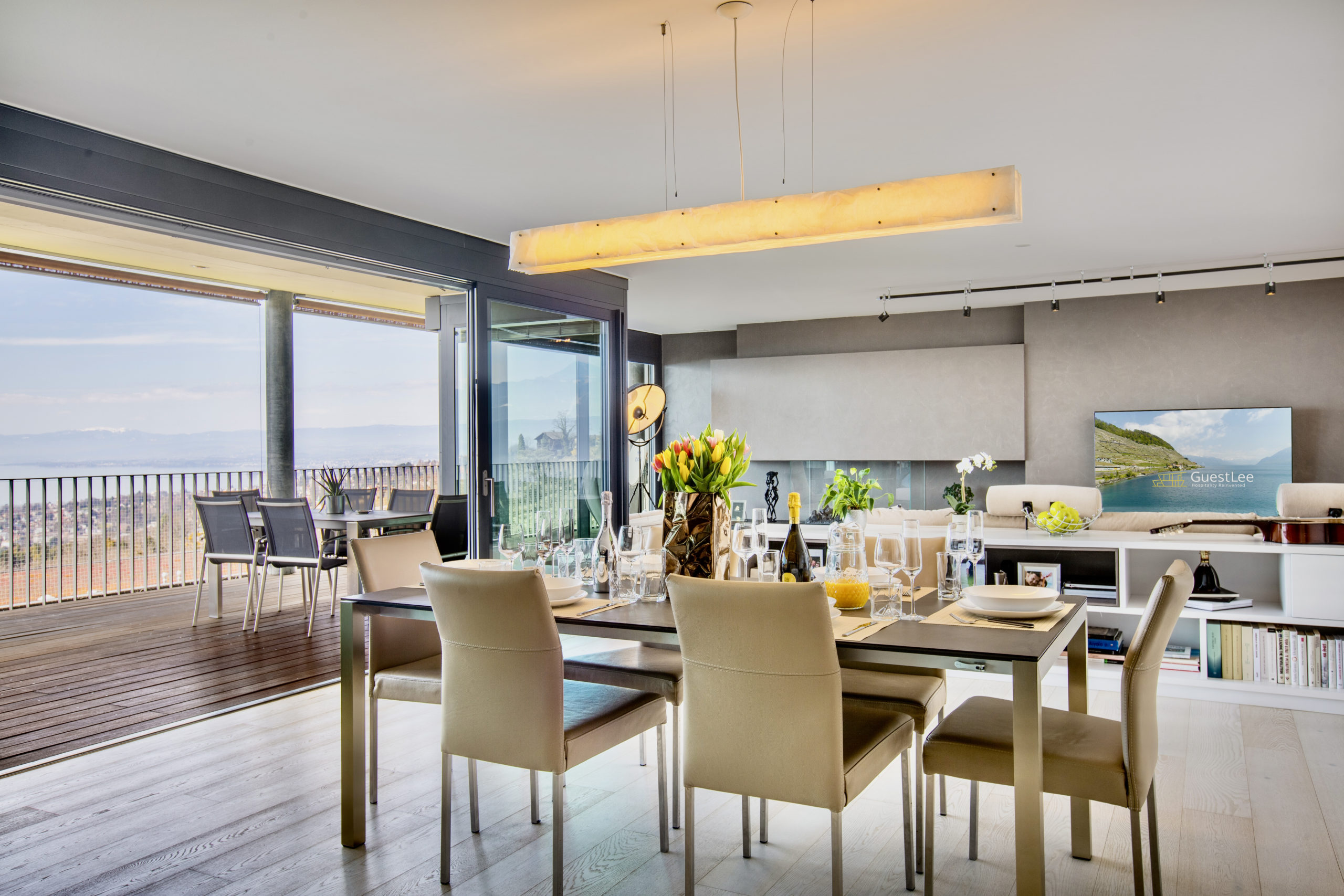 This extravagant penthouse is spread over 200 sq.m2 offering complete privacy and uninterrupted lake views of the Leman and the Swiss Alps.