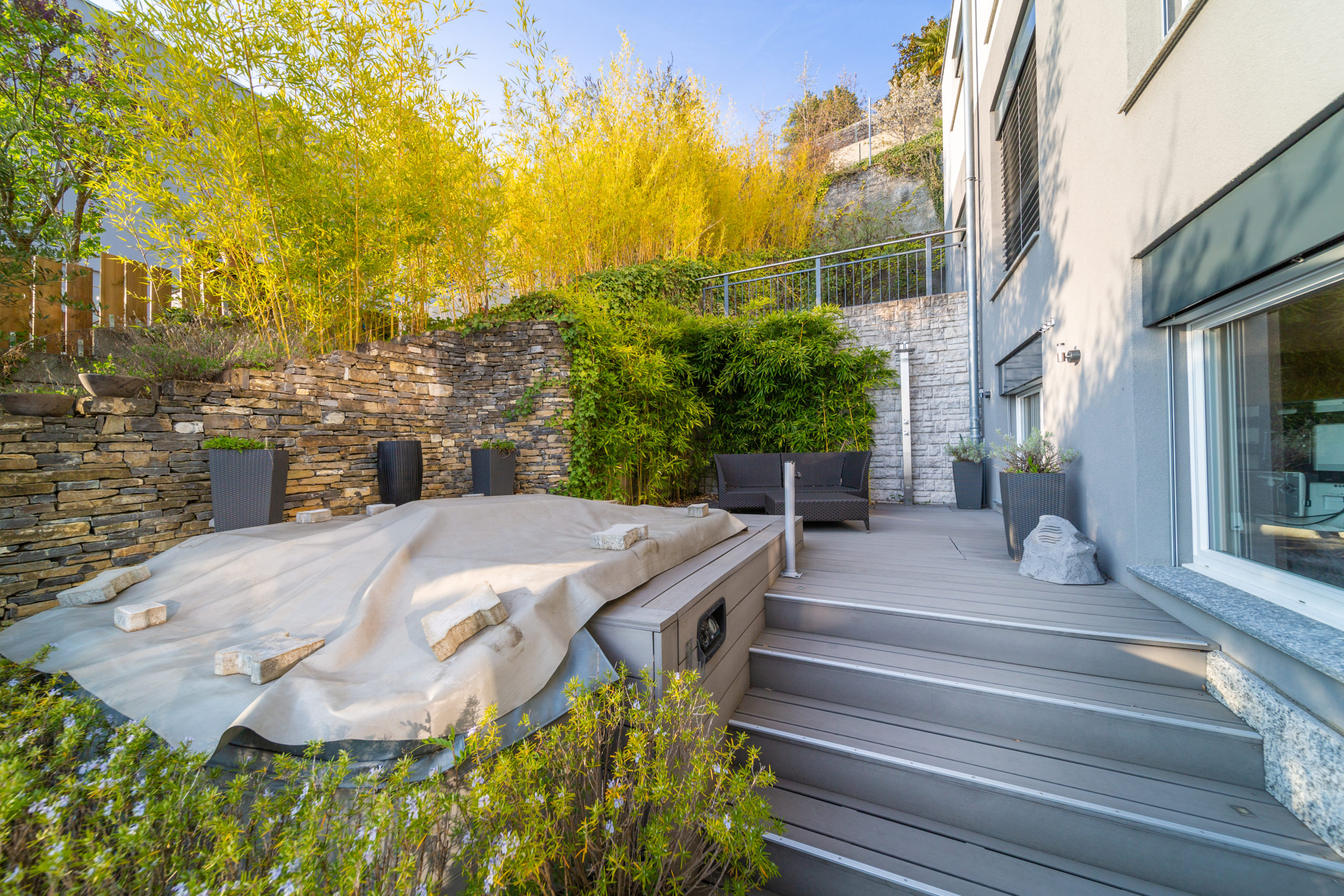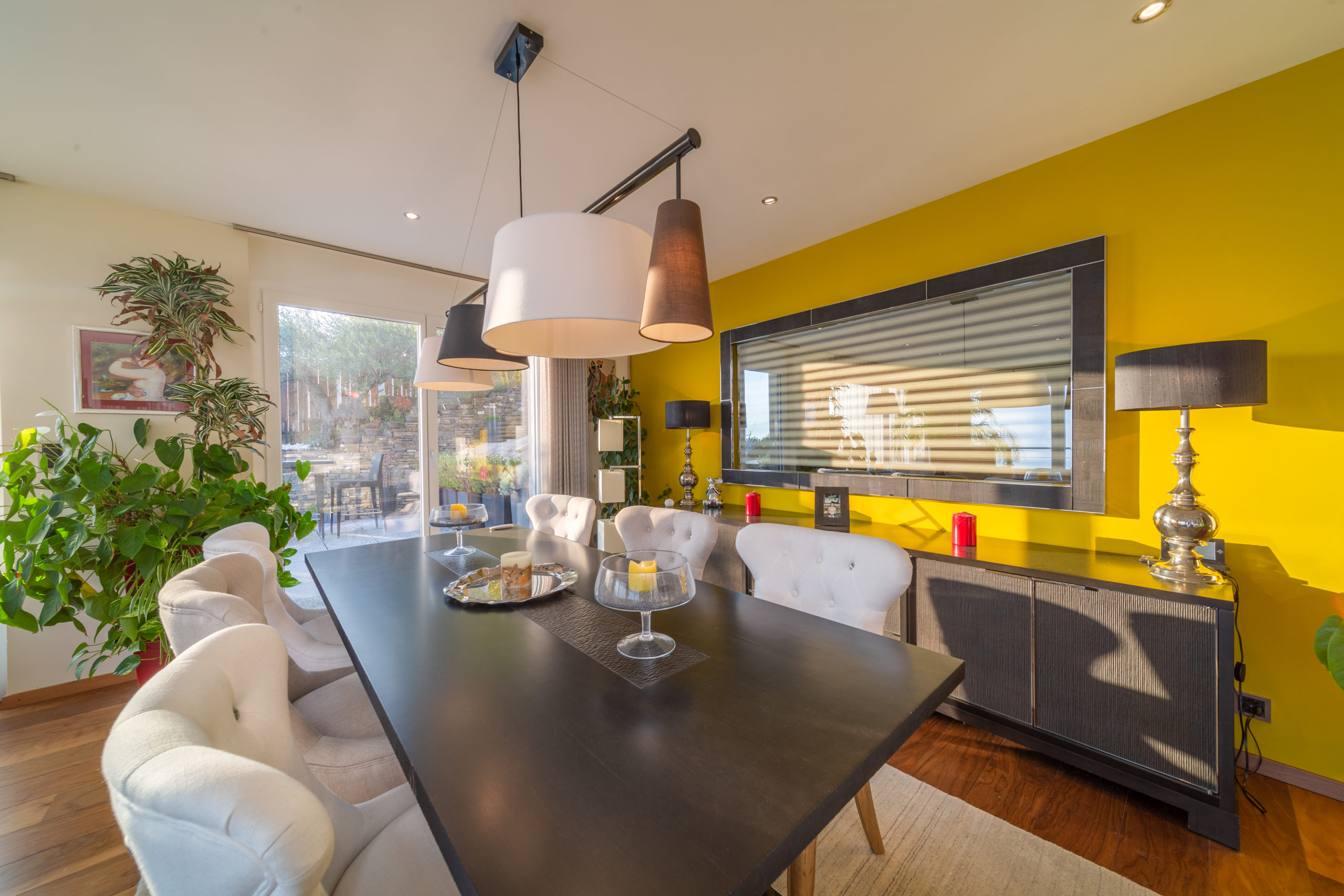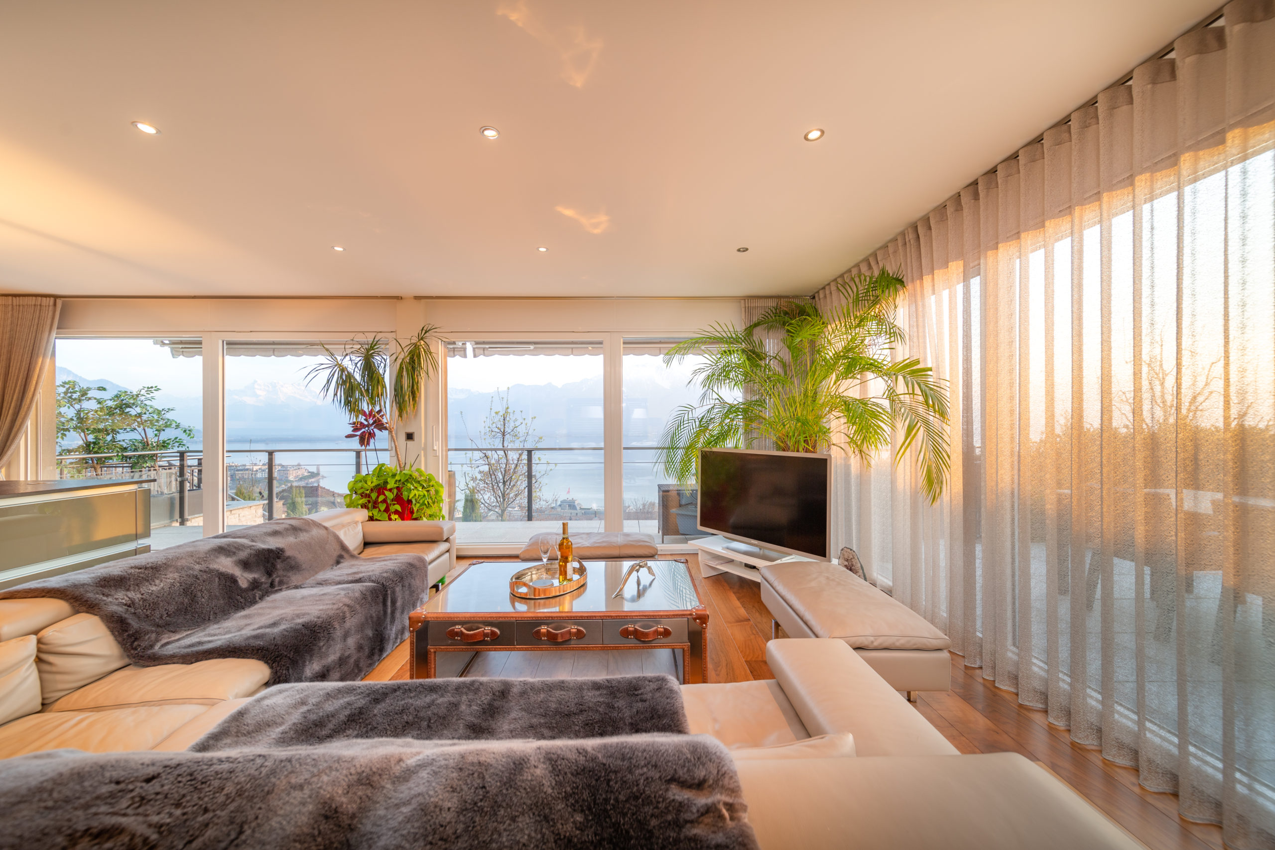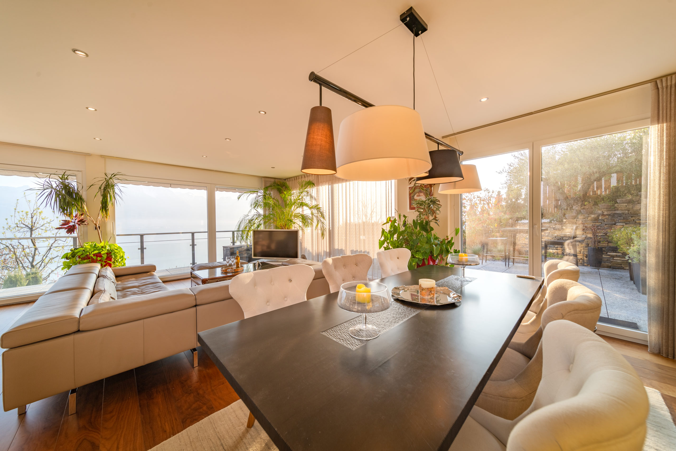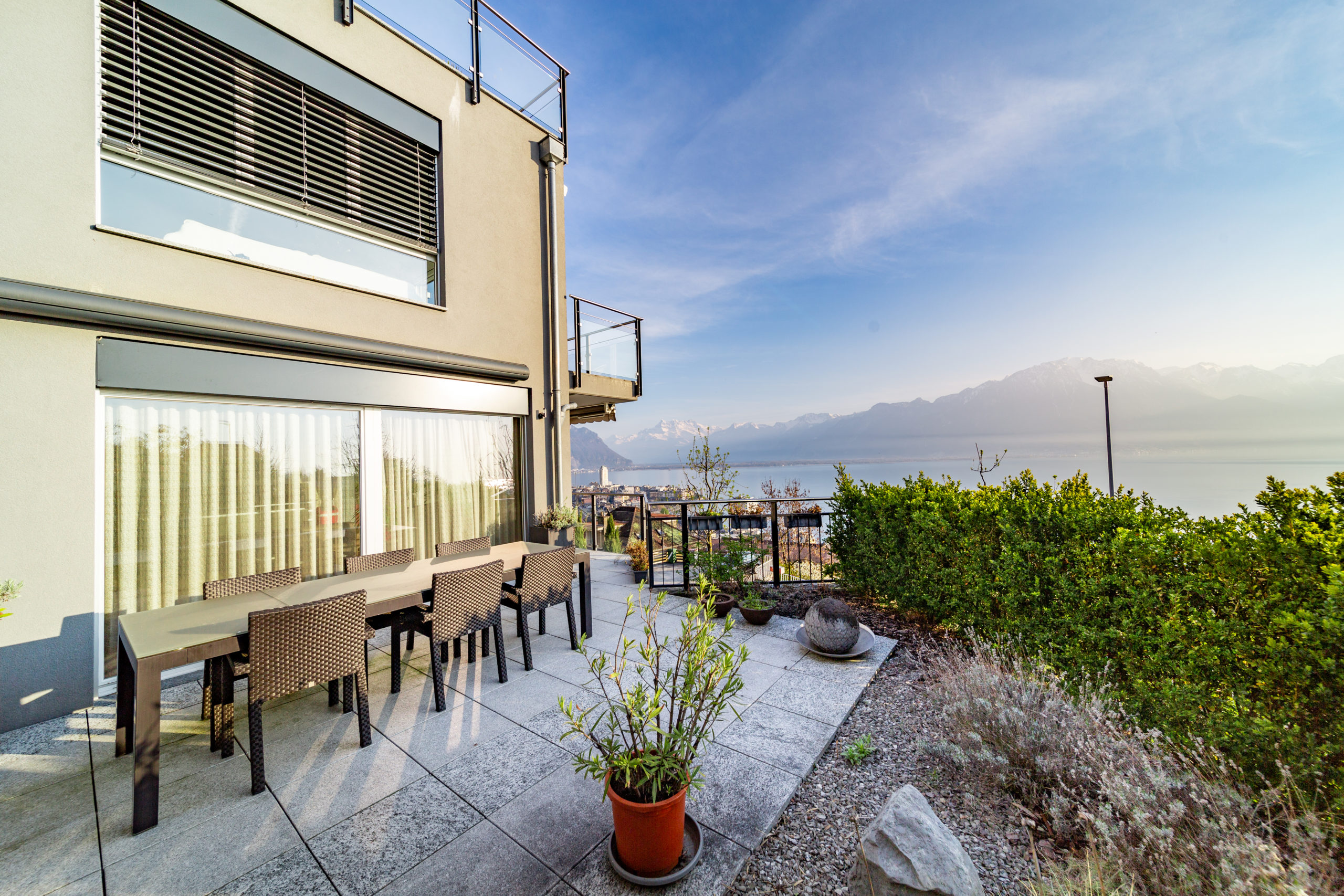 This apartment provides guests with excellent dining space, a spacious living room, a large fully equipped kitchen, 1 double bedroom suite, and one spacious private balcony with panoramic view of the Swiss Alps and the Geneva Lake with a hot jacuzzi in the terrace with panoramic views, plus one indoor parking.