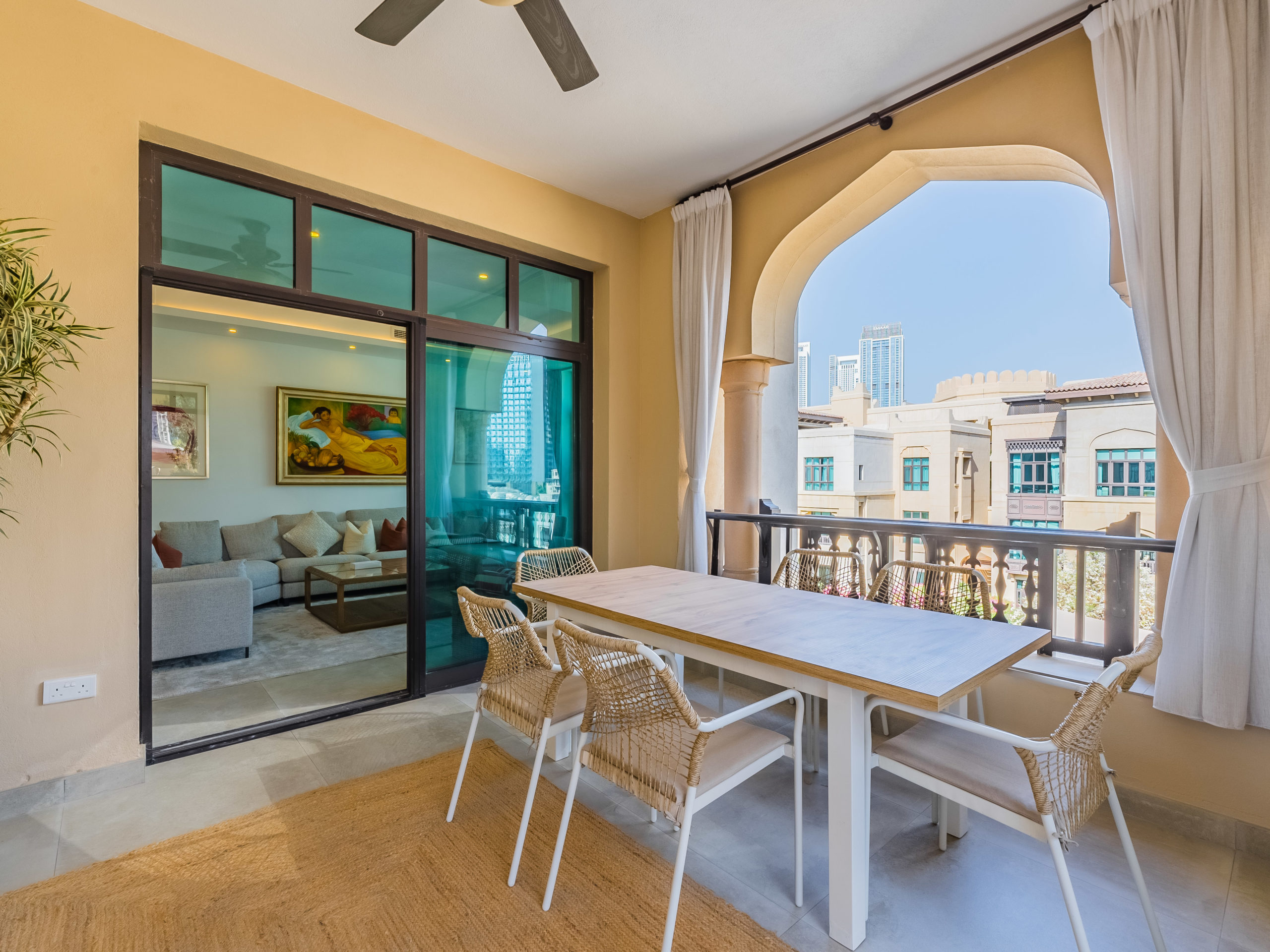 Discover a rare gem in the heart of Old Town Dubai, a luxurious 2.5-bedroom apartment that blends historic charm with contemporary elegance. Nestled in the prestigious Souk Al Bahar, this exquisite residence offers a truly unique experience—a private pool in the heart of Downtown Dubai, providing an oasis of relaxation amidst the city’s vibrant energy.
