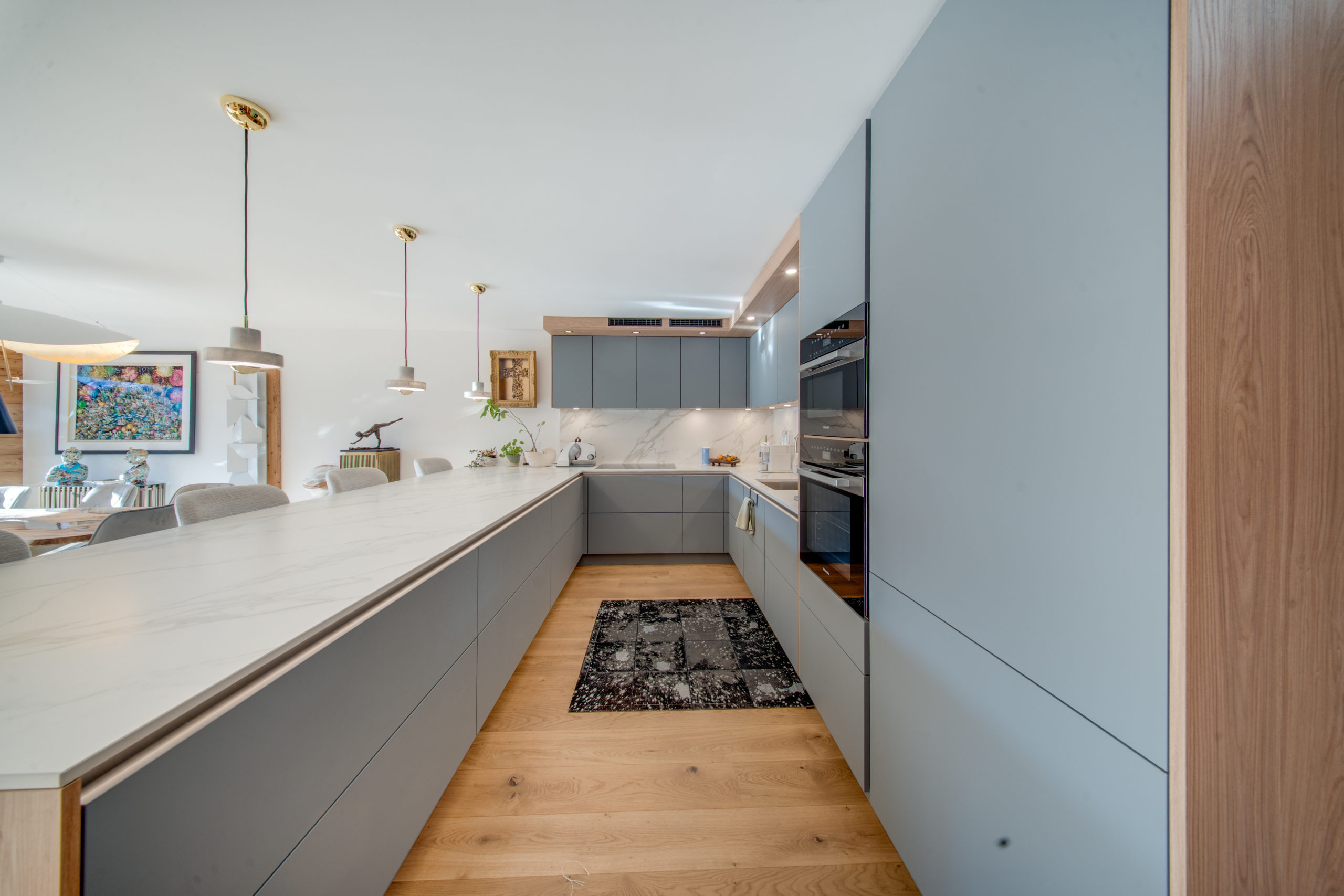 All on one level, with elevator access and generous living spaces, the apartment is perfect for families, groups, or wellness retreats looking for a premium stay in Switzerland’s most iconic mountain resort.