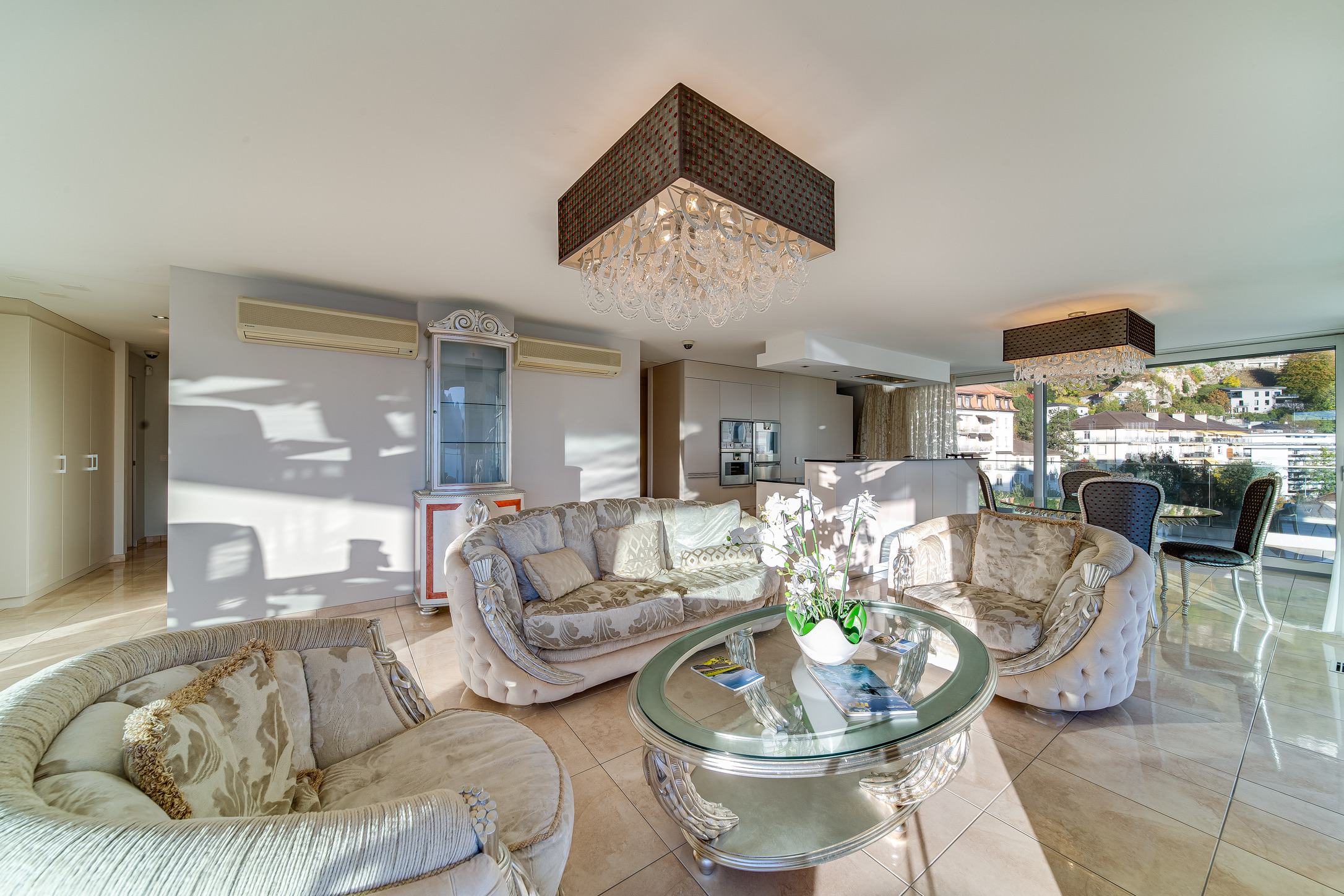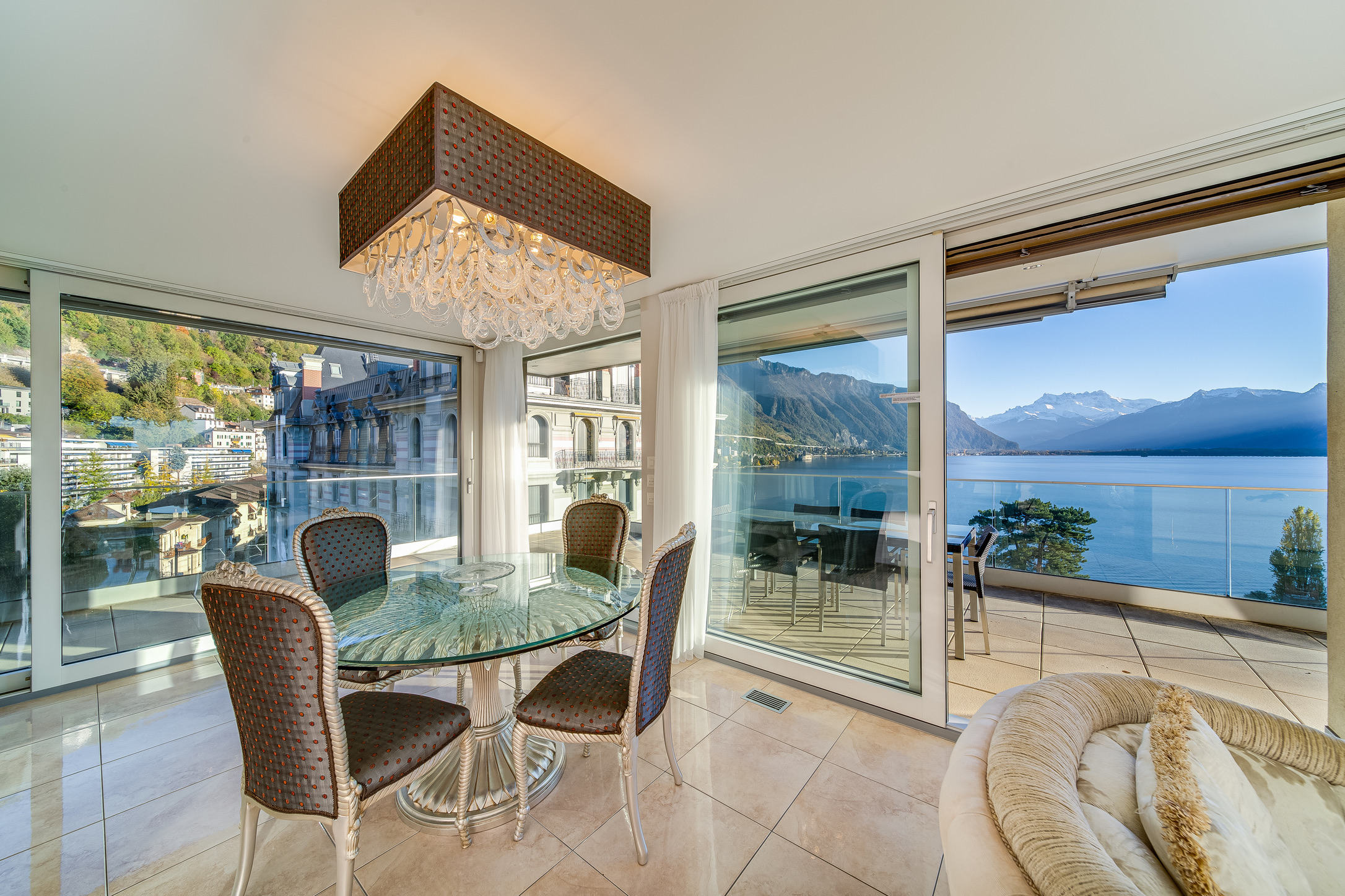 Located on the iconic Claude Nobs Avenue, this Luxury Apartment Montreux Rental is just a minute’s walk from the lake and three minutes from the train station. The quiet residential area is popular among wealthy holiday homeowners who value peace and discretion over the hustle and bustle of city hotels.