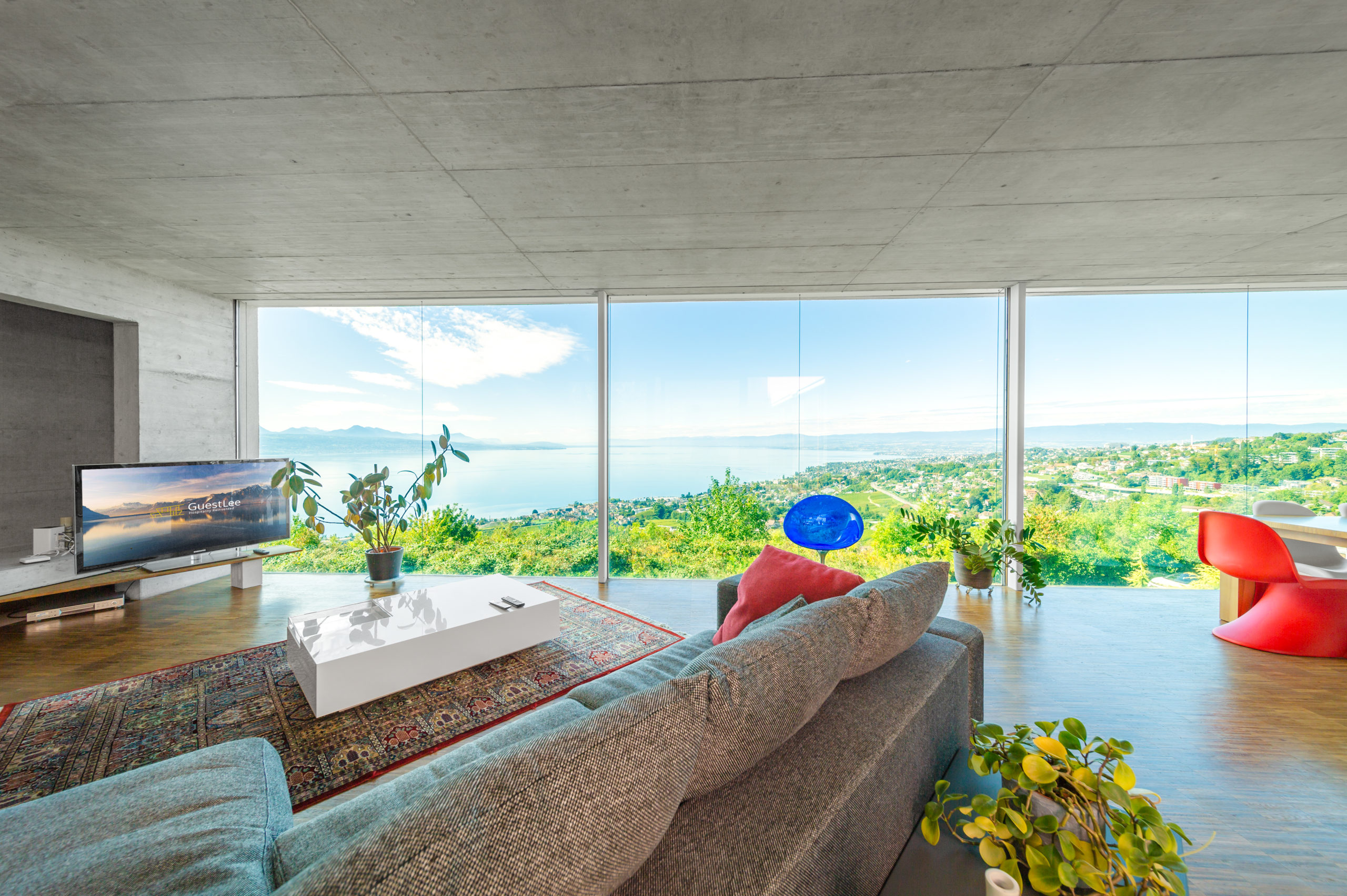 Situated on a hillside surrounded by vineyards, the property offers one of the most beautiful views of the lake and the Alps.