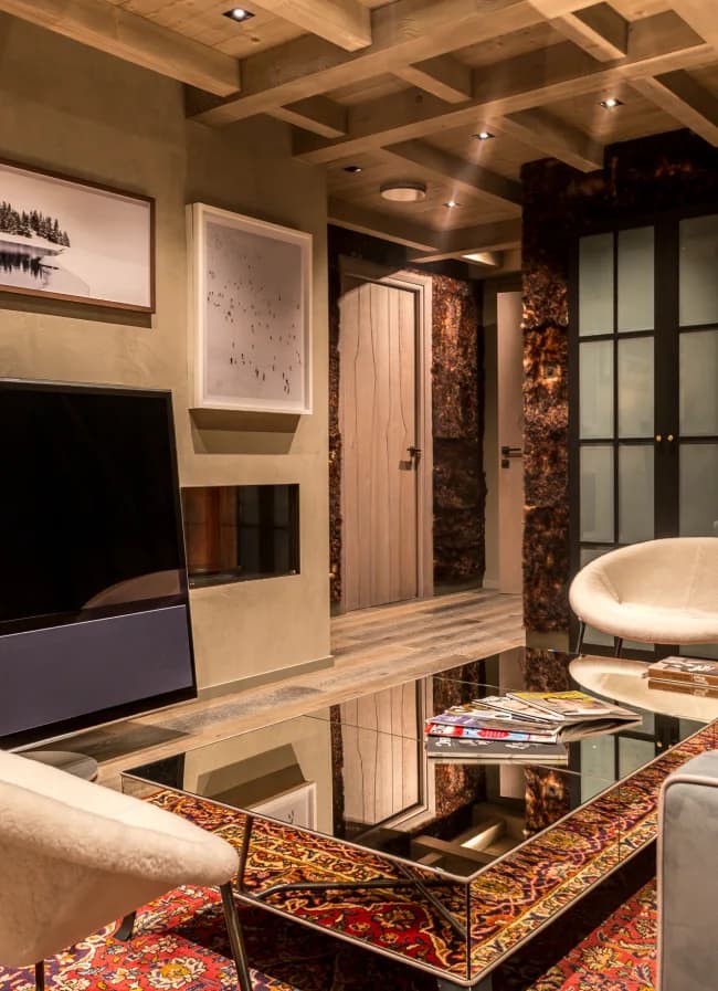 Our luxury rental Val Thorens chalet spans 1,200 square meters and sits at the highest point of the resort. From the expansive south terrace, you can admire stunning views of the Glacier de Péclet and Cime de Caron mountain. The nearest ski slope is just ten meters away, offering you instant access to fantastic skiing and snowboarding.