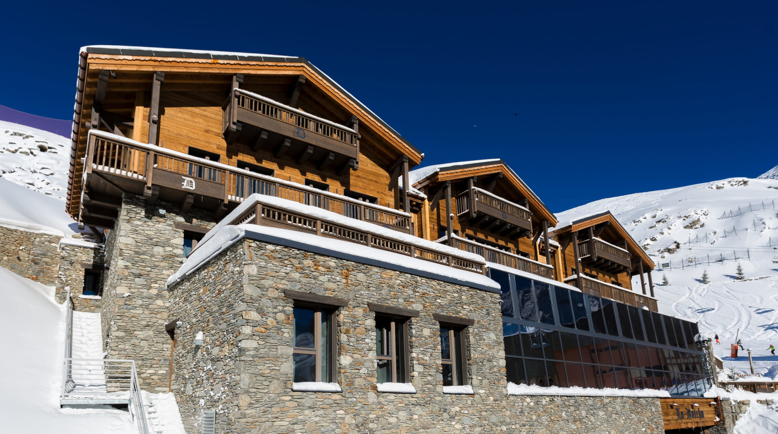 La Datcha Val Thorens is available as a whole rental, making it ideal for families or groups seeking a luxurious alpine getaway. This chalet features five beautifully designed suites, each with a private balcony and bathroom. Guests will enjoy the privacy and spectacular mountain views from the upper floors.