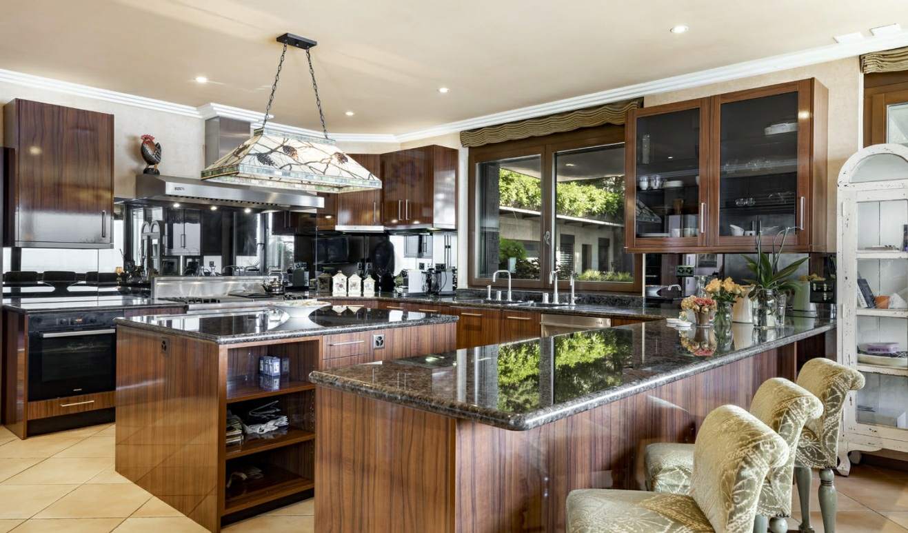 • Professional-grade kitchen featuring Sub-Zero refrigeration and Viking cooktop/grill.