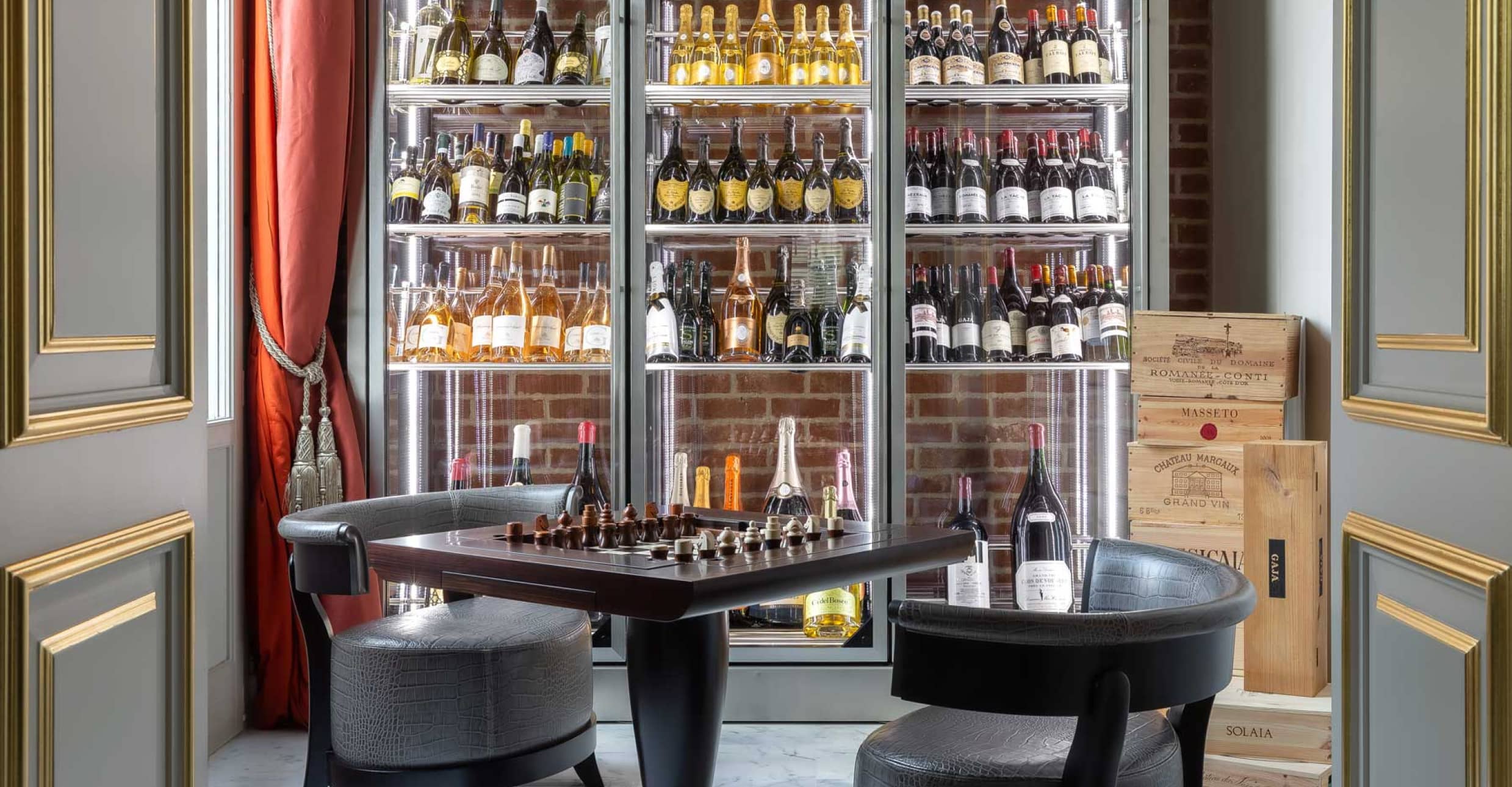 The upper floor hosts the bedrooms and an outdoor terrace with a garden, sun loungers, armchairs, and a bar, offering the perfect spot to enjoy a glass of wine from the personal collection, “La Datcha.” The palazzo can only be rented in its entirety, providing an intimate and private retreat for up to 20 guests.