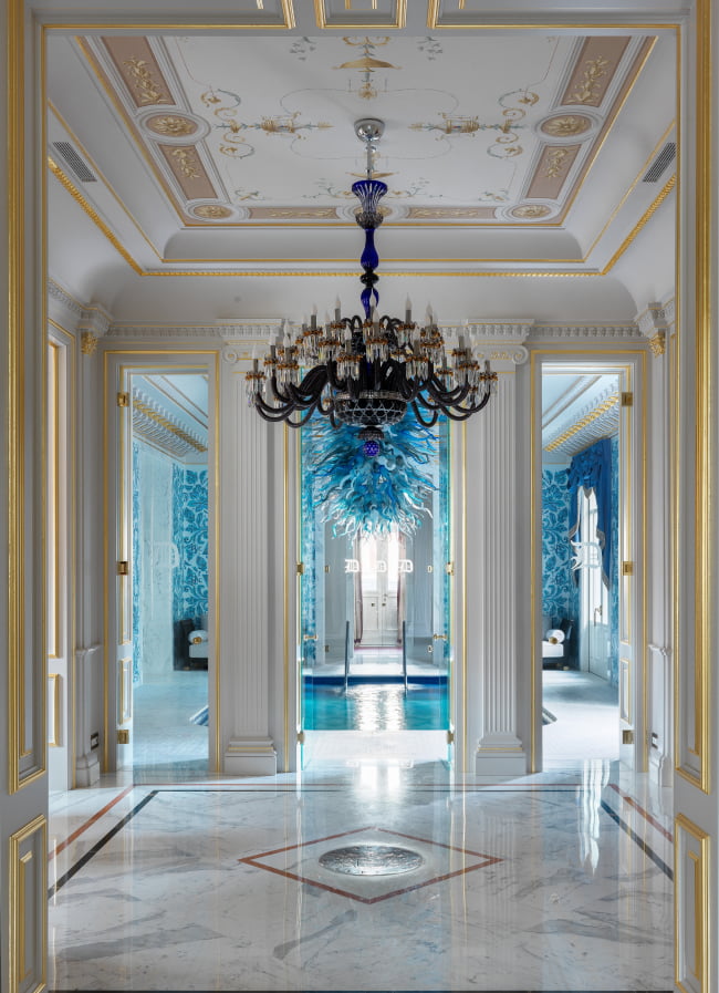 Spanning four floors, the palazzo provides ample space and luxurious amenities. The ground floor features two living rooms, a dining room, a cocktail area, a bar, two workspaces, a cinema, and a spa center equipped with a swimming pool, sauna, Turkish bath, and a sunbathing terrace. Every corner of this luxury villa vacation rental is designed to offer ultimate comfort and relaxation.