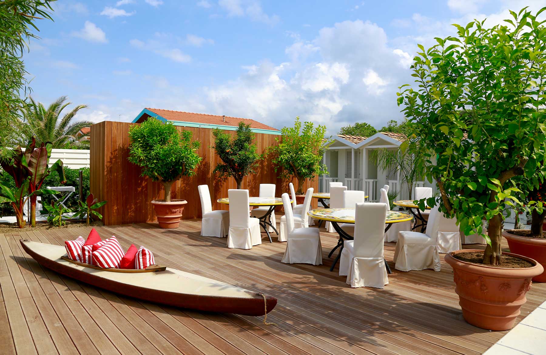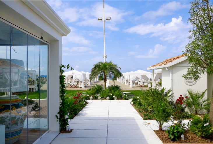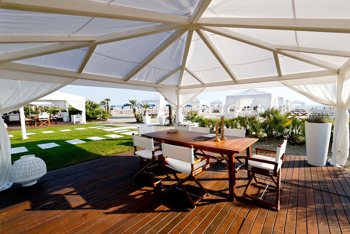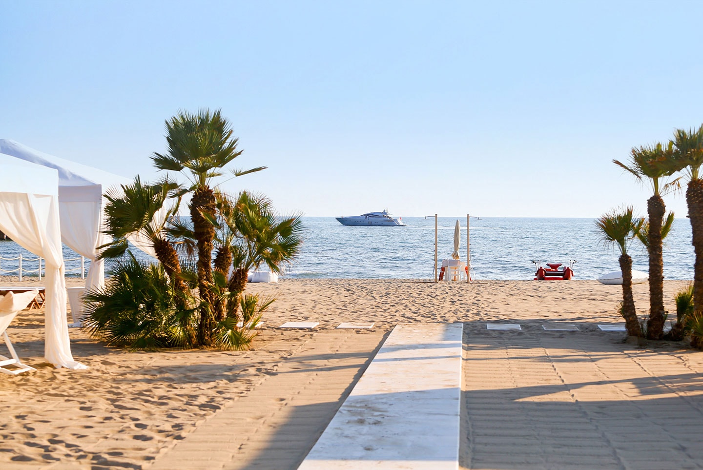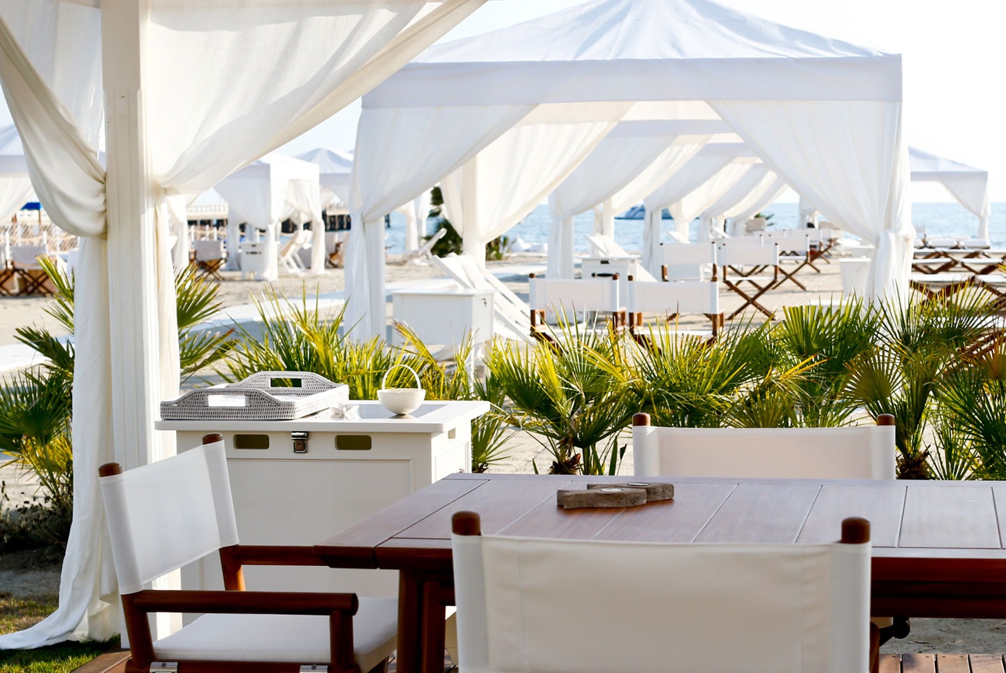 Mediterranean cuisine is central to the experience at this luxury villa vacation rental, featuring fresh seafood, fish, fowl, and seasonal fruits and vegetables. The property also includes a private fenced beach, a rare find in Forte dei Marmi, and a 24 sq. meter swimming pool. Guests can enjoy a refreshing jacuzzi, beachfront garden strolls, yoga classes by the pool, or cold drinks and snacks at the bar. This luxury villa vacation rental offers the finest in relaxation and luxury by the sea.