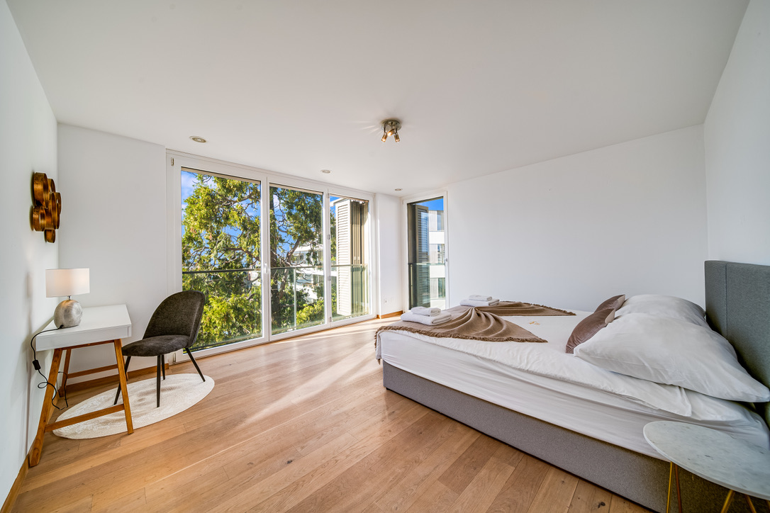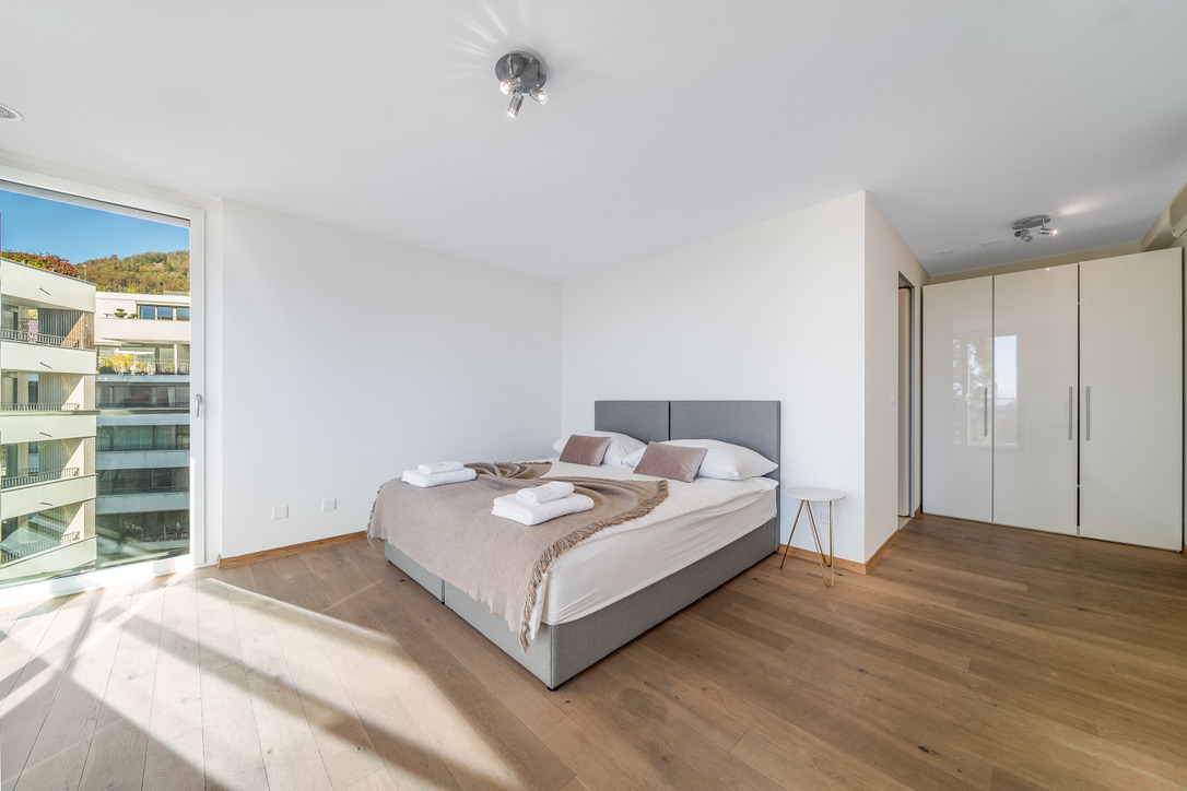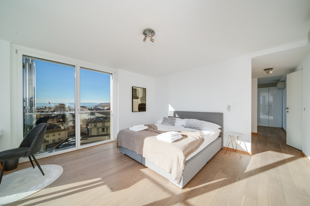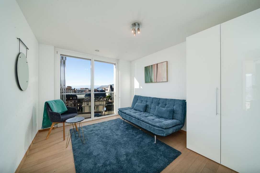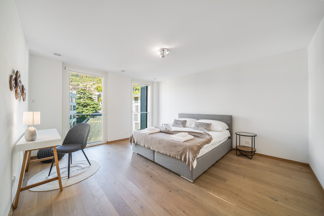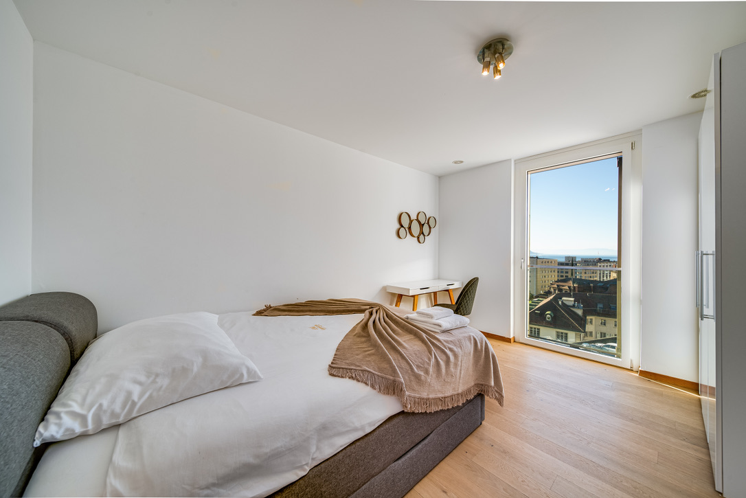 Experience panoramic views in the heart of Montreux—ideal for your family holiday on the Swiss Riviera. This modern, bright, and spacious 4-bedroom, 3.5-bathroom apartment features wooden floors and abundant natural light. Enjoy a large, stylish living room, a beautiful glass dining table seating 8, big screen TVs with Netflix, a fully equipped kitchen, and parking for 2 cars.