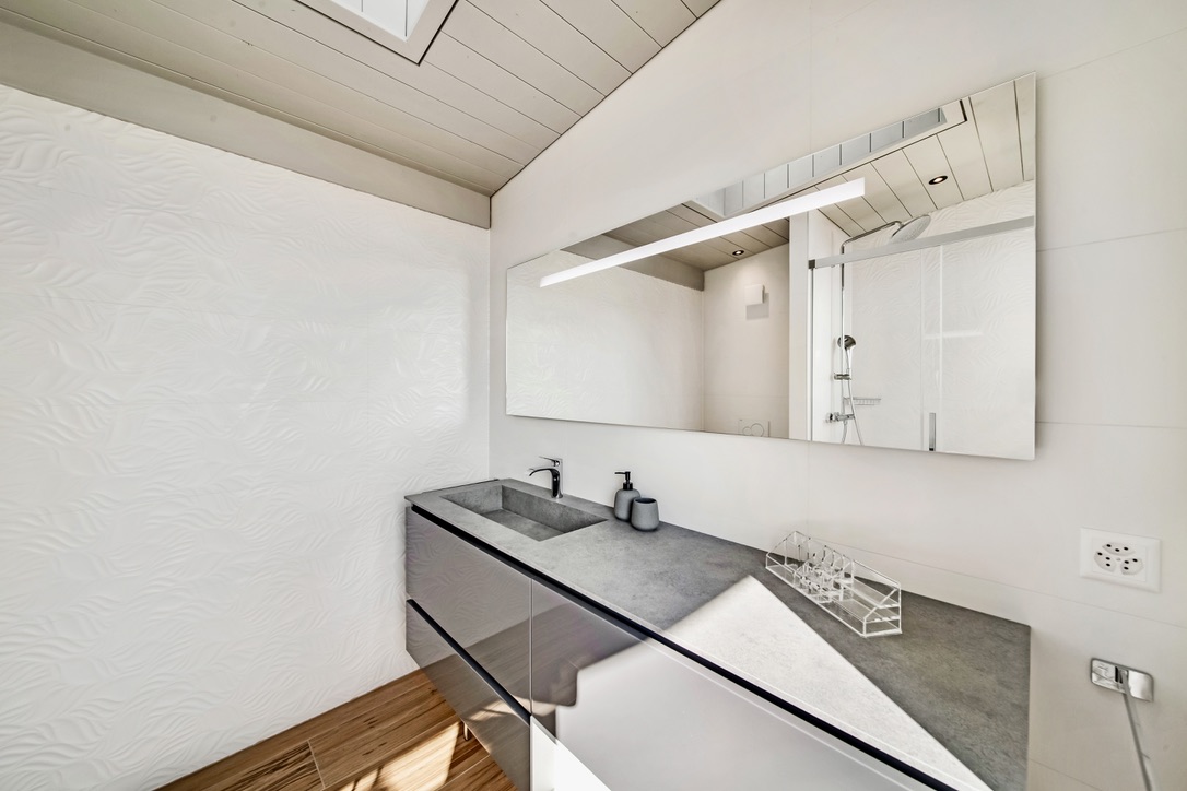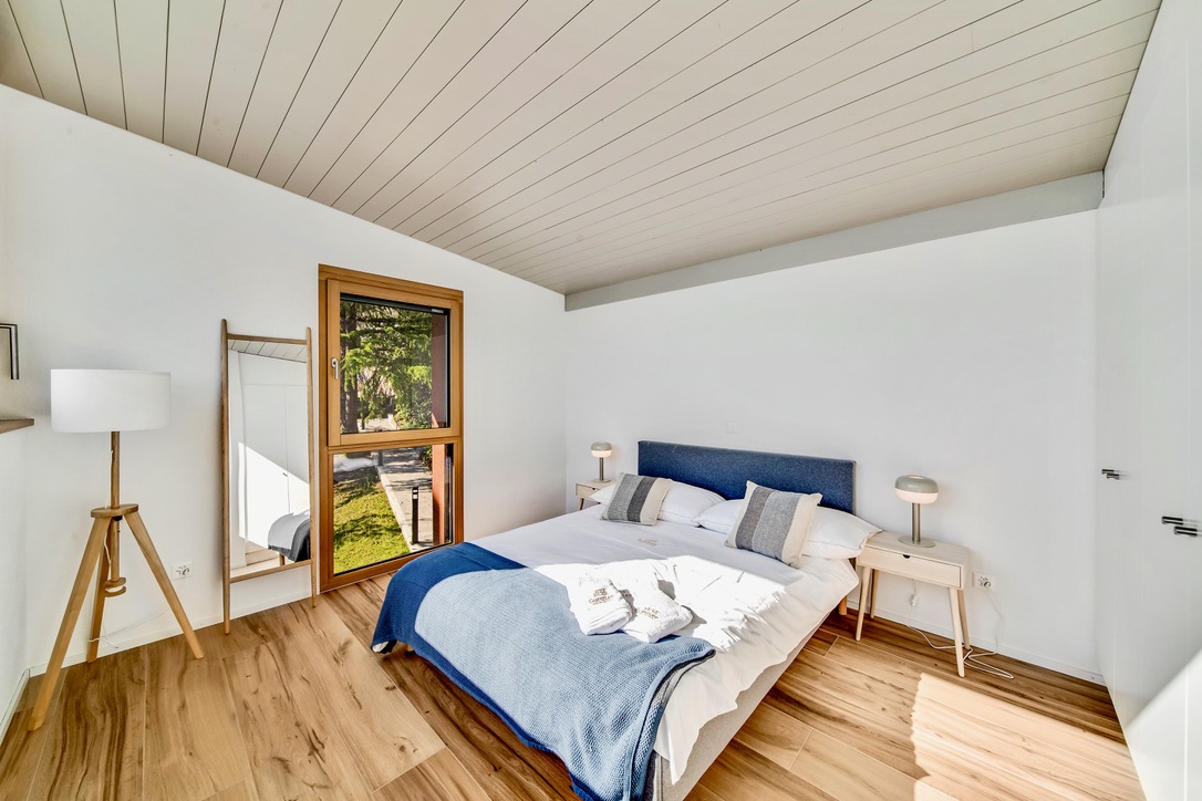 Moreover, the lower floor is a haven of relaxation. It includes three generously sized bedrooms and beautifully appointed shared bathrooms. This level also opens to the garden and additional terraces, offering perfect spots for outdoor enjoyment.