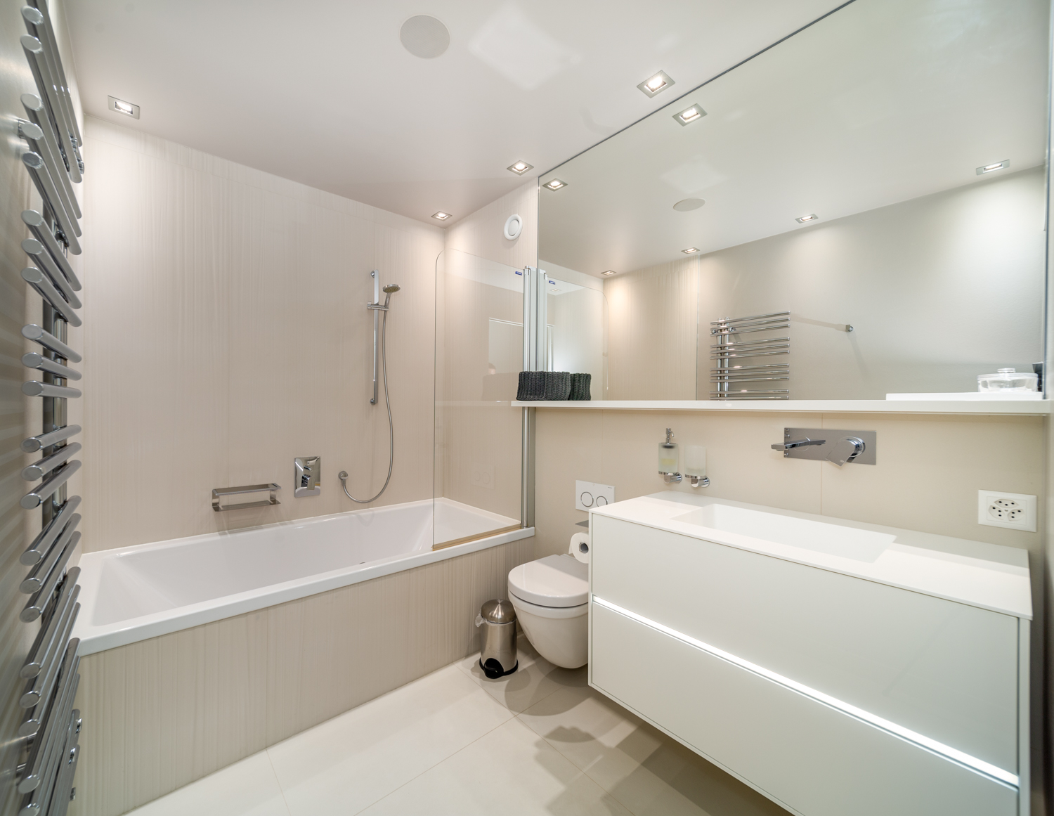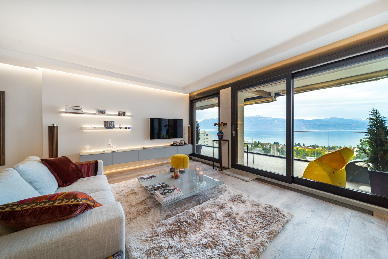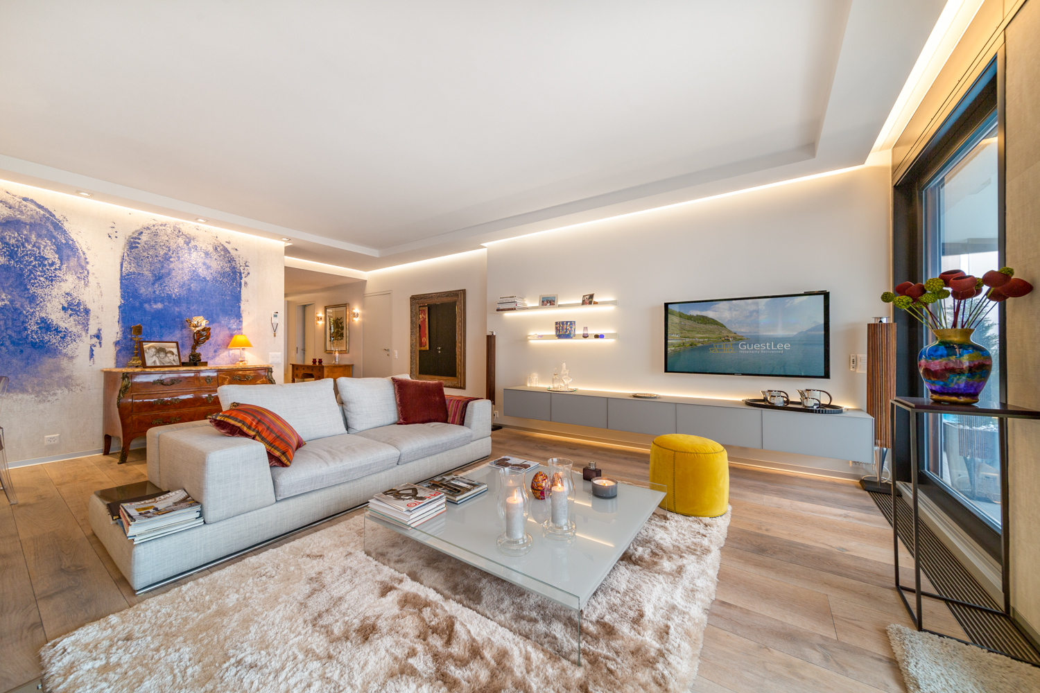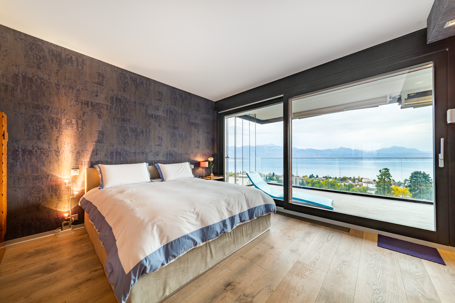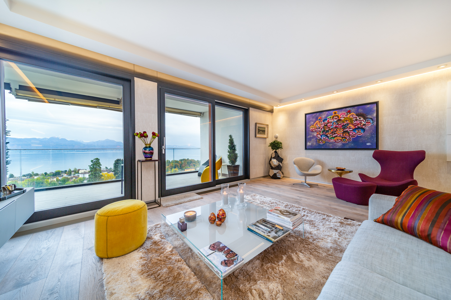 “Luxury apartment with stunning lake views, modern design, and palace level comfort. A generously spacious 2 ensuite bedroom with wooden floors and lots of natural light. You will enjoy a large and comfortable design living room, a beautiful glass dining table that seats 6, big screen TVs with access to 200+ international channels, the living room access to the 30m2 balcony with views and a fully equipped open kitchen. The property is the starting point to one of the best locations in Lausanne.