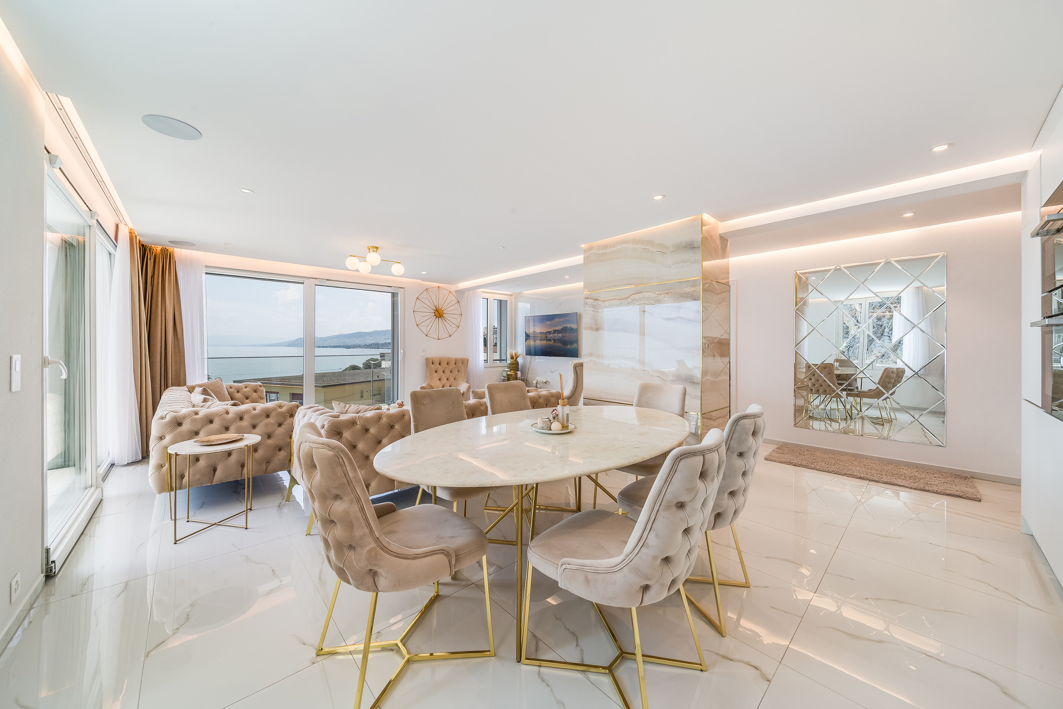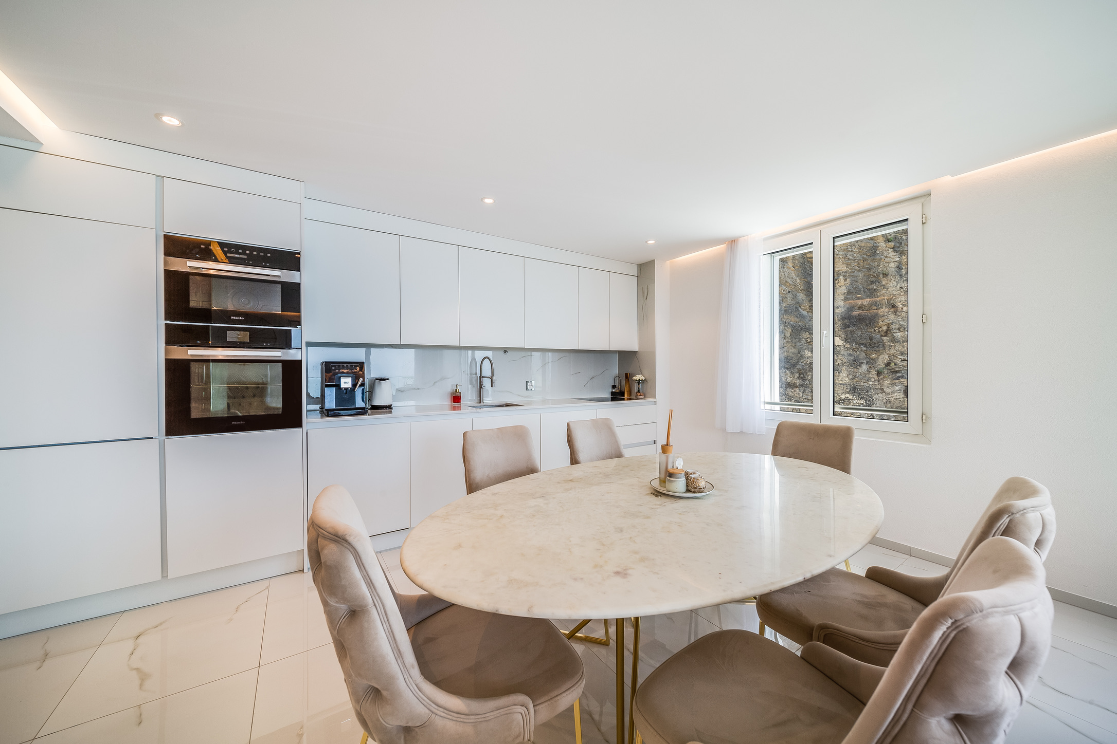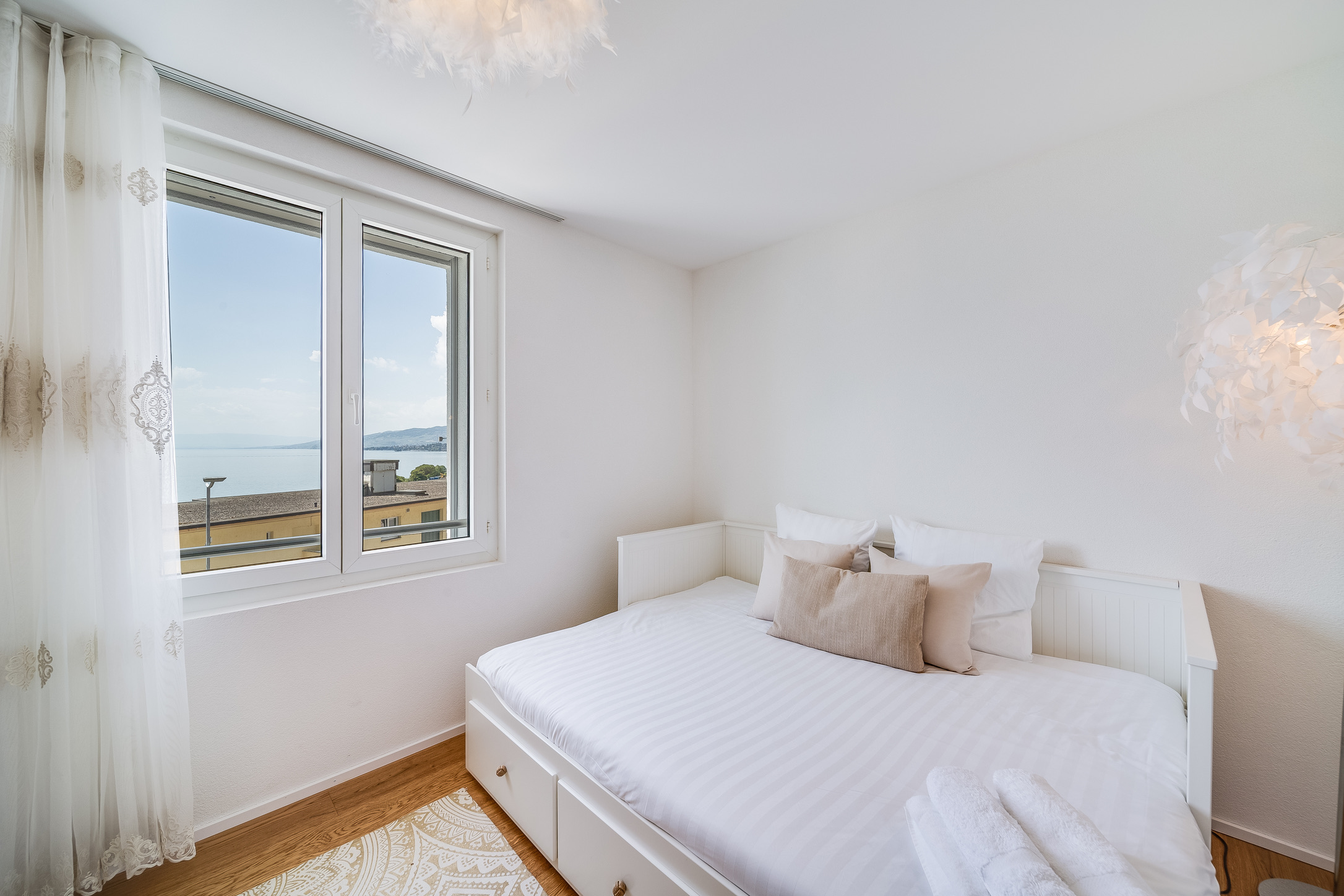 New and modern spacious 2.5-bedroom appartment with 1.5 bathroom equipped with a walk-in shower marble floors and a breath-taking panoramic view of the lake and the Alps. You will enjoy a large and comfortable design space with an open livingroom big screen TV, a beautiful dining table that seats 6 with a fully equipped open kitchen with state of the art appliances, a 30 m2 terrace with panoramic views”