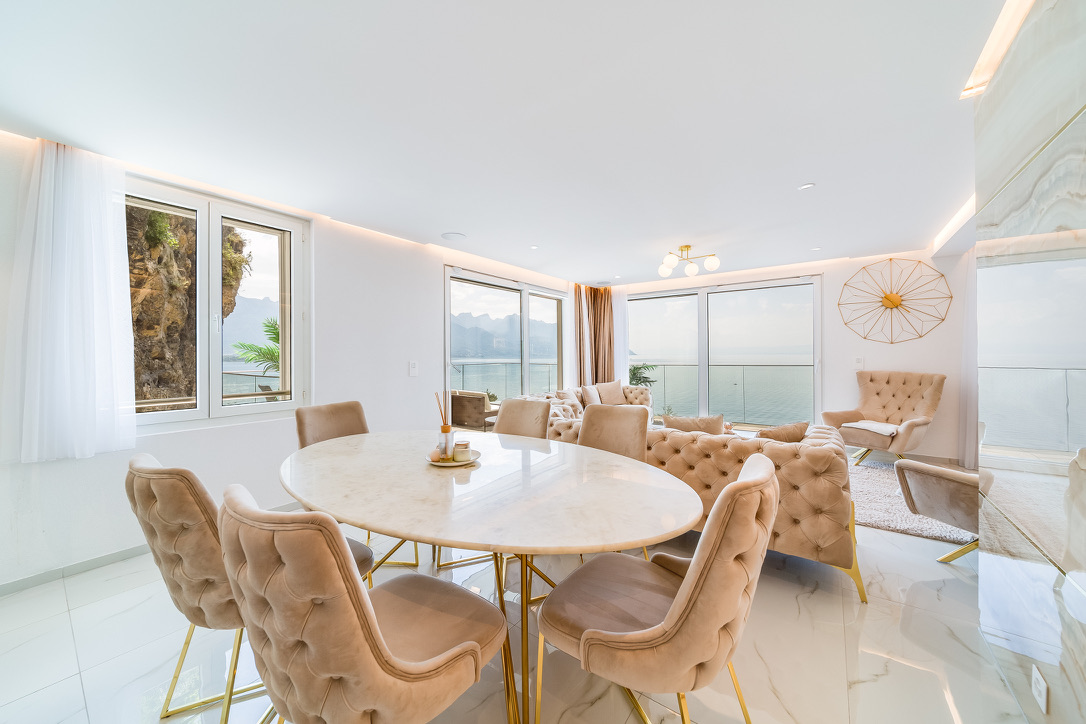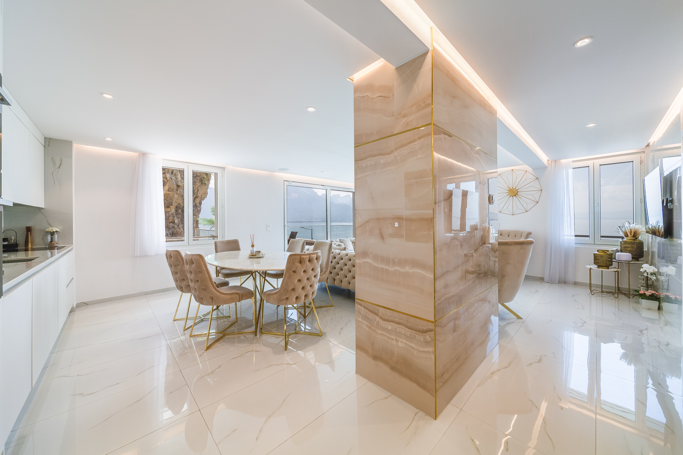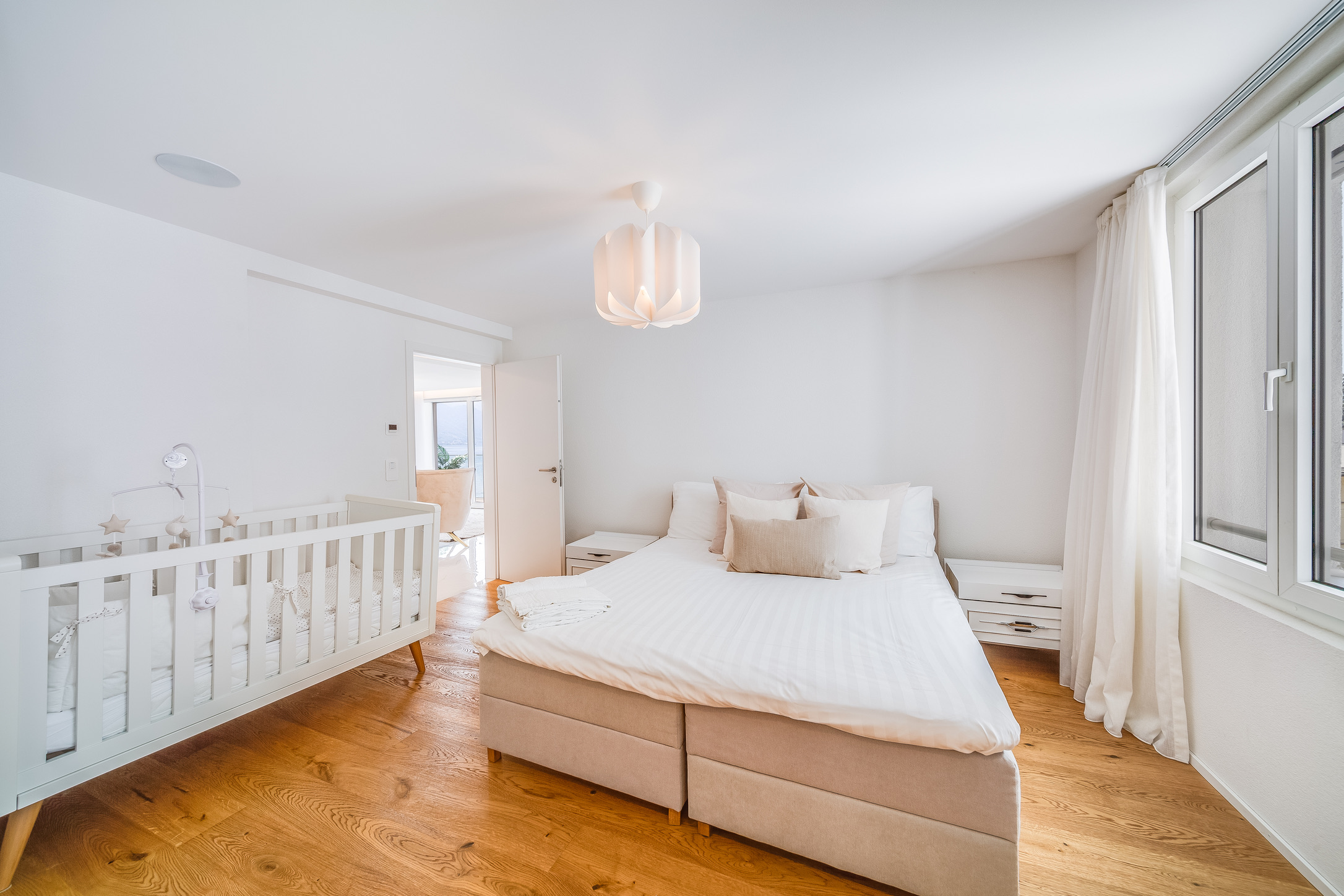 New and modern spacious 2.5-bedroom appartment with 1.5 bathroom equipped with a walk-in shower marble floors and a breath-taking panoramic view of the lake and the Alps. You will enjoy a large and comfortable design space with an open livingroom big screen TV, a beautiful dining table that seats 6 with a fully equipped open kitchen with state of the art appliances, a 30 m2 terrace with panoramic views”