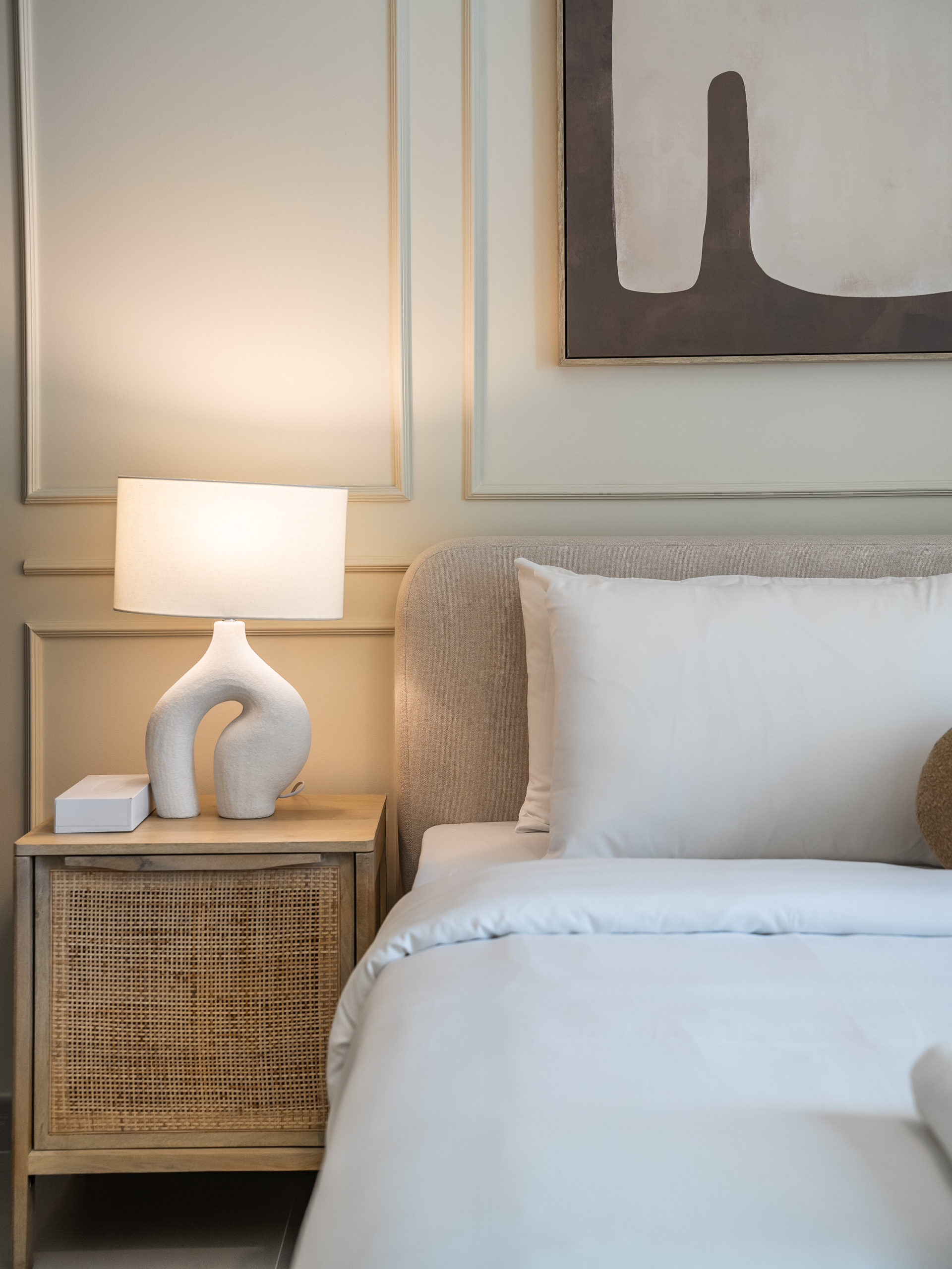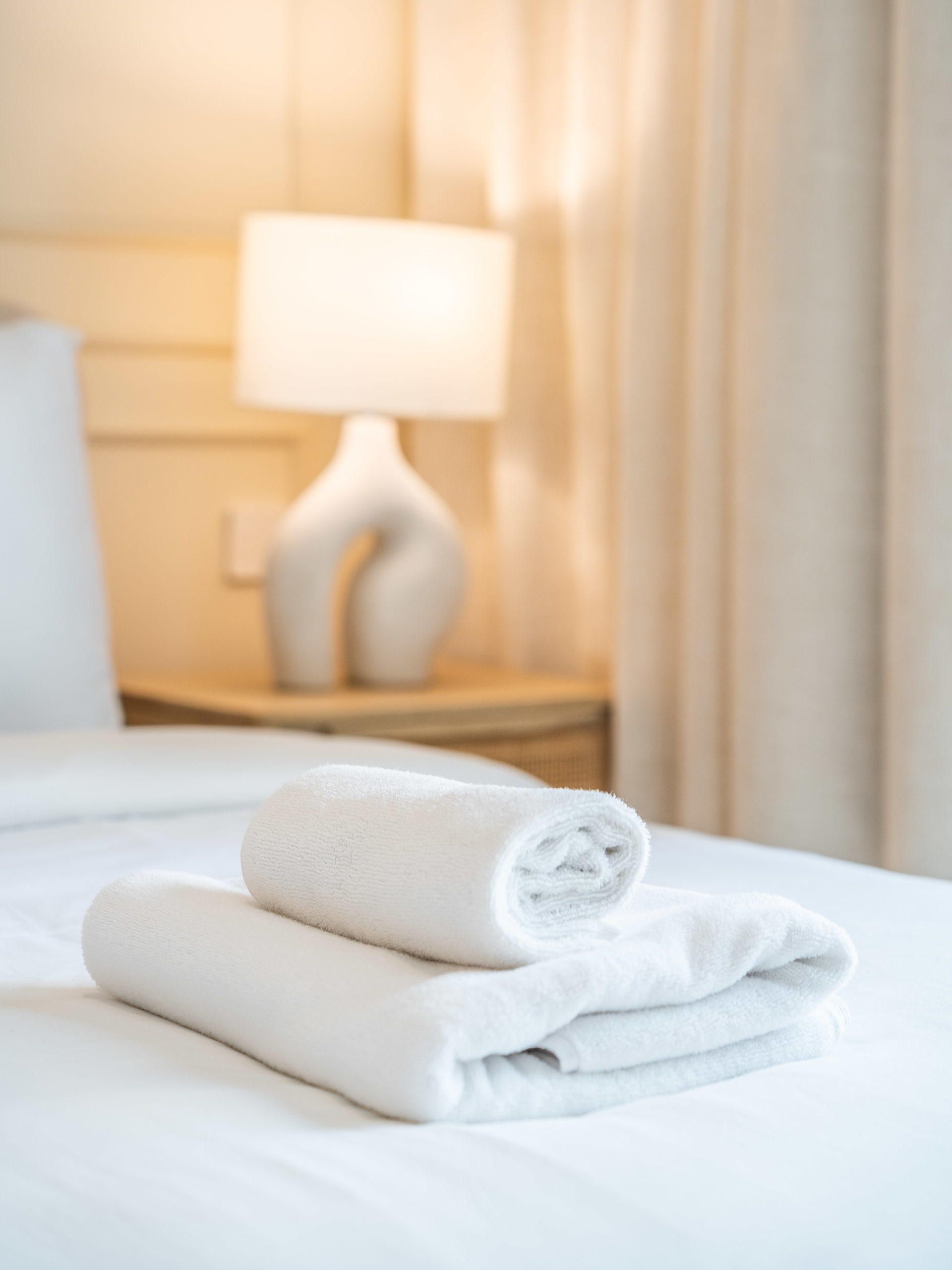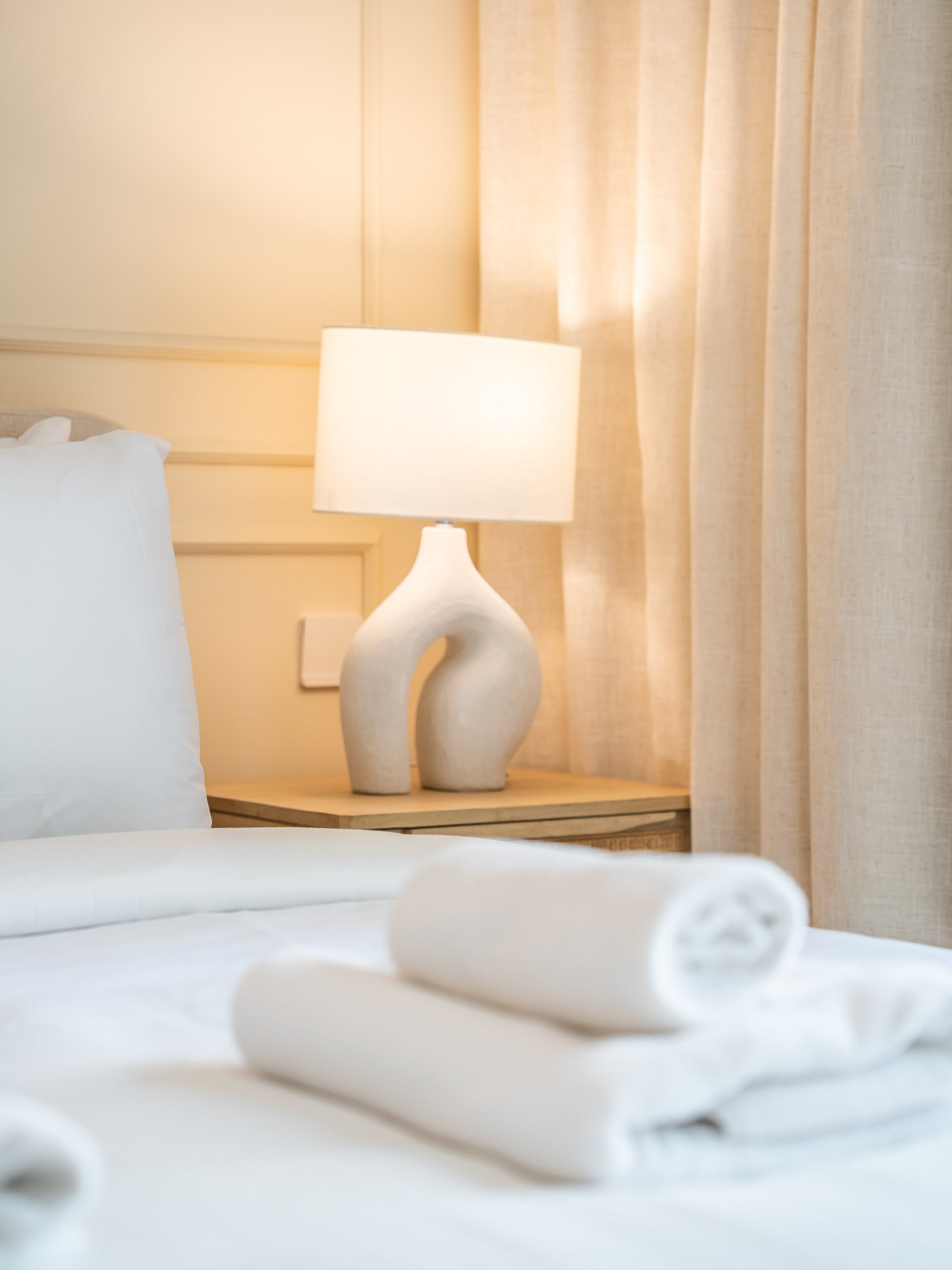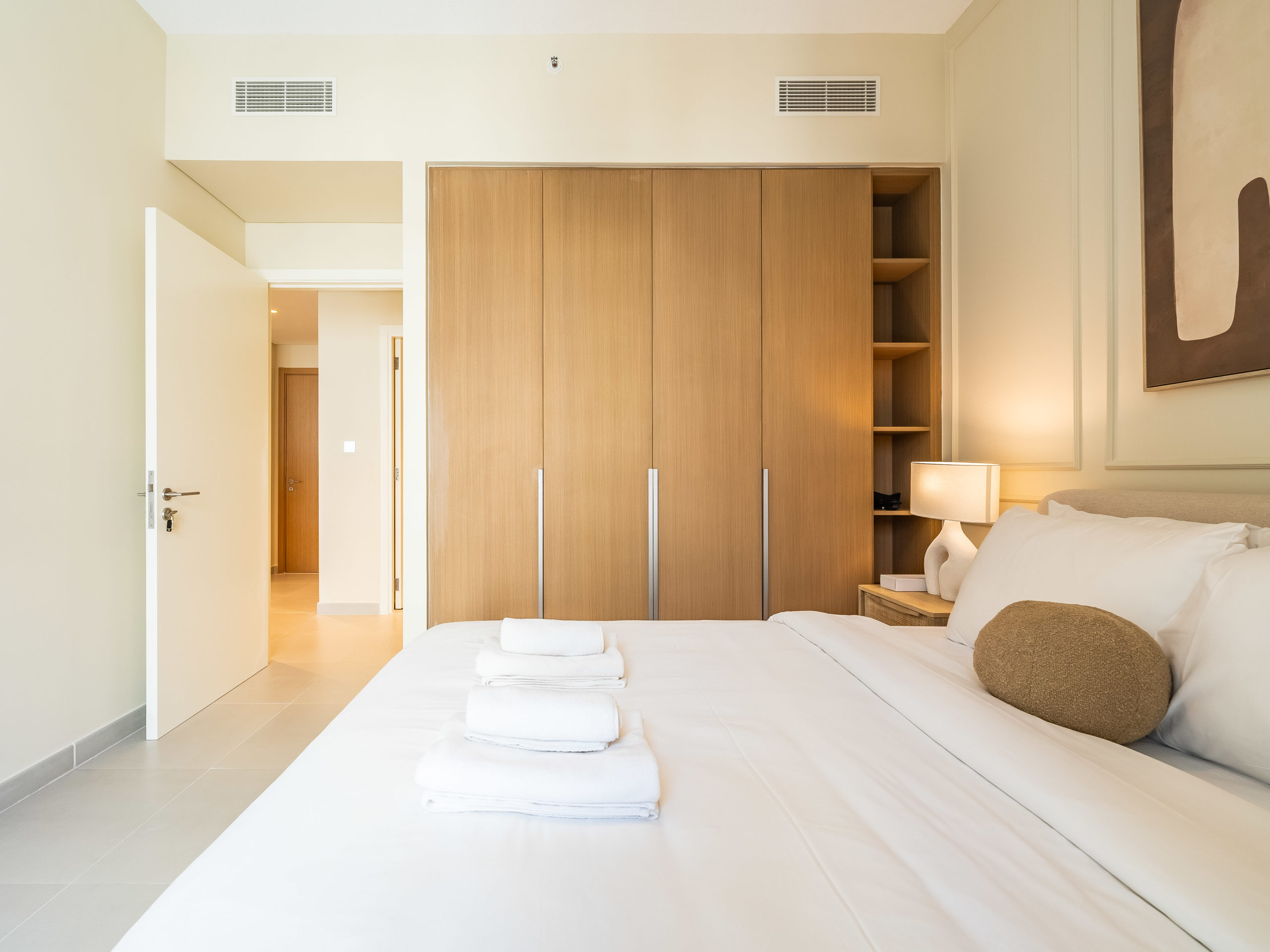 Spacious bedroom with premium bed linens