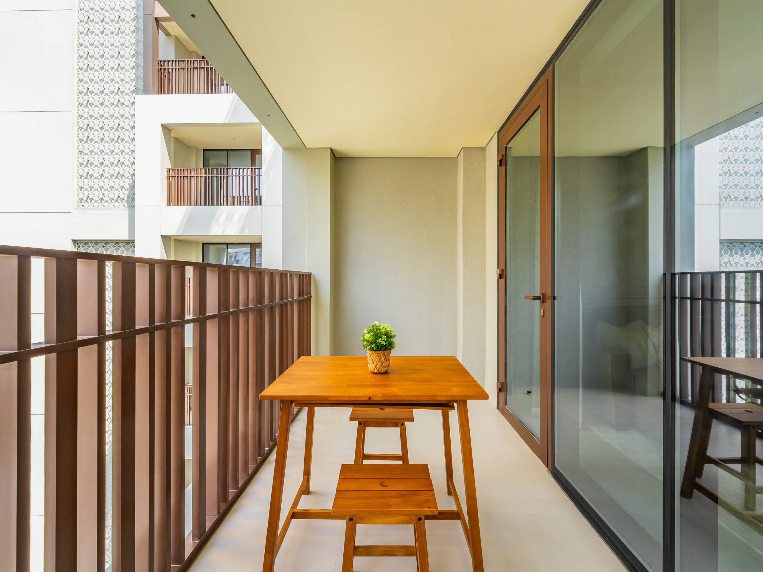 Private balcony with outdoor seating for relaxation