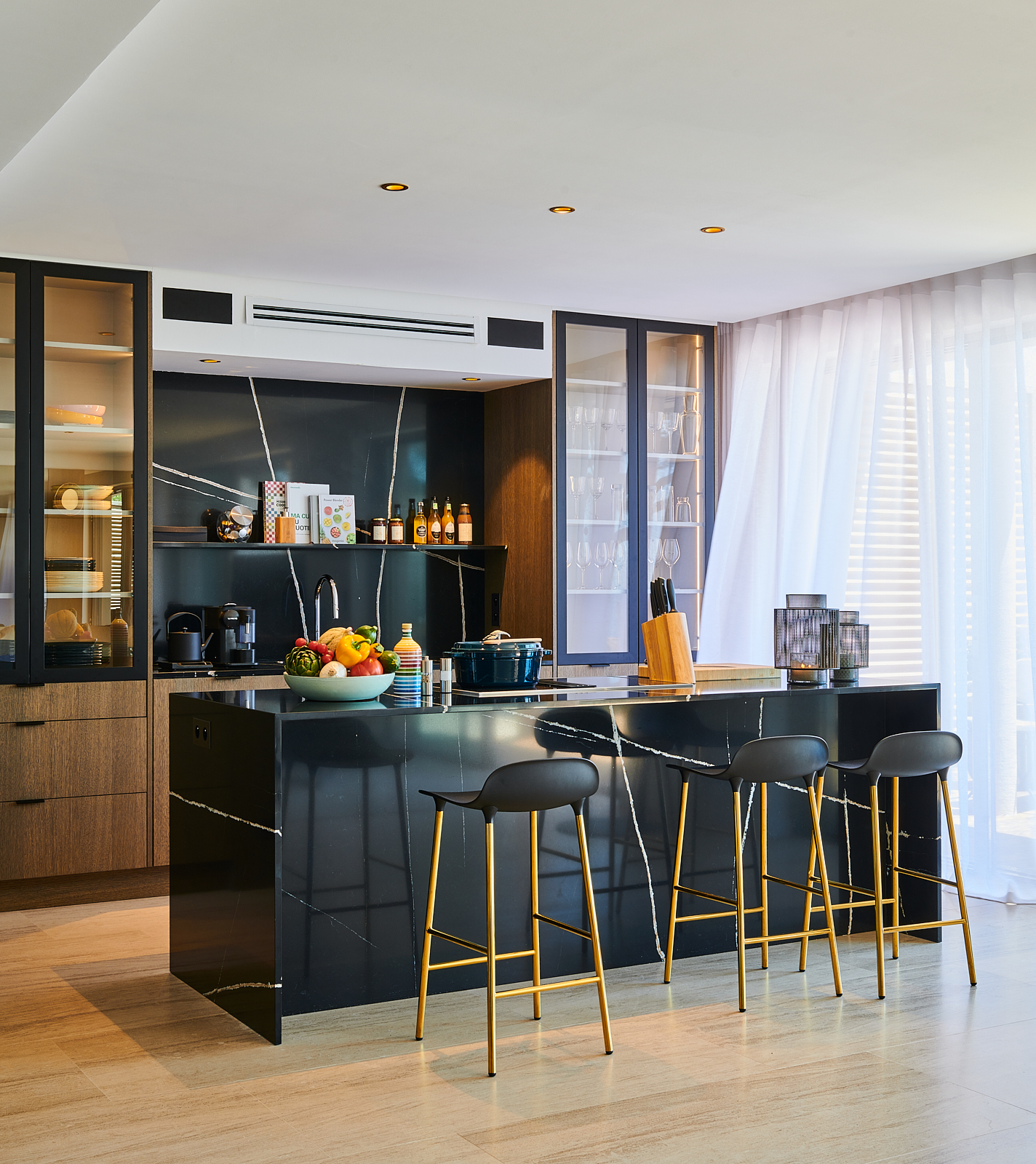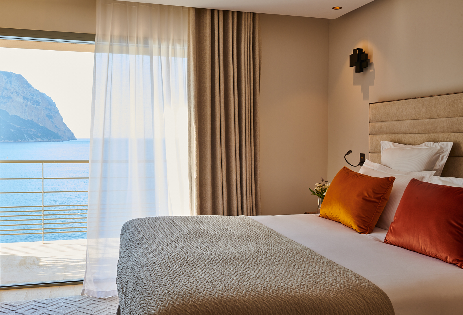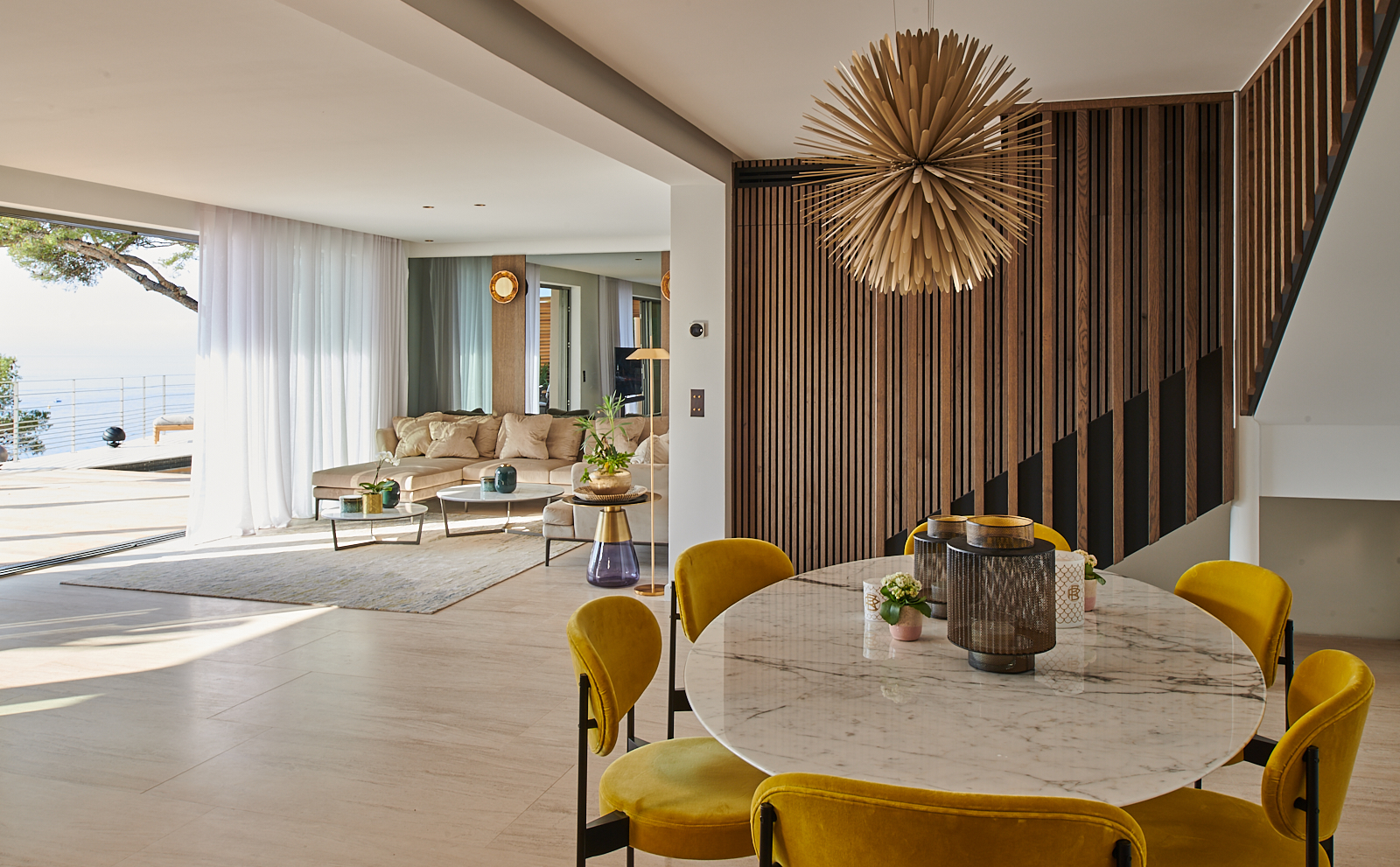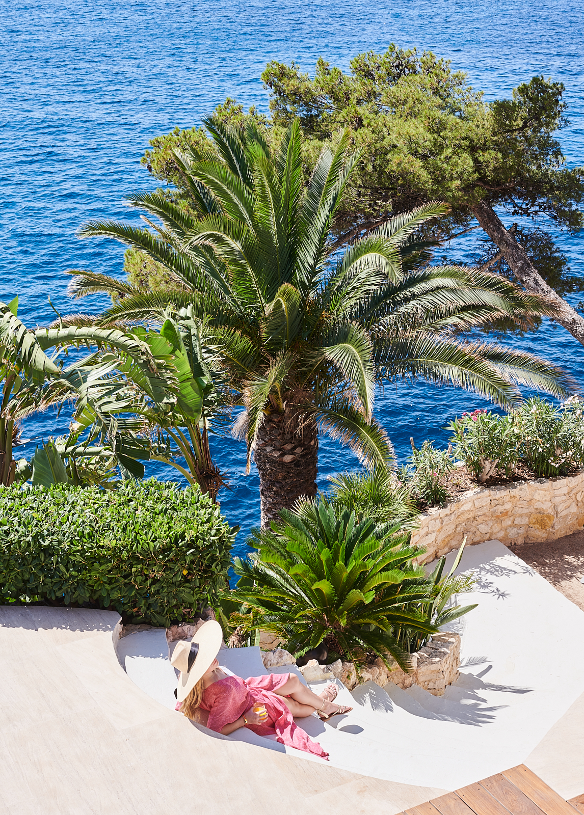 Spanning four levels, the villa’s architecture integrates seamlessly with the surrounding rock. Furthermore, the outdoor spaces invite you to relax and savor the finest art de vivre of the South of France. They celebrate Mediterranean gardens that seem to plunge into the sea. For instance, you can unwind by one of Cala Bianca’s two private heated pools. Whether you choose the pool carved from rock by the sea or the upper pool near the summer lounges, the experience is unforgettable. Inside, minimalist interiors highlight noble local materials. Additionally, four suite-style bedrooms accommodate up to eight guests, each providing a private and peaceful retreat.