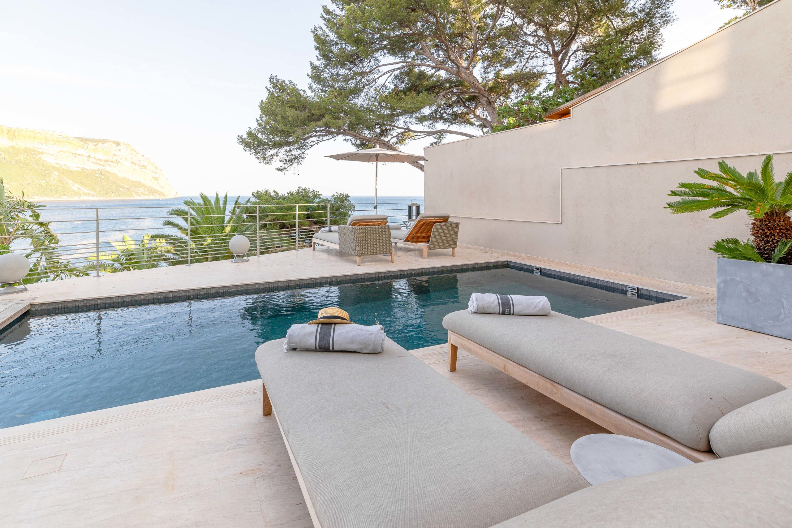 Villa Cala Bianca is just a few minutes’ walk from the port of Cassis, hidden behind Les Roches Blanches—a legendary 1920s resort now transformed into a luxury hotel. In addition, the villa provides private access to the hotel’s amenities while offering the comfort of an independent property. With Cap Canaille and the Mediterranean Sea as your backdrop, Villa Cala Bianca seamlessly blends luxury and elegance.