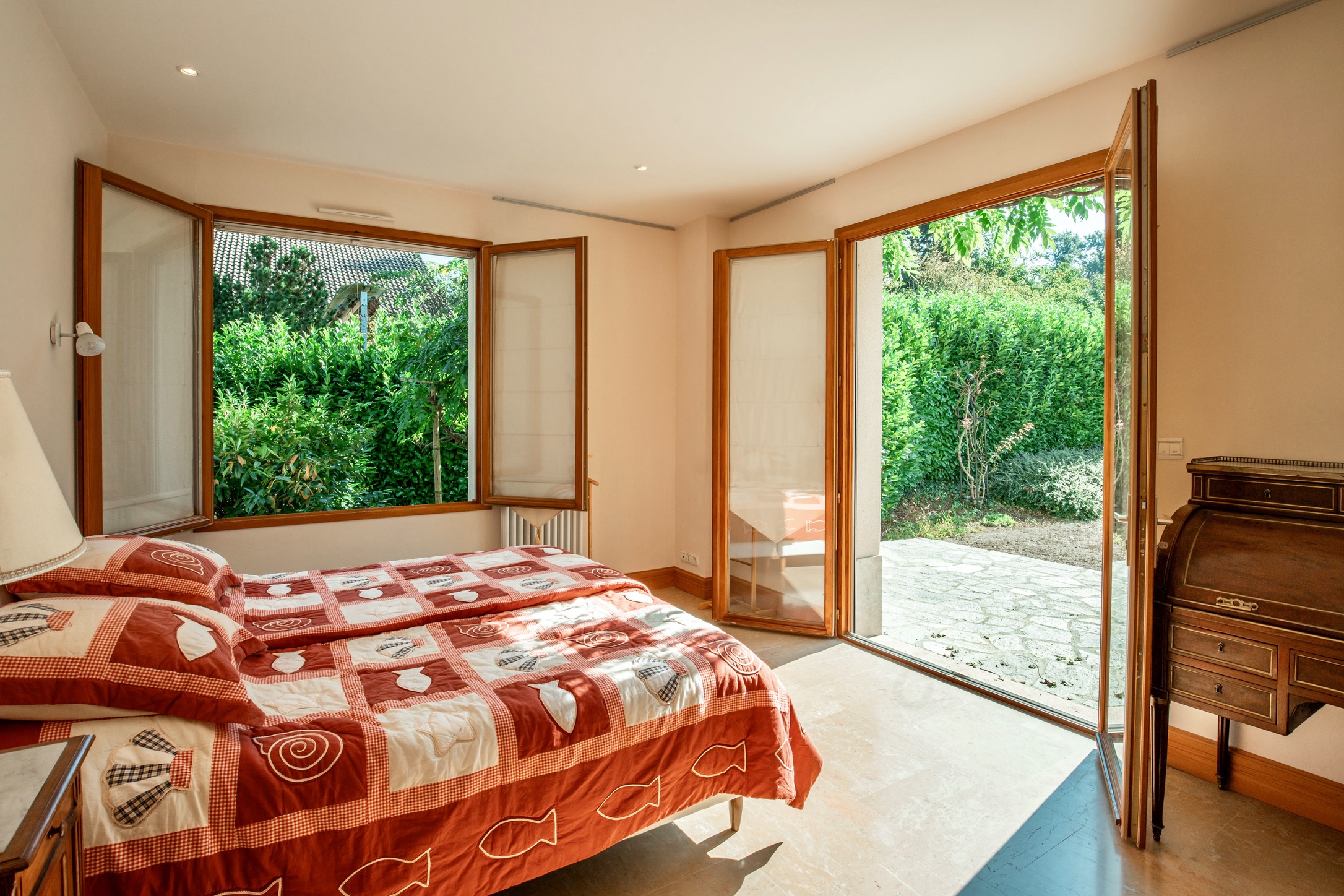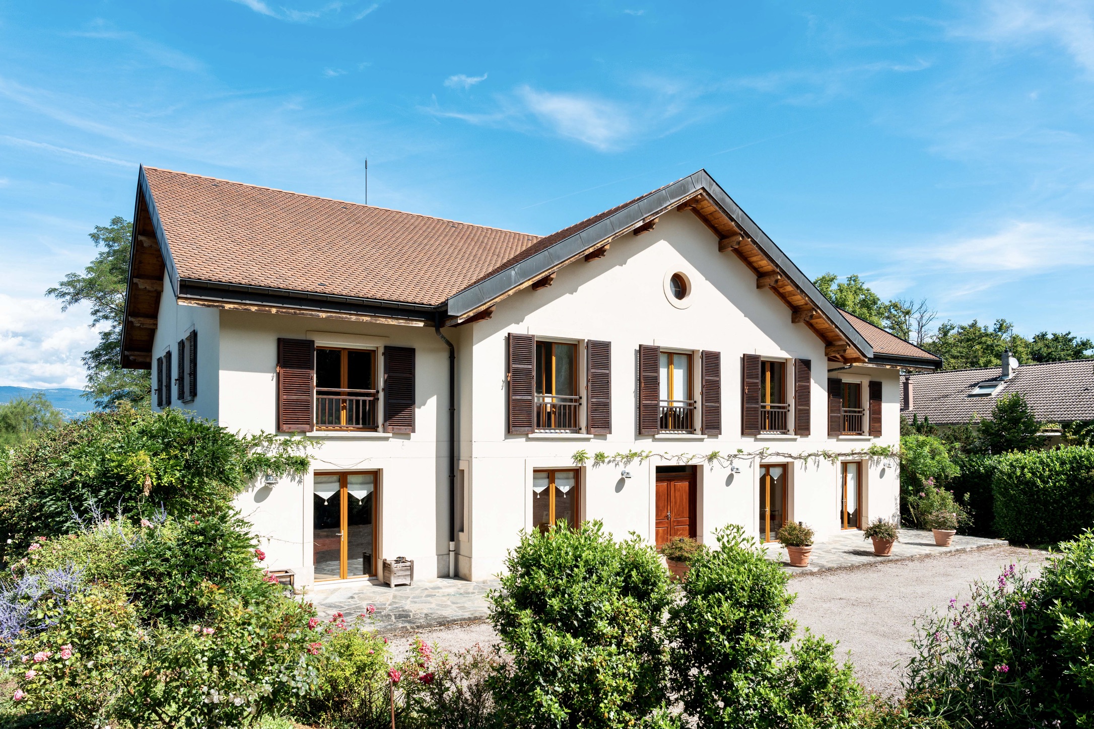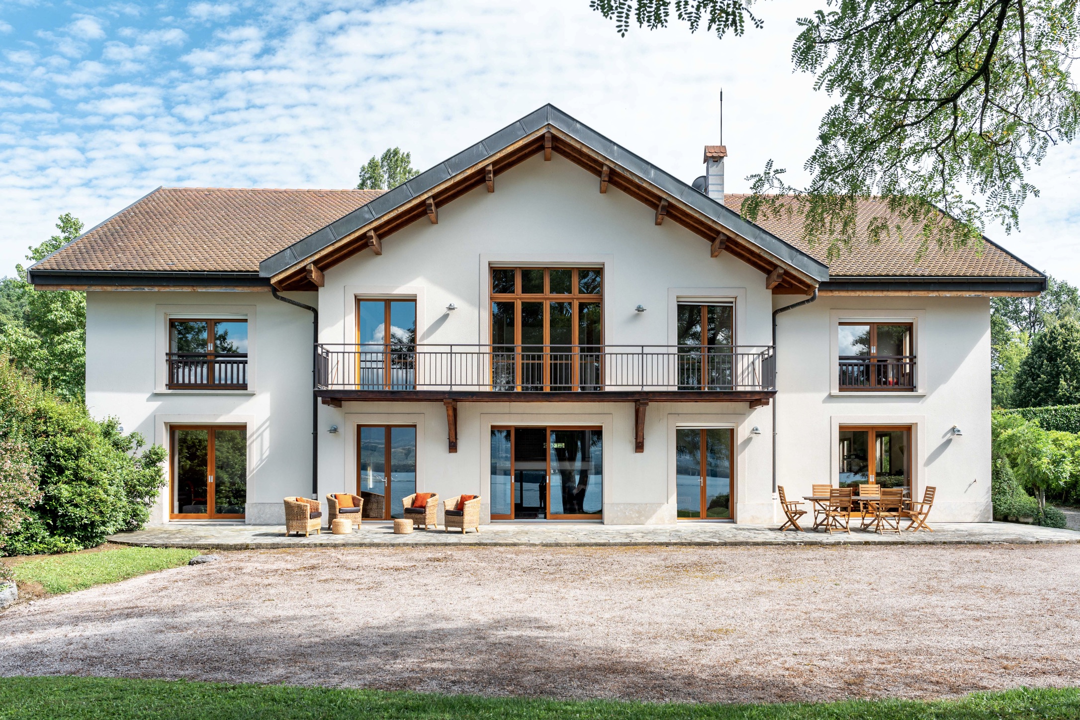 The flow between indoor and outdoor spaces is seamless, with sun-drenched terraces capturing Geneva sunsets year-round.