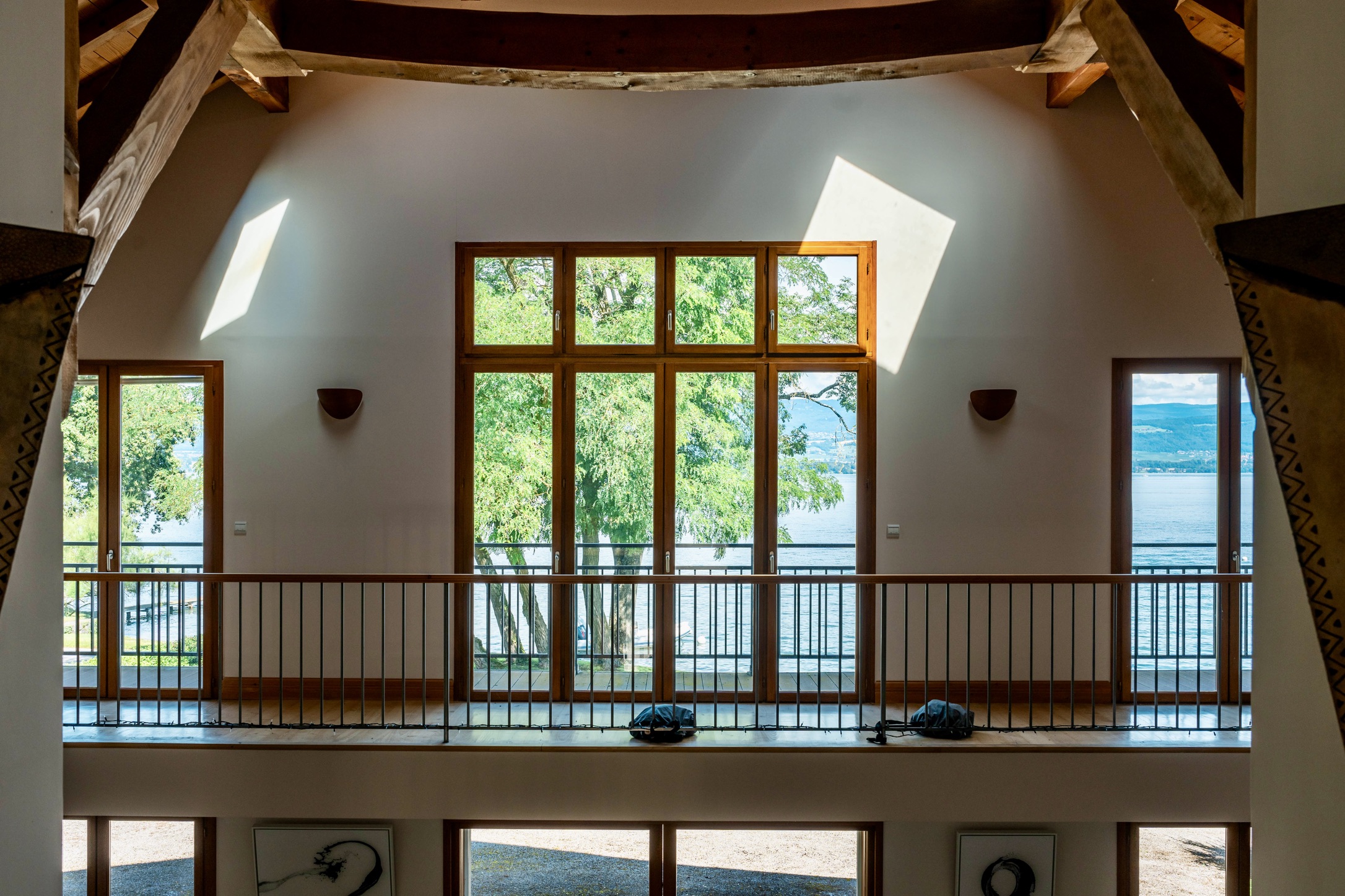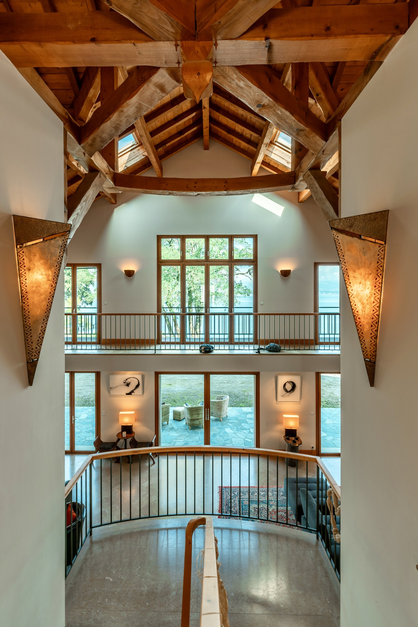 • A grand 53 m² lake-facing reception lounge with cathedral ceilings and towering windows opening onto panoramic terraces