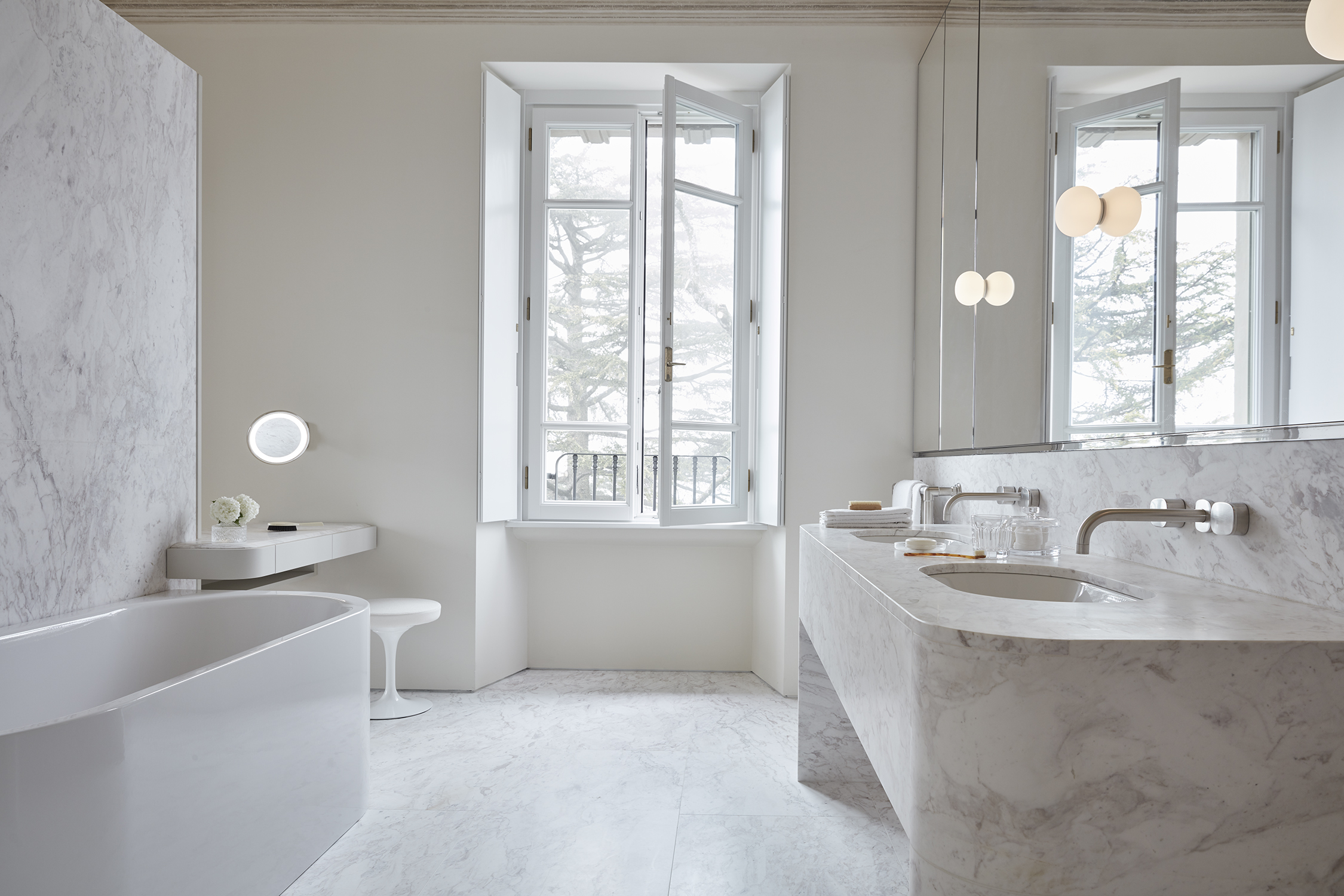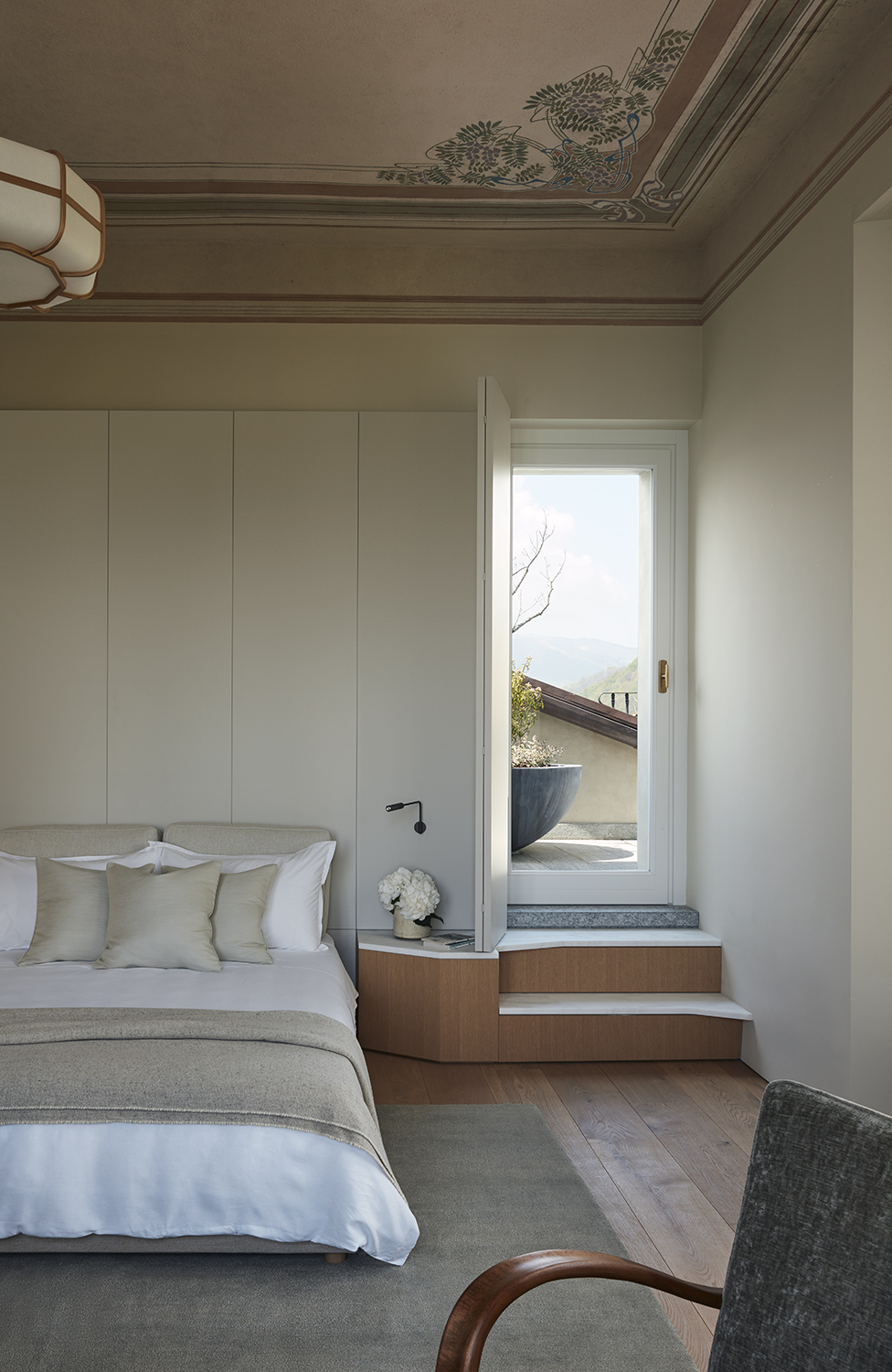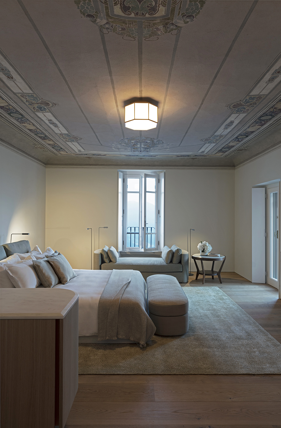 The views from south facing Villa Peduzzi are truly stunning – a combination of wide blue lake and green mountain vistas, rounded off with glorious golden sunsets. These can be enjoyed from the balconies off every bedroom, the villa’s main surround terrace and the extraordinary pool house with its green roof and infinity pool. Also making the most of this aspect are an exceptional yoga/wellness room that has been carved out of the cliff face and the roof top terraces, bar and entertainment area.