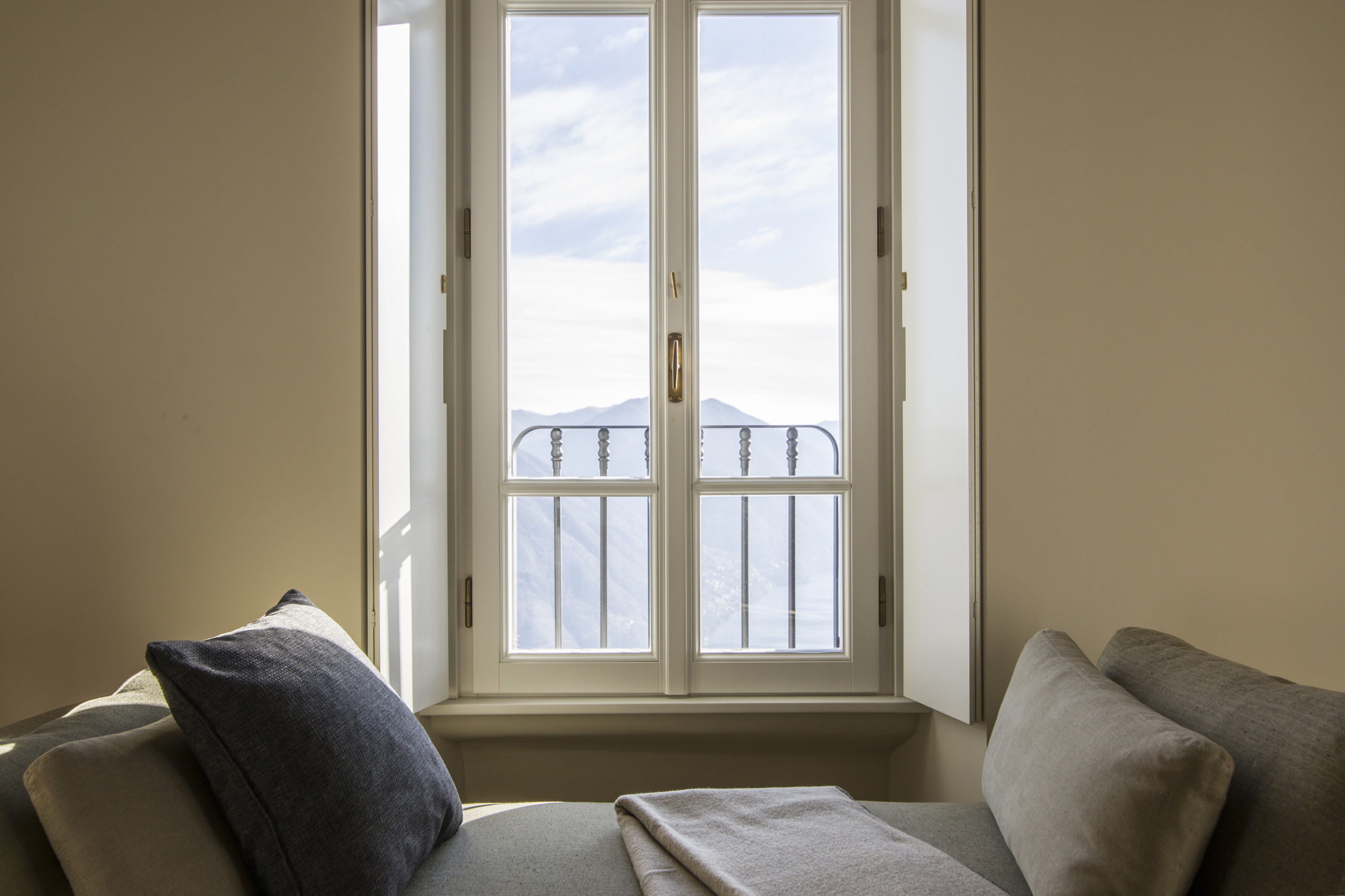 At 881 metres above the lake and with no immediate neighbours, the villa is an oasis of calm. Yet the pretty perched mountain village of Pigra is only 300 metres away and the popular lakeside village of Argegno can be reached within 4 minutes from the cable car station located 500 metres from the villa gates.