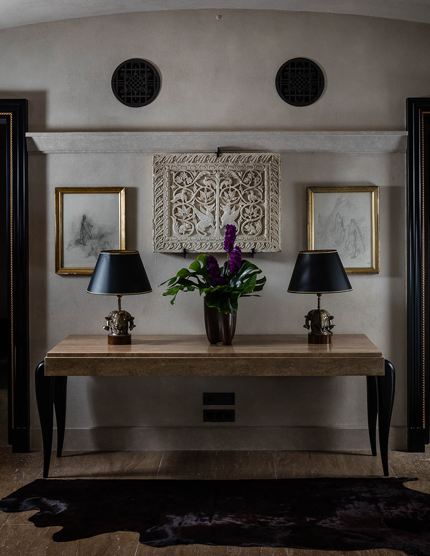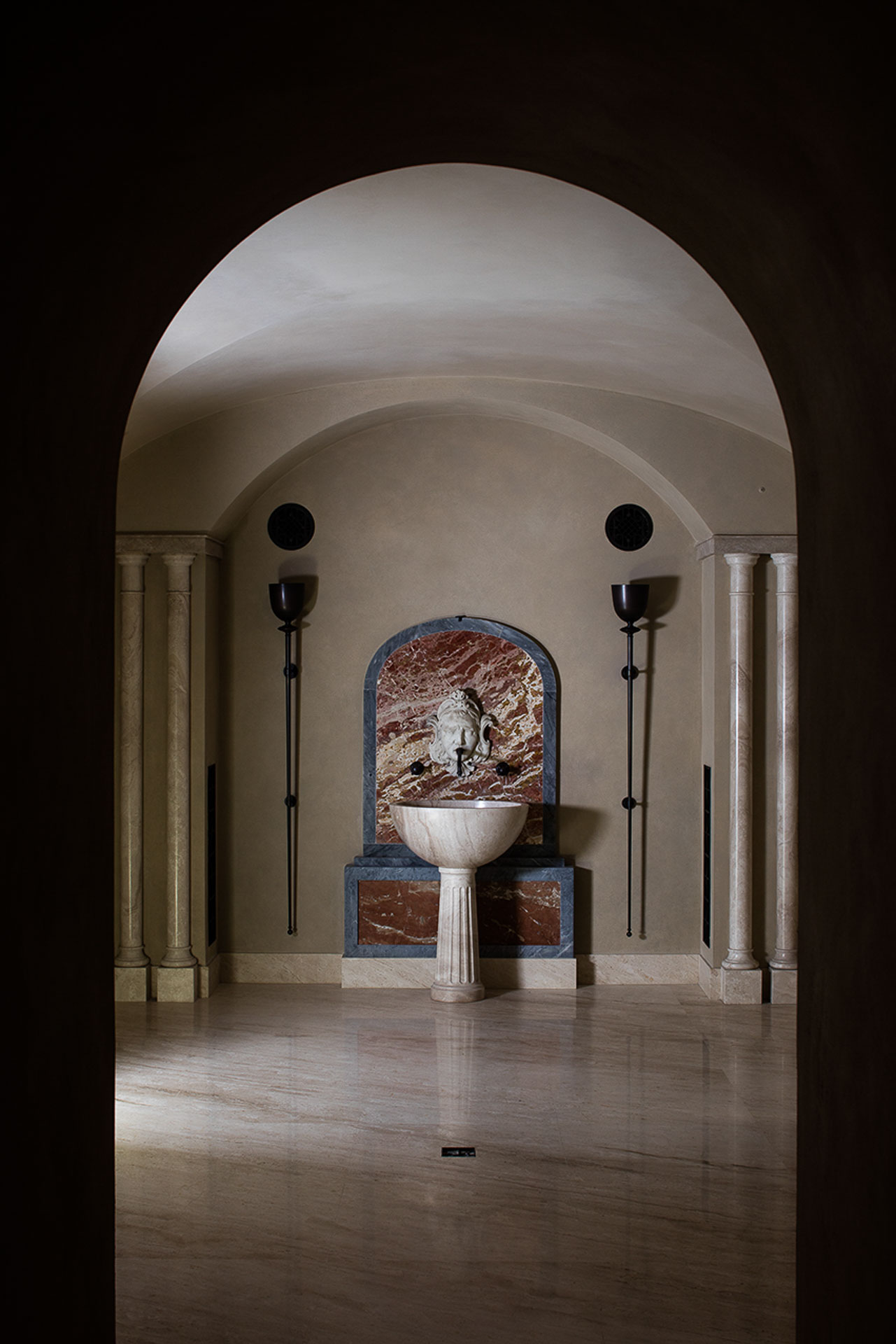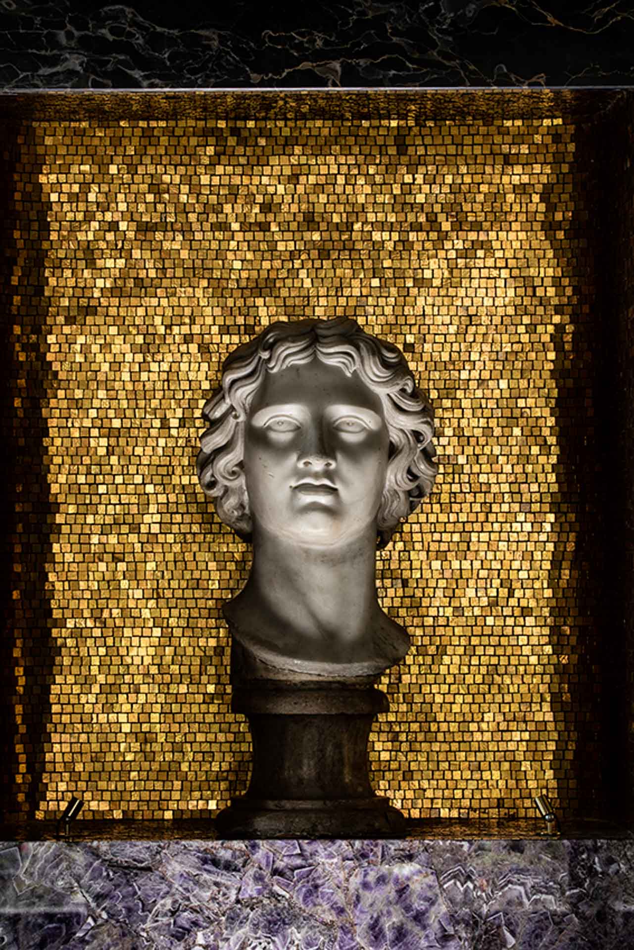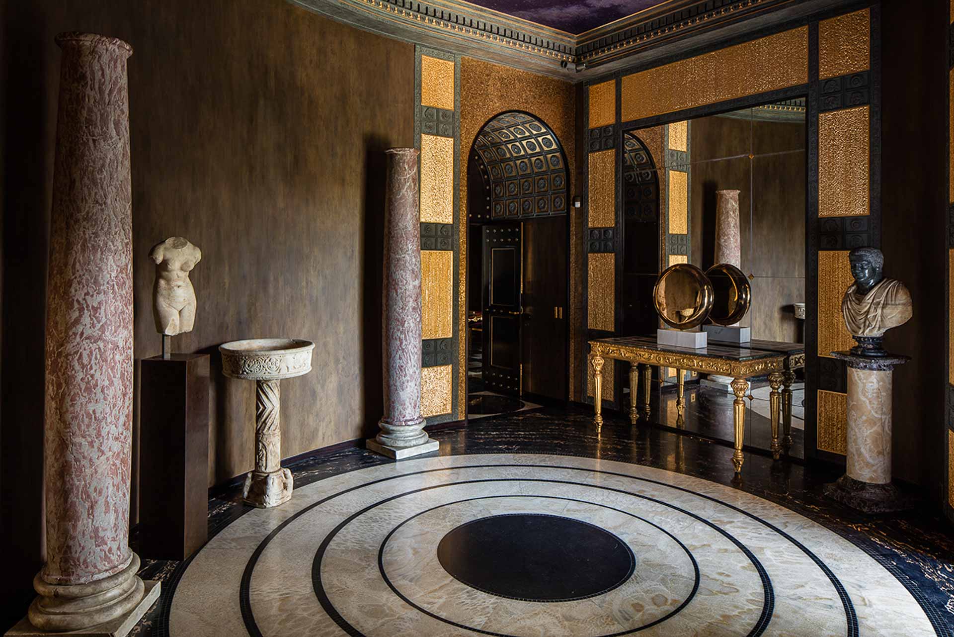 For decades, Villa Sereno served as the primary residence of a wealthy noble family. Today, the villa has been carefully restored, maintaining its historical facade and intricate interior decor. The renovation embraced an Art Deco style, transforming the interiors into a breathtaking display of extravagance. Over 1,000m² of marble and semiprecious stone surfaces, including rare amethyst wall panels from Madagascar and Ural, now grace the estate. A vast art collection further adds to the villa’s grandeur.