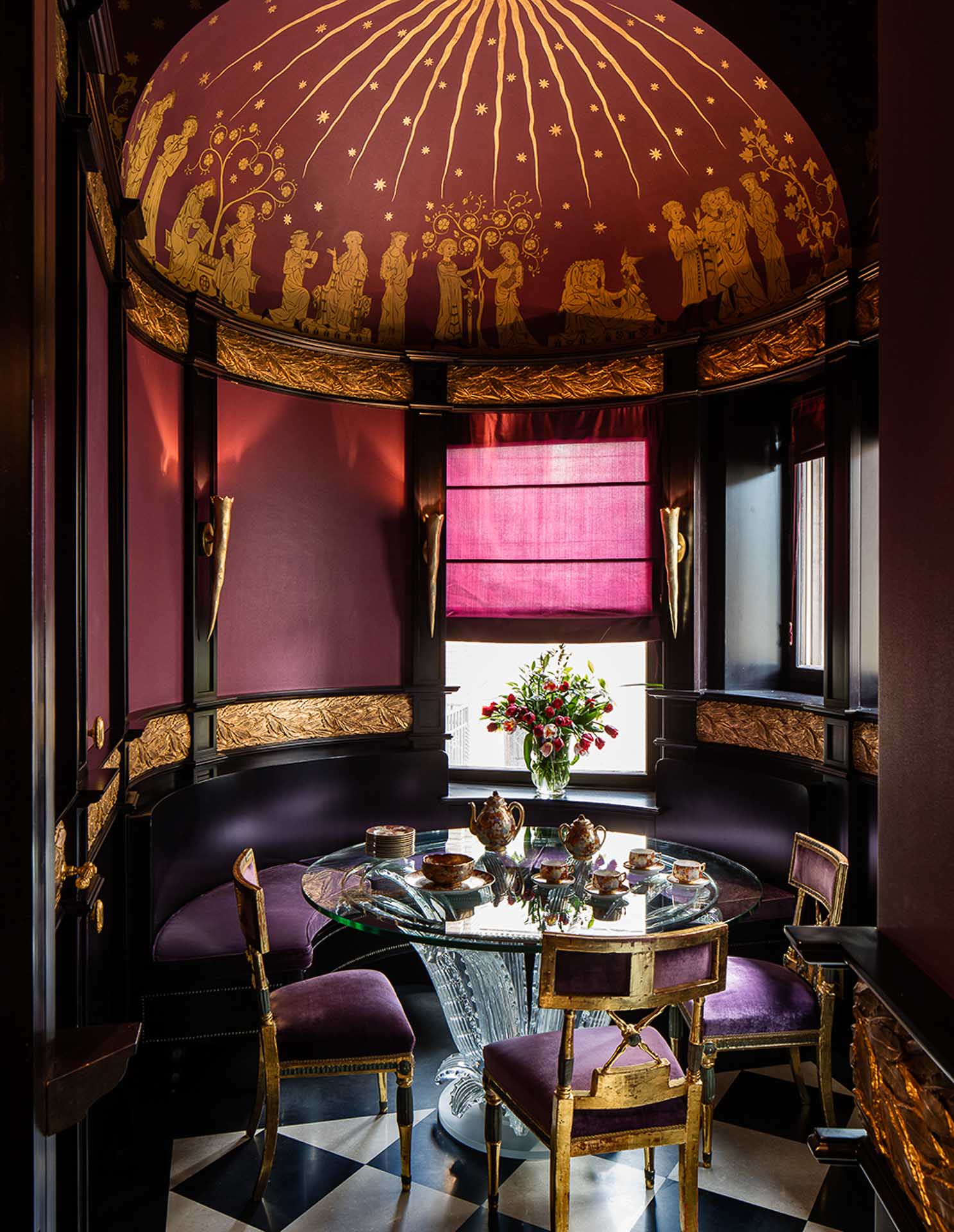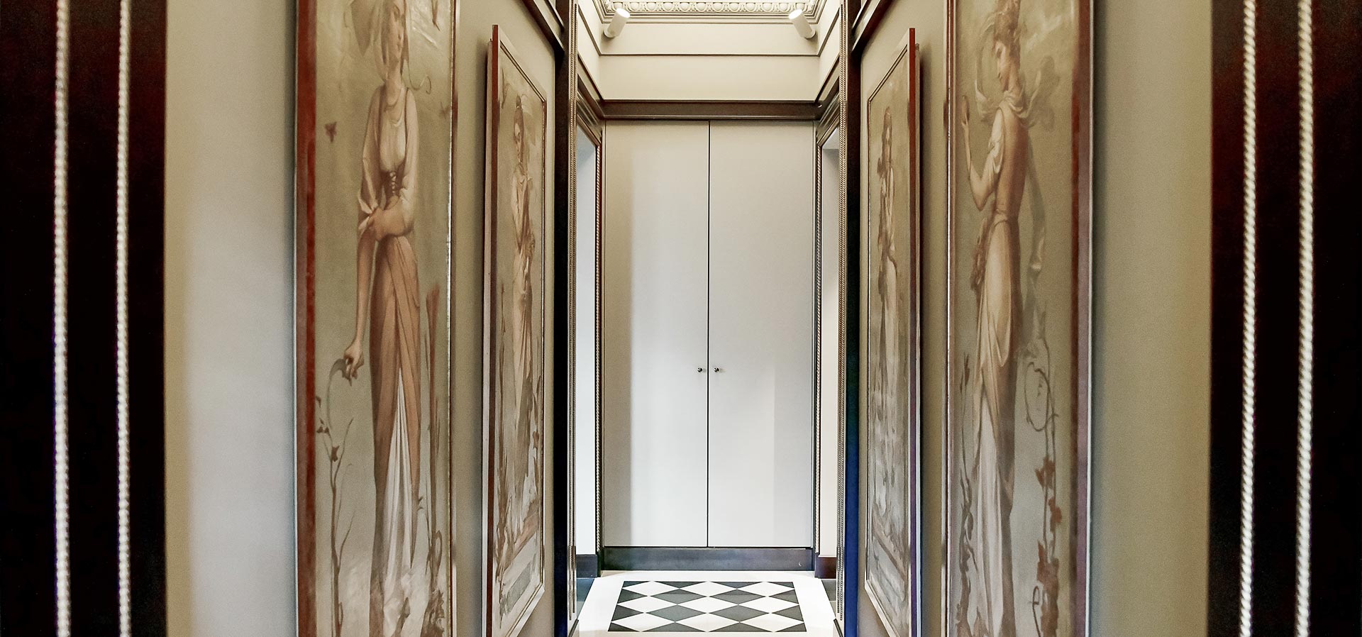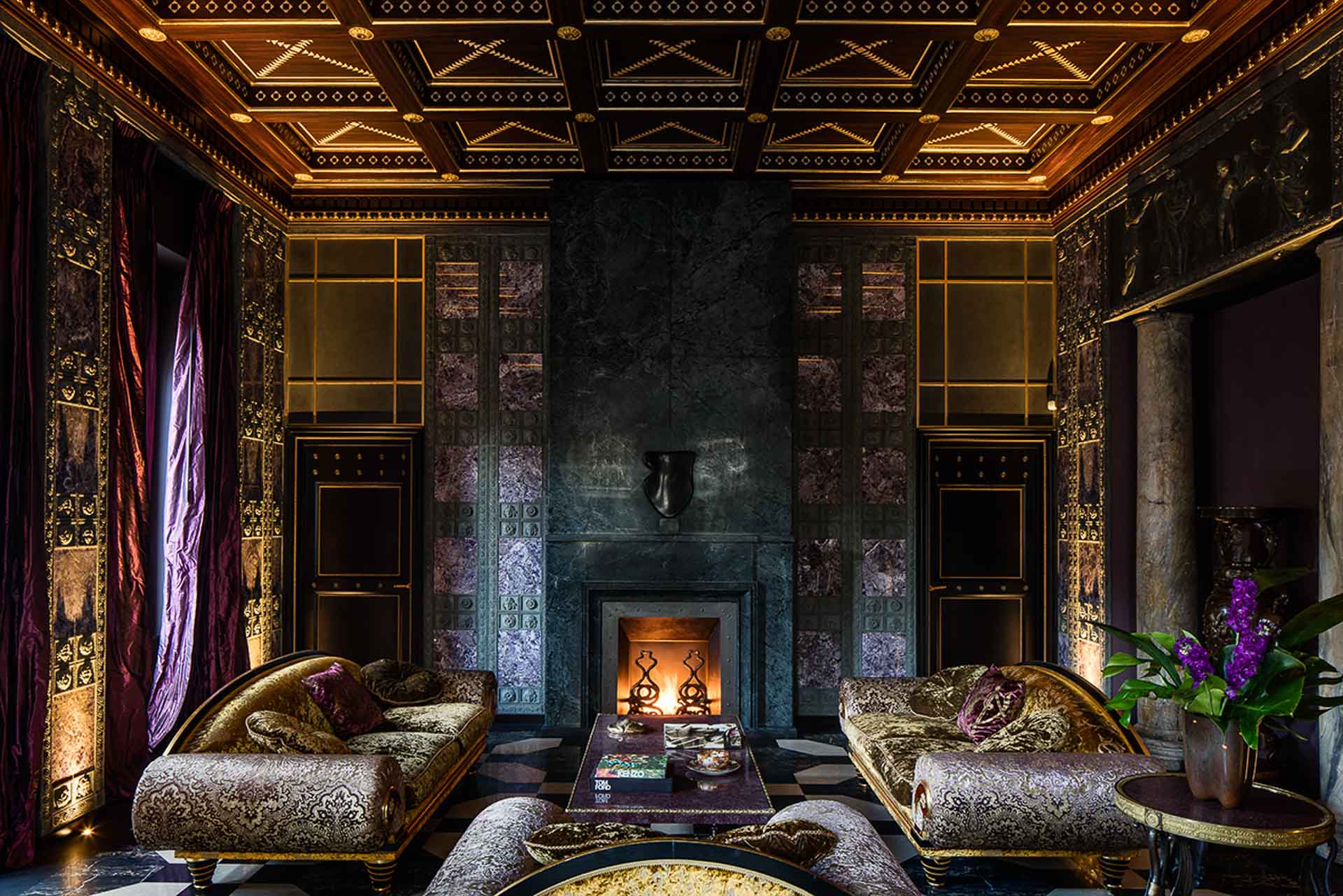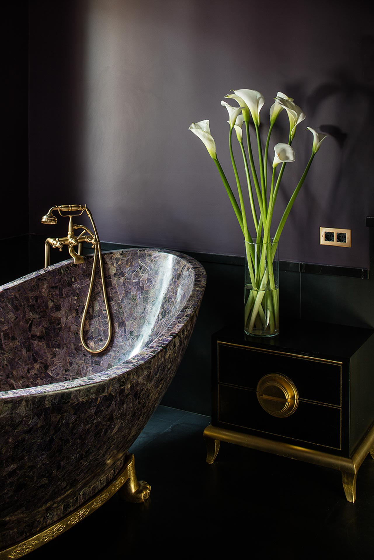 For decades, Villa Sereno served as the primary residence of a wealthy noble family. Today, the villa has been carefully restored, maintaining its historical facade and intricate interior decor. The renovation embraced an Art Deco style, transforming the interiors into a breathtaking display of extravagance. Over 1,000m² of marble and semiprecious stone surfaces, including rare amethyst wall panels from Madagascar and Ural, now grace the estate. A vast art collection further adds to the villa’s grandeur.