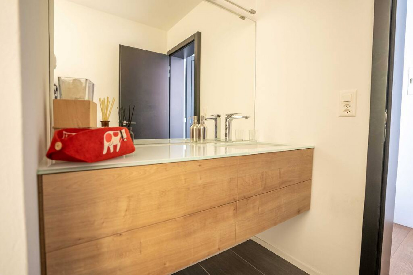 Inside, the apartment is bright and airy, thanks to ample natural light. The fully equipped kitchen simplifies meal preparation, whether you’re making a quick breakfast or a gourmet dinner. The spacious living area features plush sofas and a dining space, giving everyone ample room to unwind after a day of activities.